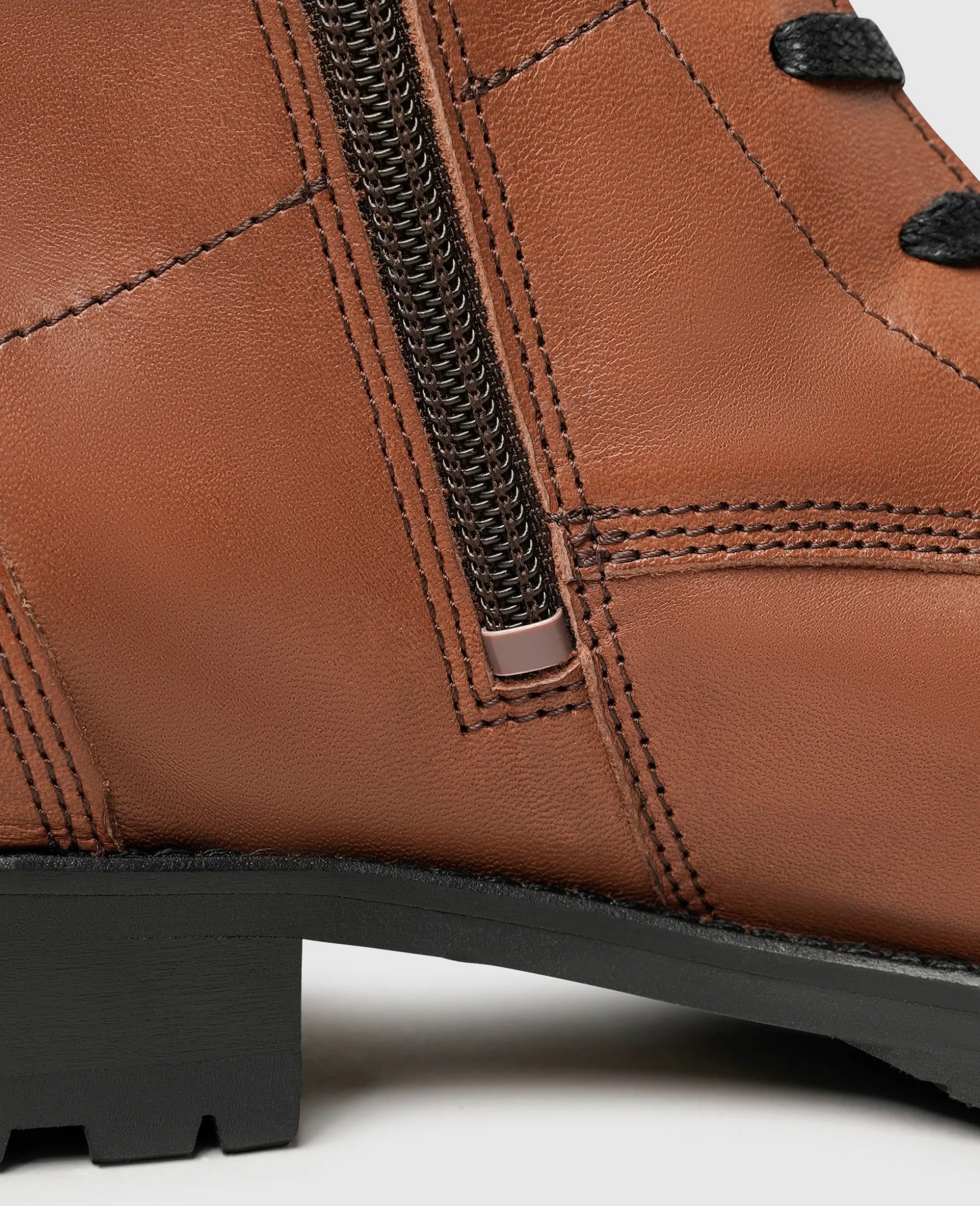 Bestens geschützt und garantiert gut gekleidet schreiten Damen durch die nasskalte Saison mit diesen Schnürstiefeln von Henry Stevens. Der mittelhohe Schaft der Damenstiefel ziert eine Schnürung mit breiten Bändern, welche allerdings nicht für jeden Ein- und Ausstieg bemüht werden müssen, da die Damenstiefel auf der Innenseite über praktische Reißverschlüsse verfügen. Das strapazierfähige Glattleder in Kombination mit der robusten Gummiprofilsohle erheben das Modell zu einem echten Allrounder für Herbst und Winter.