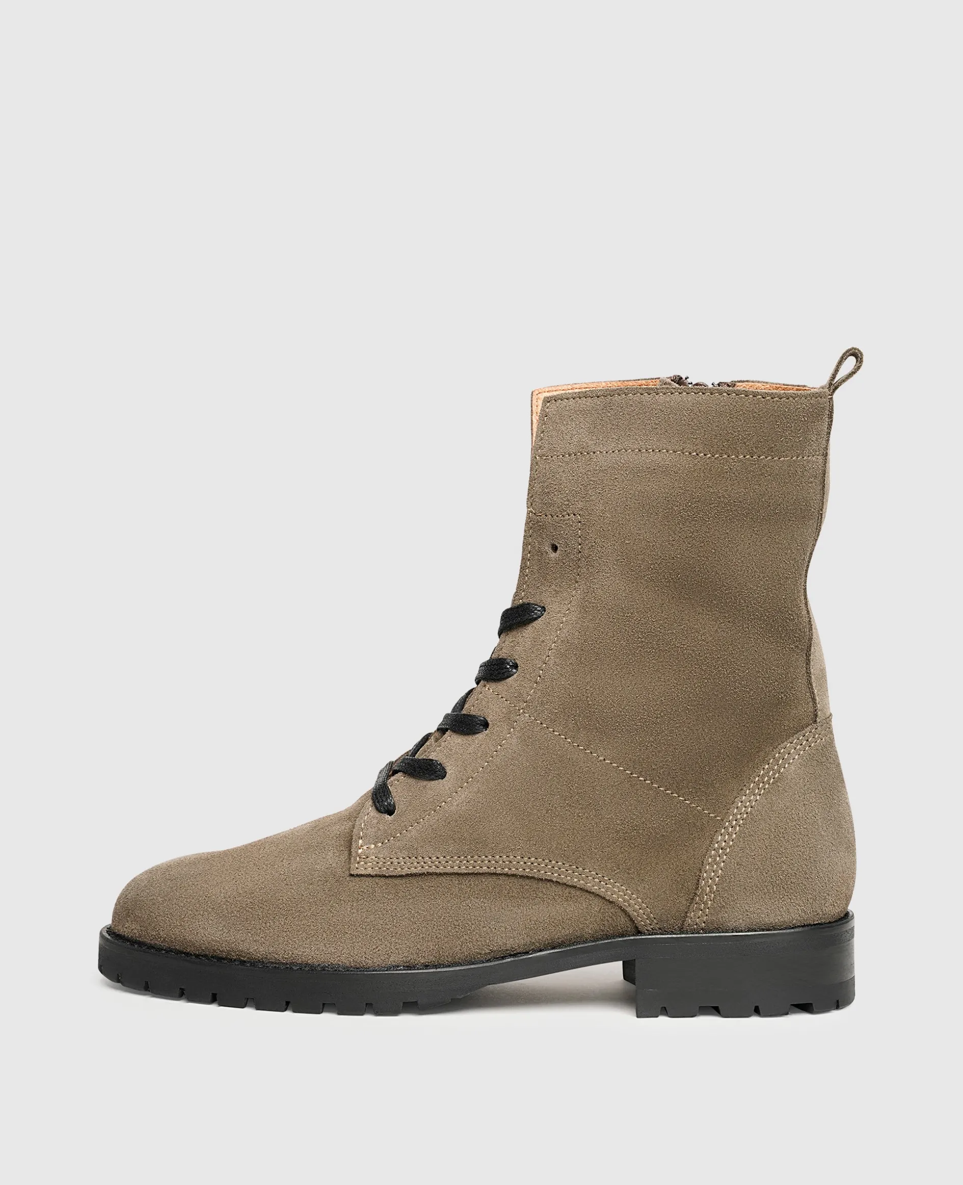 Bestens geschützt und garantiert gut gekleidet schreiten Damen durch die nasskalte Saison mit diesen Schnürstiefeln von Henry Stevens. Der mittelhohe Schaft der Damenstiefel ziert eine Schnürung mit breiten Bändern, welche allerdings nicht für jeden Ein- und Ausstieg bemüht werden müssen, da die Damenstiefel auf der Innenseite über praktische Reißverschlüsse verfügen. Die dynamische Optik des Veloursleders in Kombination mit der robusten Gummiprofilsohle runden die Erscheinung des vielseitigen Modells ab.