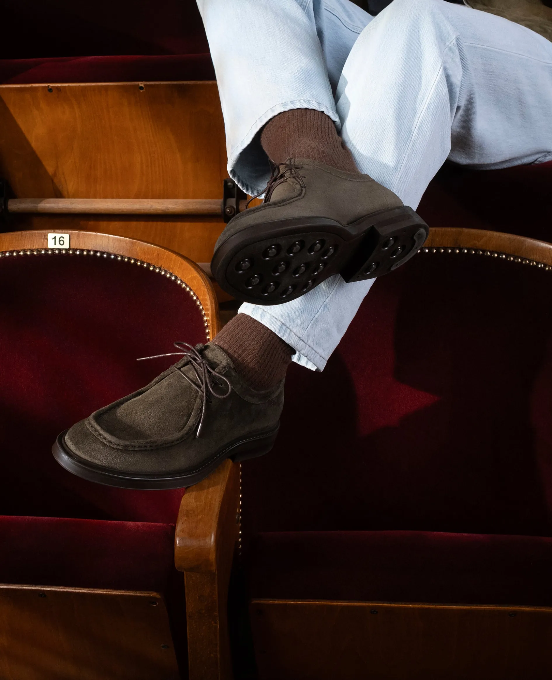 Gefertigt aus dunkelgrünem Veloursleder mit klassischer Norweger-Naht, ist der Florenz Plain V Schnürschuh auf dem Florenz-Leisten ein stabiler Begleiter für die Übergangszeit. Die griffige und flexible Gummisohle sorgt für sicheren Halt bei wechselhaften Bedingungen. Hergestellt in der Toskana.