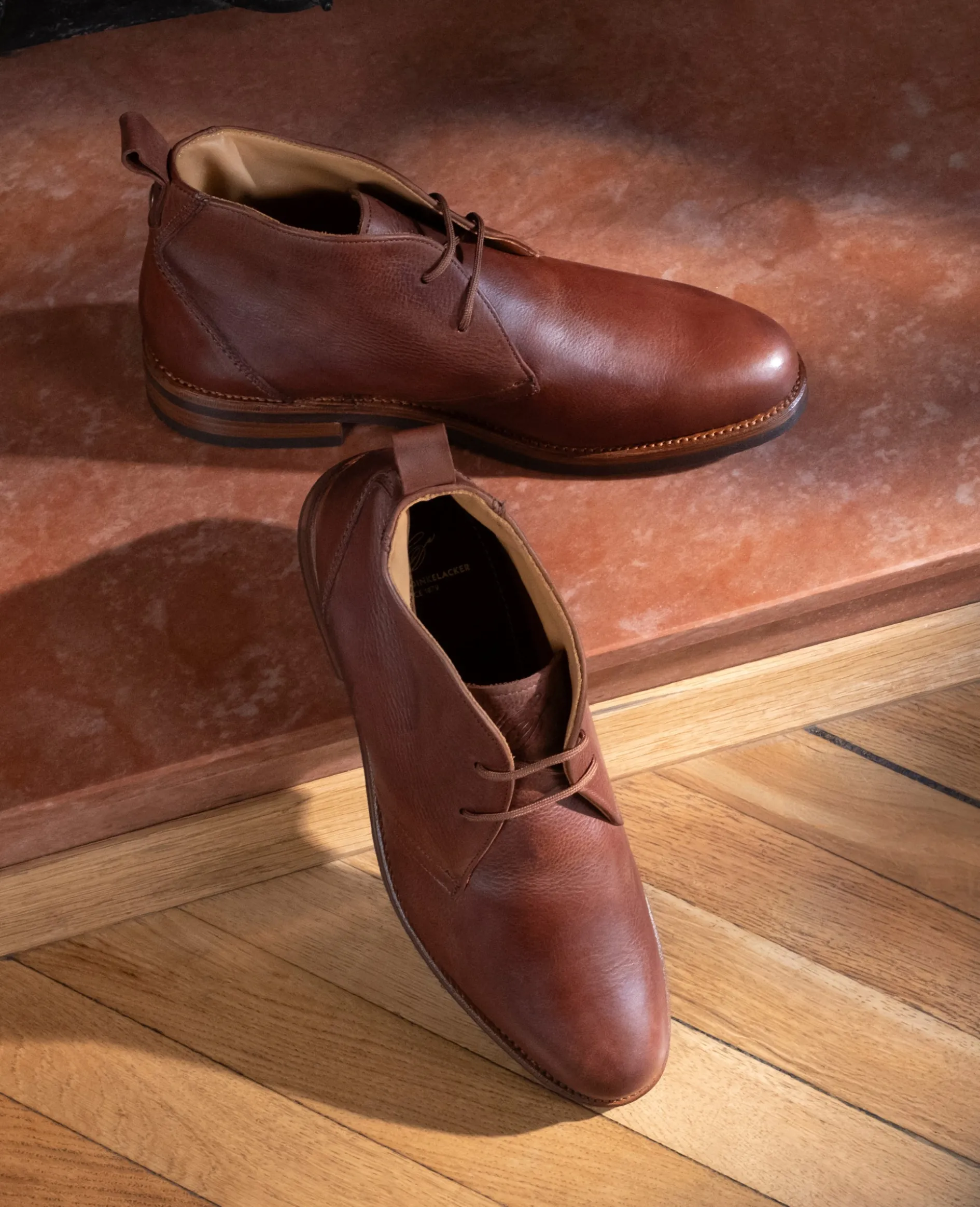 Beim George Boot handelt es sich um eine über den Knöchel reichende Herrenstiefelette, welche vom Schaftgrundschnitt dem klassischen Derby ähnelt. Er zeichnet sich durch sein glattes, einteiliges Vorderblatt aus sowie die weit zurückreichenden Seitenquartiere.