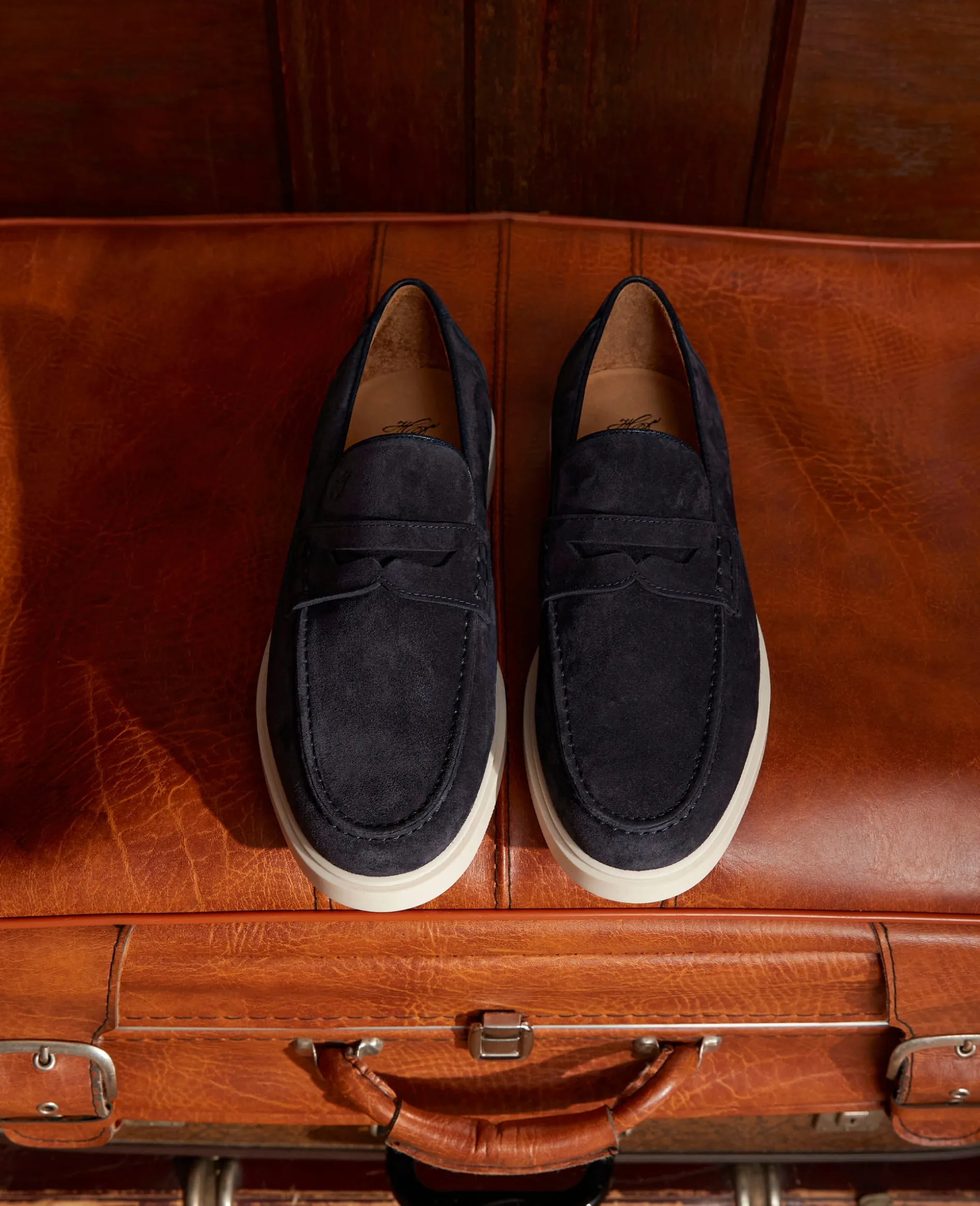 Die perfekte Fusion aus traditioneller Handwerkskunst und mediterraner Leichtigkeit. Aus weichem Kalbsvelours und auf dem eleganten Genua-Leisten gefertigt, verleiht der Genua Penny Loafer V jedem Schritt eine subtile Raffinesse. Die Gummisohle bietet Flexibilität und Halt und das feine Lederfutter eine luxuriöse Passform. Ein ikonischer Schuh für den modernen Gentleman.