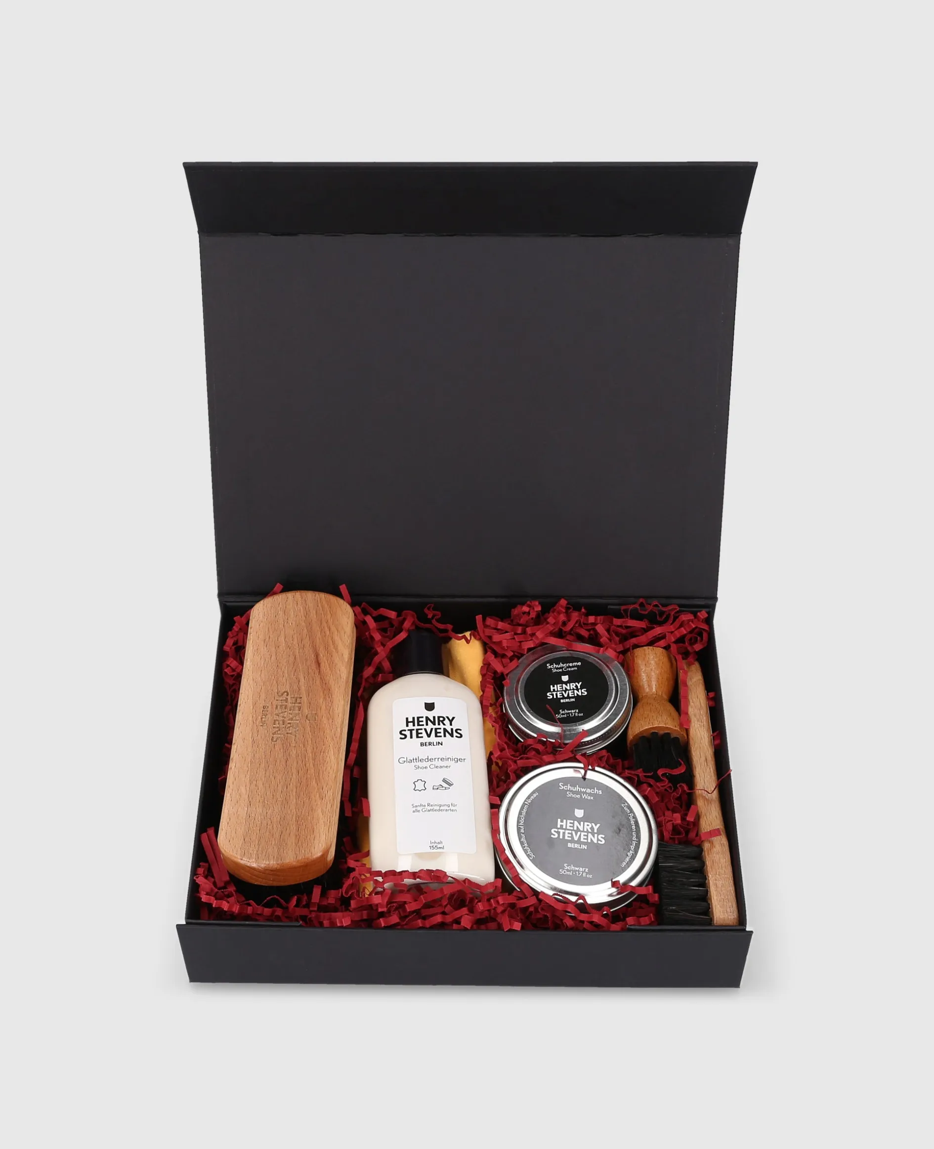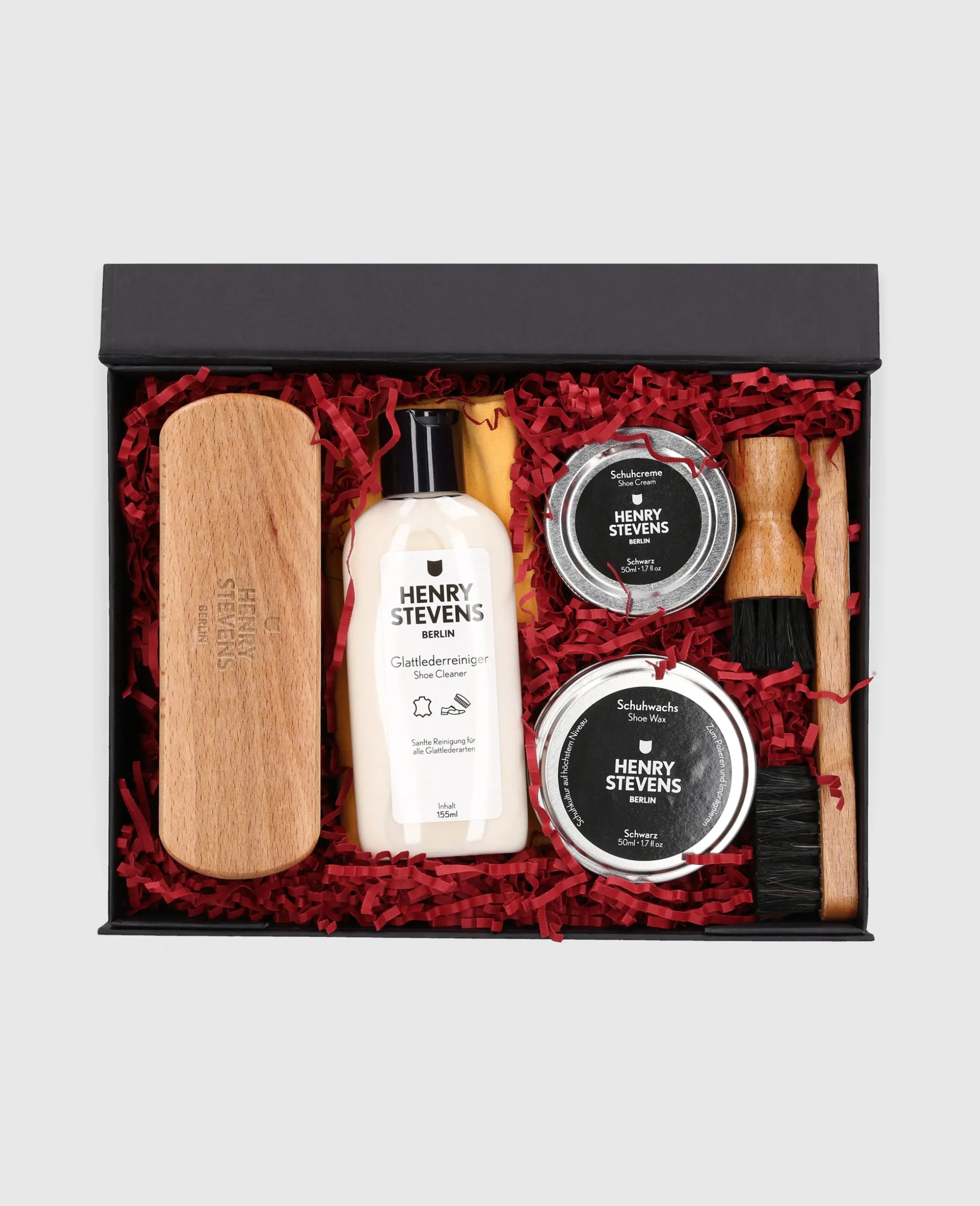 Verleihen Sie Ihren Schuhen Festtagsglanz mit dem exklusiven Schuhpflegeset von Henry Stevens. In klassischem Schwarz gehalten, vereint es Pflege der Spitzenqualität und stilvolle Eleganz – ein unverzichtbares Accessoire für anspruchsvolle Schuhliebhaber. Von hochwertigen Bürsten bis zu Creme und Wachs – ideal für makellos gepflegte Schuhe. Professionelle Pflege verpackt mit weihnachtlichem Charme sorgt für alle Ihre Ansprüche an die Schuhpflege.