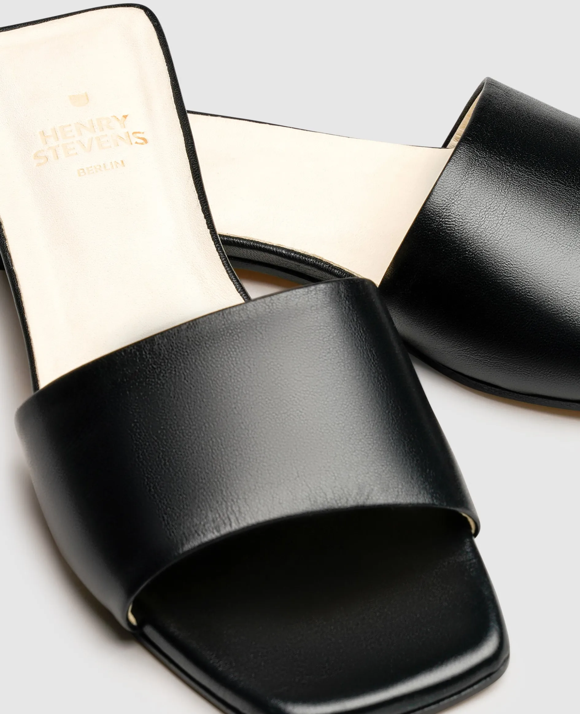 In ein wahrlich puristisches Design hüllt sich die flache Damen-Sandale mit einer angesagten Karree-Form. Ein dezenter, gerader Riemen aus Kalbsleder erhebt die Pantolette zu einem dezenten Allrounder für Ihre Sommer-Looks. Ein ausgesprochen komfortables Geherlebnis ist Ihnen dank der dezenten Absatzhöhe von lediglich 1 Zentimeter garantiert, während die klassische Ledersohle die anmutige Erscheinung der Sandalen abrundet.