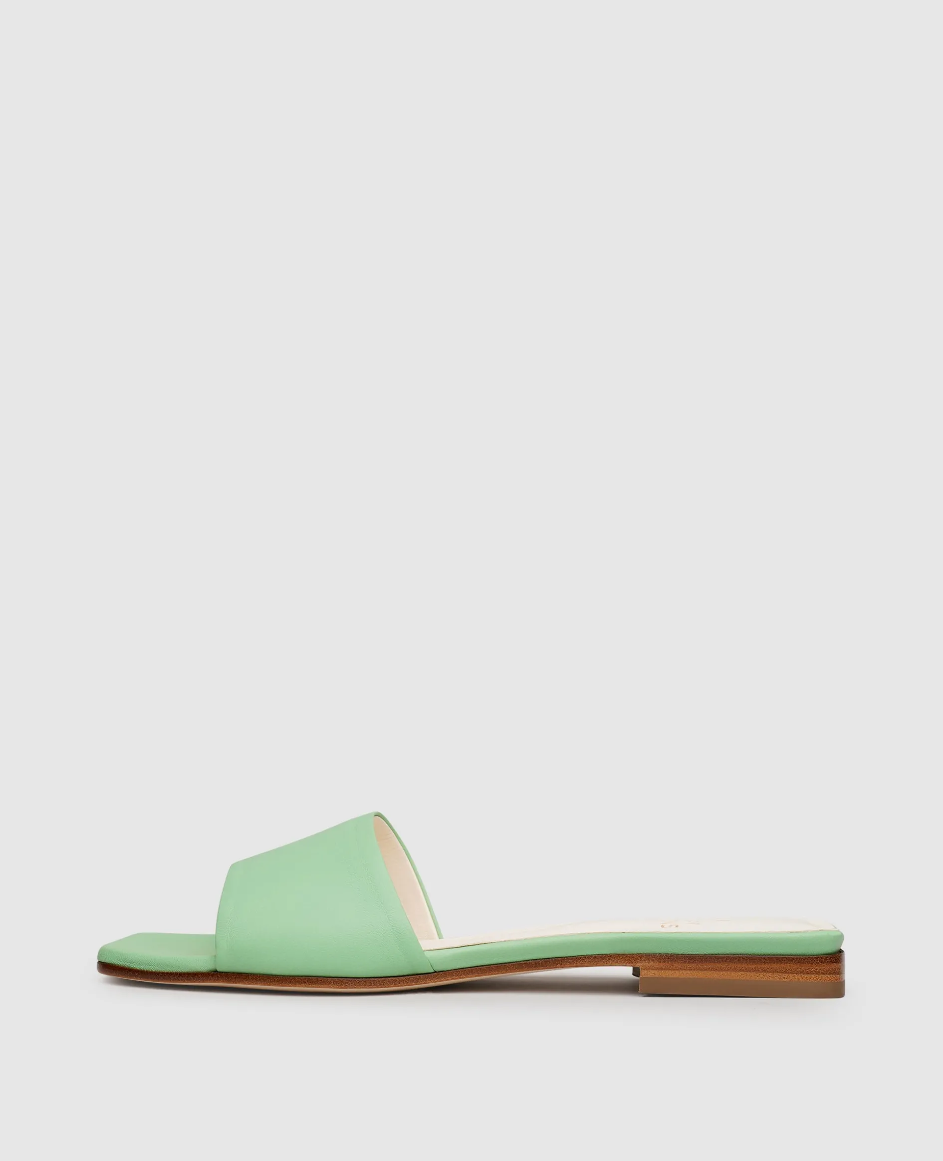 In ein wahrlich puristisches Design hüllt sich die flache Damen-Sandale mit einer angesagten Karree-Form. Ein dezenter, gerader Riemen aus Kalbsleder erhebt die Pantolette zu einem dezenten Allrounder für Ihre Sommer-Looks. Ein ausgesprochen komfortables Geherlebnis ist Ihnen dank der dezenten Absatzhöhe von lediglich 1 Zentimeter garantiert, während die klassische Ledersohle die anmutige Erscheinung der Sandalen abrundet.