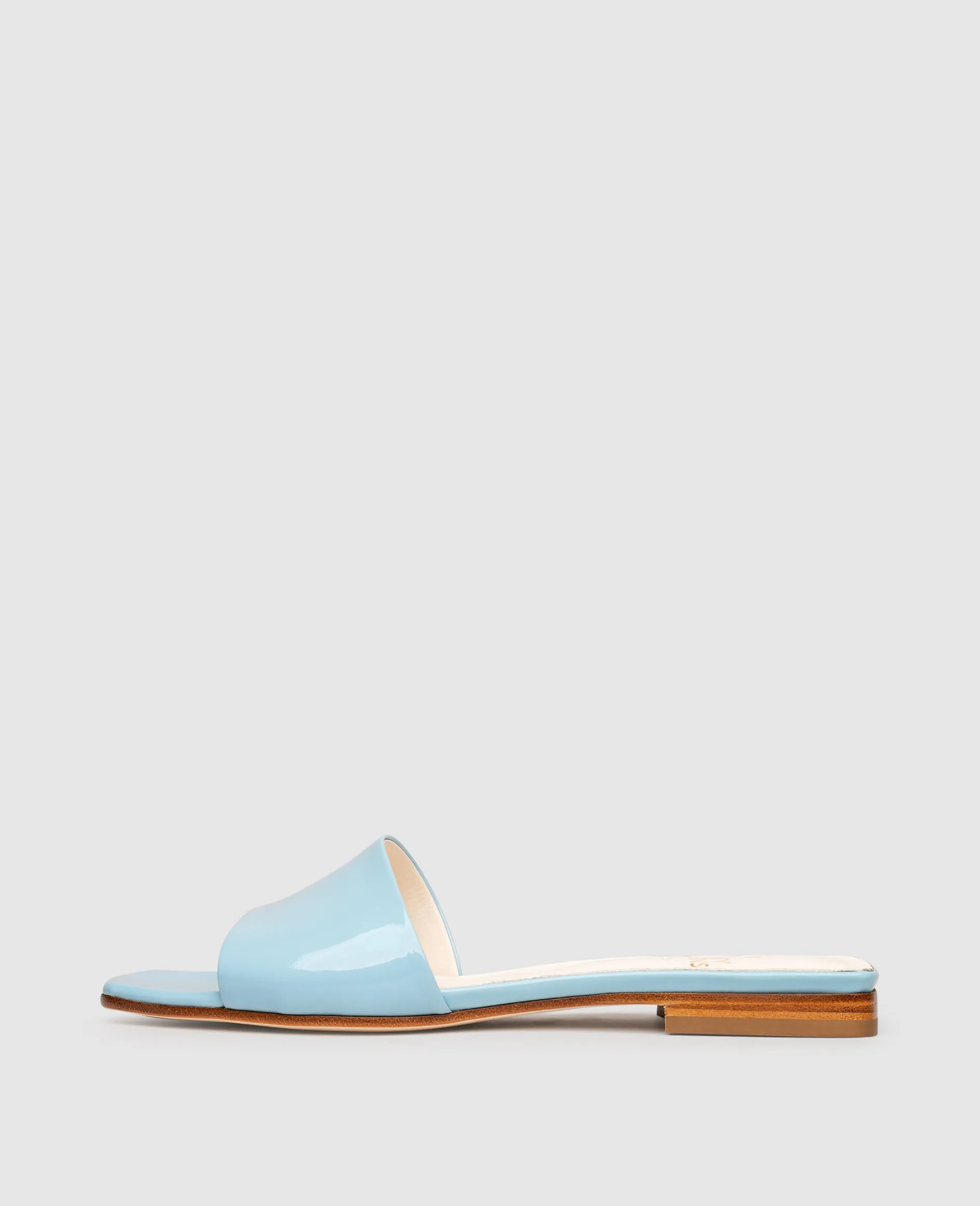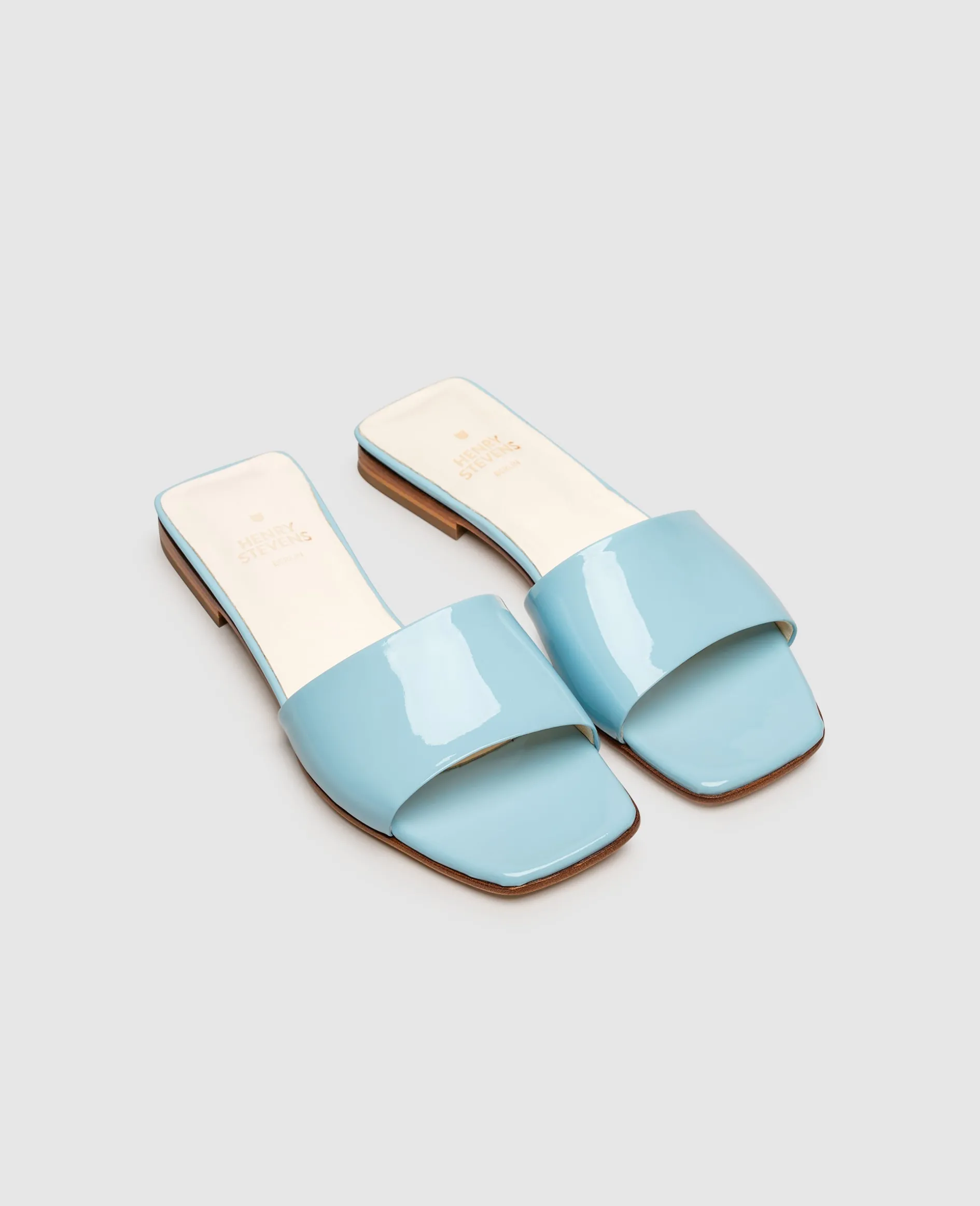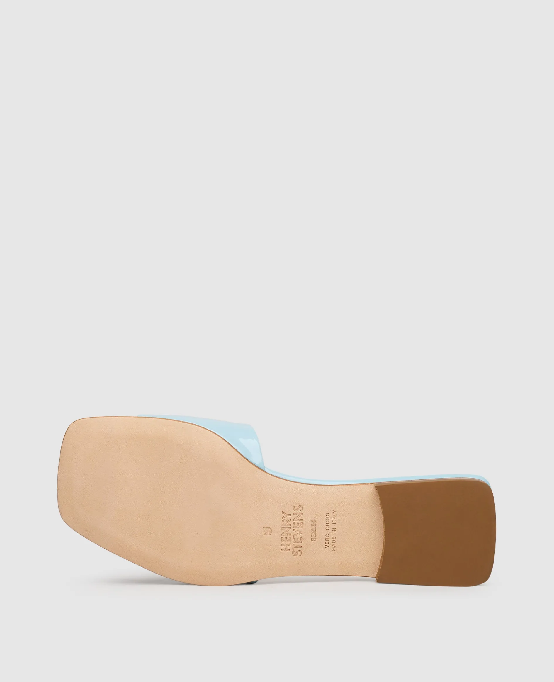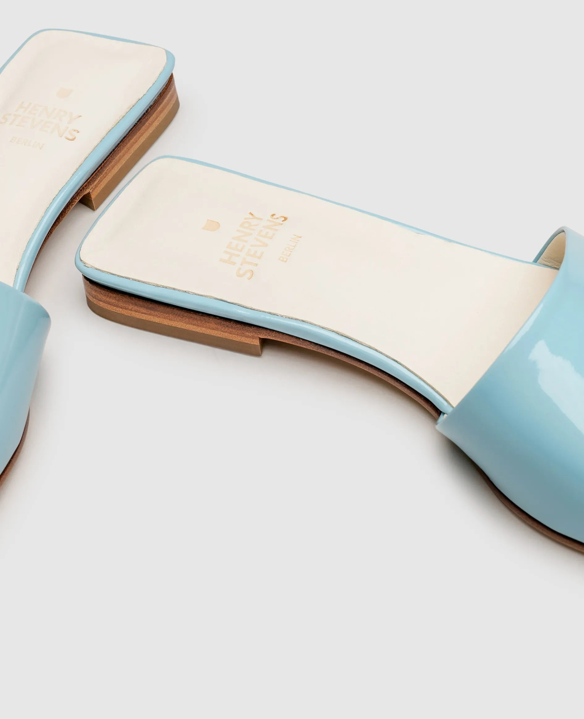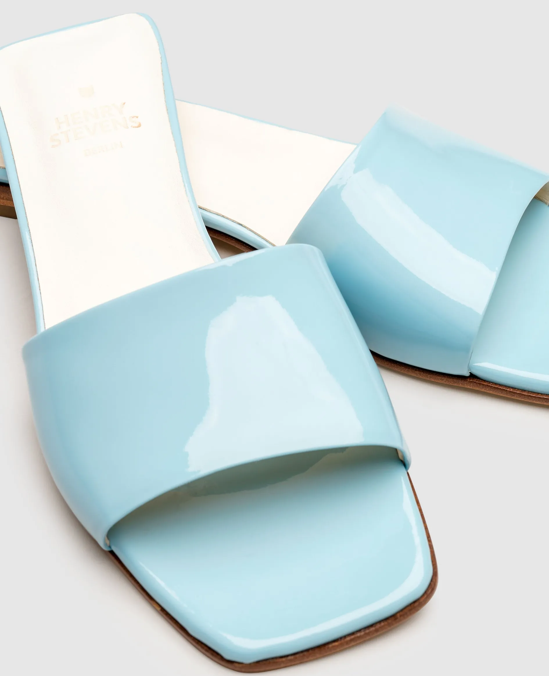 Absolut angesagt schreiten Sie in diesen Sandalen im Karree-Schnitt durch die warmen Sommertage. Als besonders sommerlicher Hingucker dient dem Modell der Riemen aus glänzendem Lackleder, welcher zudem auch einen farblichen Akzent setzt. Die eckige Zehenpartie in Kombination mit einem Blockabsatz in Höhe von 1 Zentimeter versprüht zudem einen Hauch Avantgarde. Zu zusätzlicher Eleganz verhilft den Pantoletten eine klassische Laufsohle aus Leder.