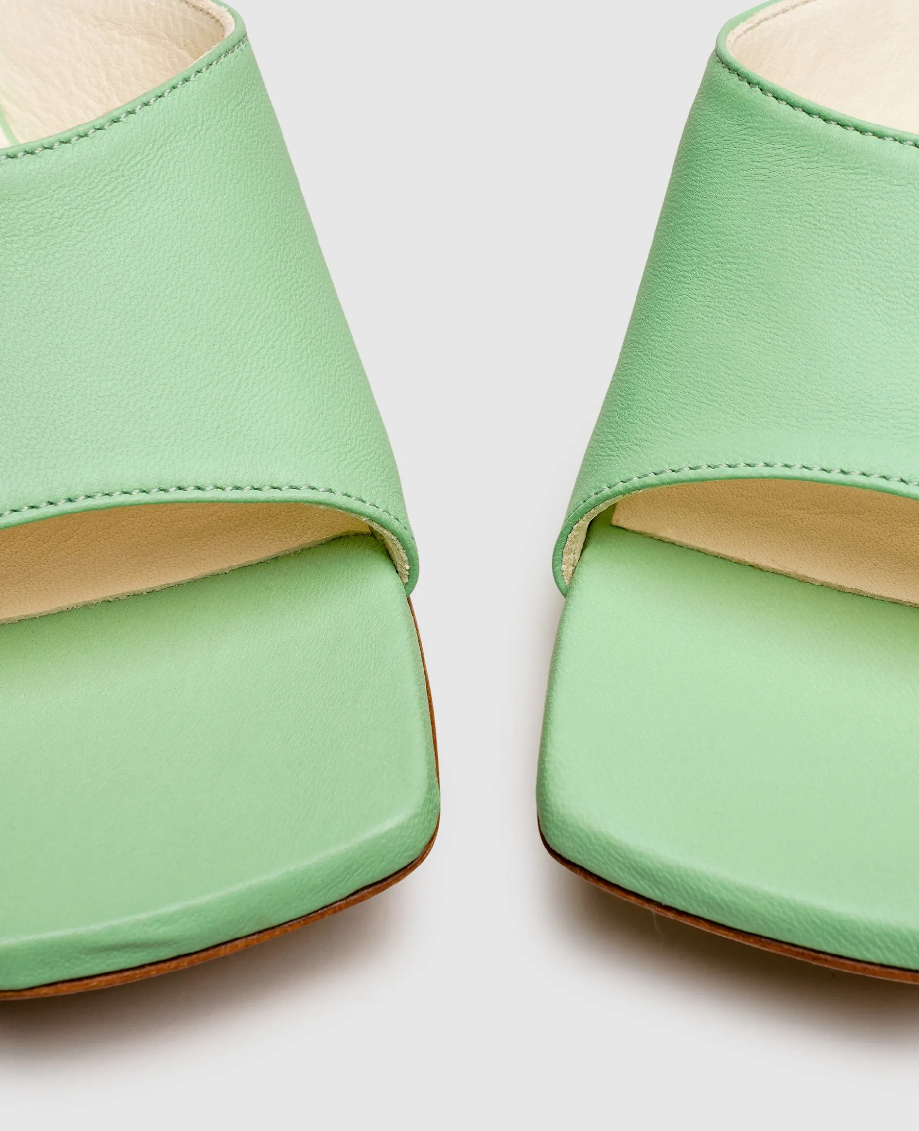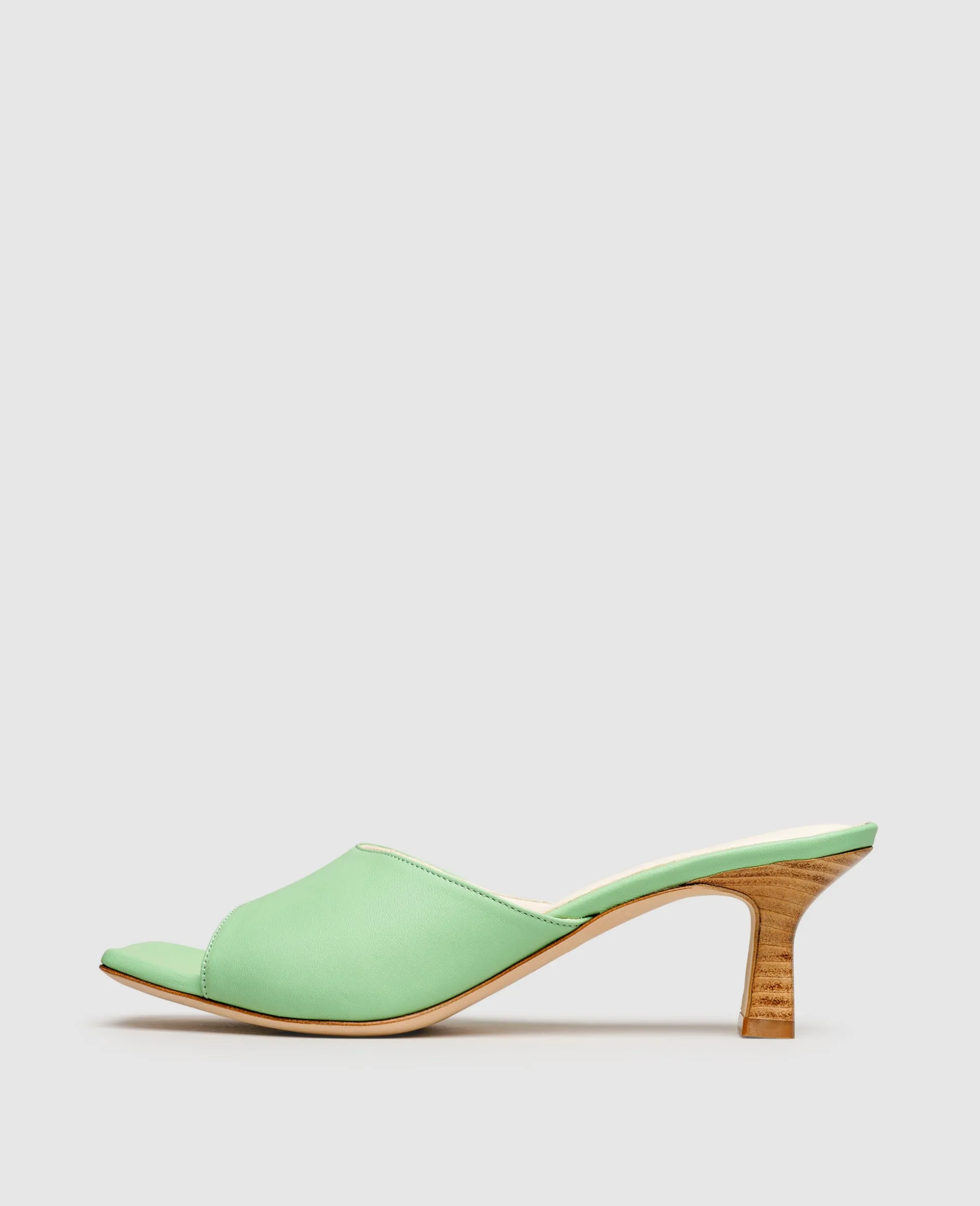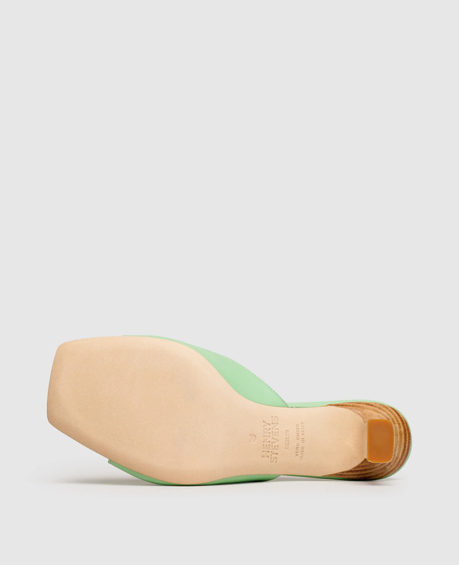 Nicht zuletzt der skulpturale Absatz mit einer Höhe von 5 Zentimetern erhebt diese Mules zu einem Statement-Piece, das garantiert bereits auf den ersten Blick Eindruck hinterlässt. Den Fuß der Trägerin ziert ein elegant geformter Riemen aus Kalbsleder, der an der Innen- und Außenseite etwas breiter ist und bei jedem Gang ausreichend Halt bietet. Zu einer anmutigen Erscheinung verhilft den Damen-Mules zudem die angesagte, eckige Vorderfußpartie.
