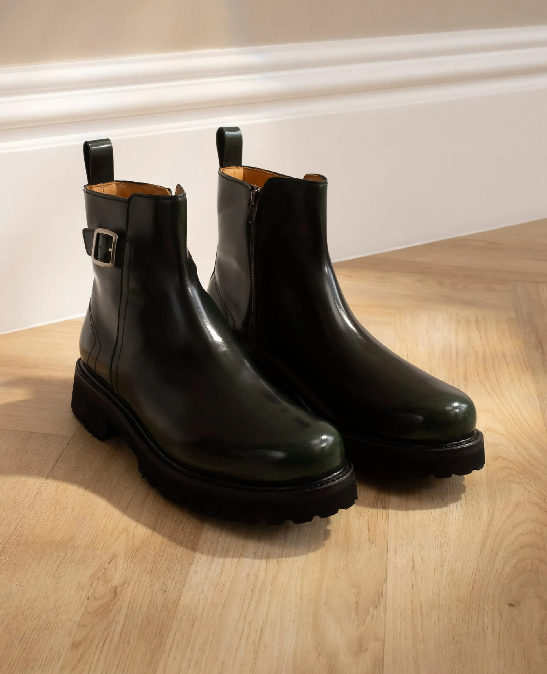 Der Harry JPB in Dunkelgrün überzeugt durch sein charakteristisches Design. Das glanzgestoßene Kalbsleder mit inverted Patina bringt Tiefe und Dynamik in den Look. Rahmengenäht auf dem Harry-Leisten und mit einer wetterfesten Profilsohle ausgestattet – ein echter Statement-Boot. Hergestellt in Spanien.