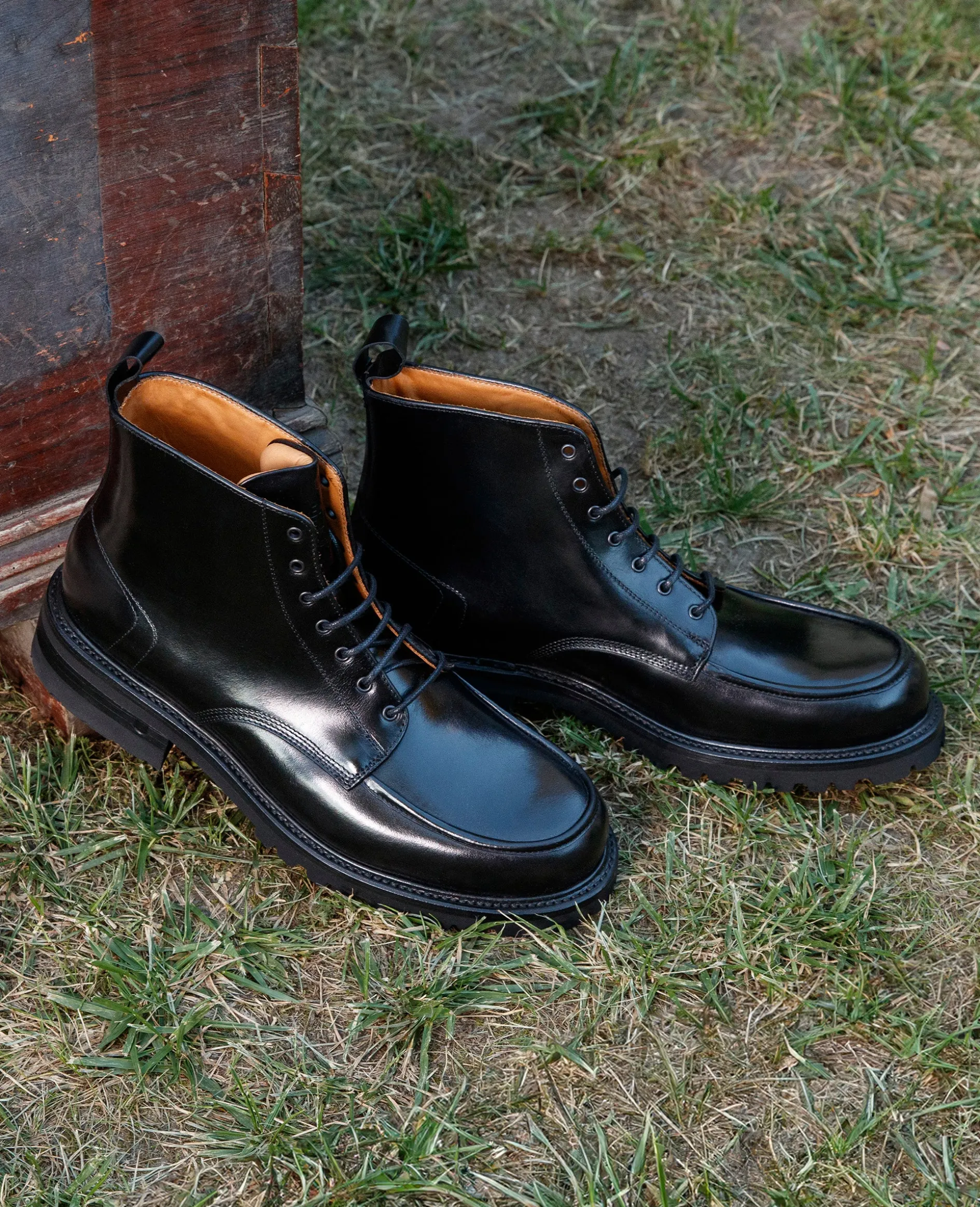 Ein Modell, das in seinem Design an die Arbeitsschuhe von norwegischen Fischern erinnert. Charakteristisch ist seine auf dem Vorderblatt parallel zum Sohlenrand verlaufende Naht nebst Teilung an der Spitze. Für den hohen Spann geeignet