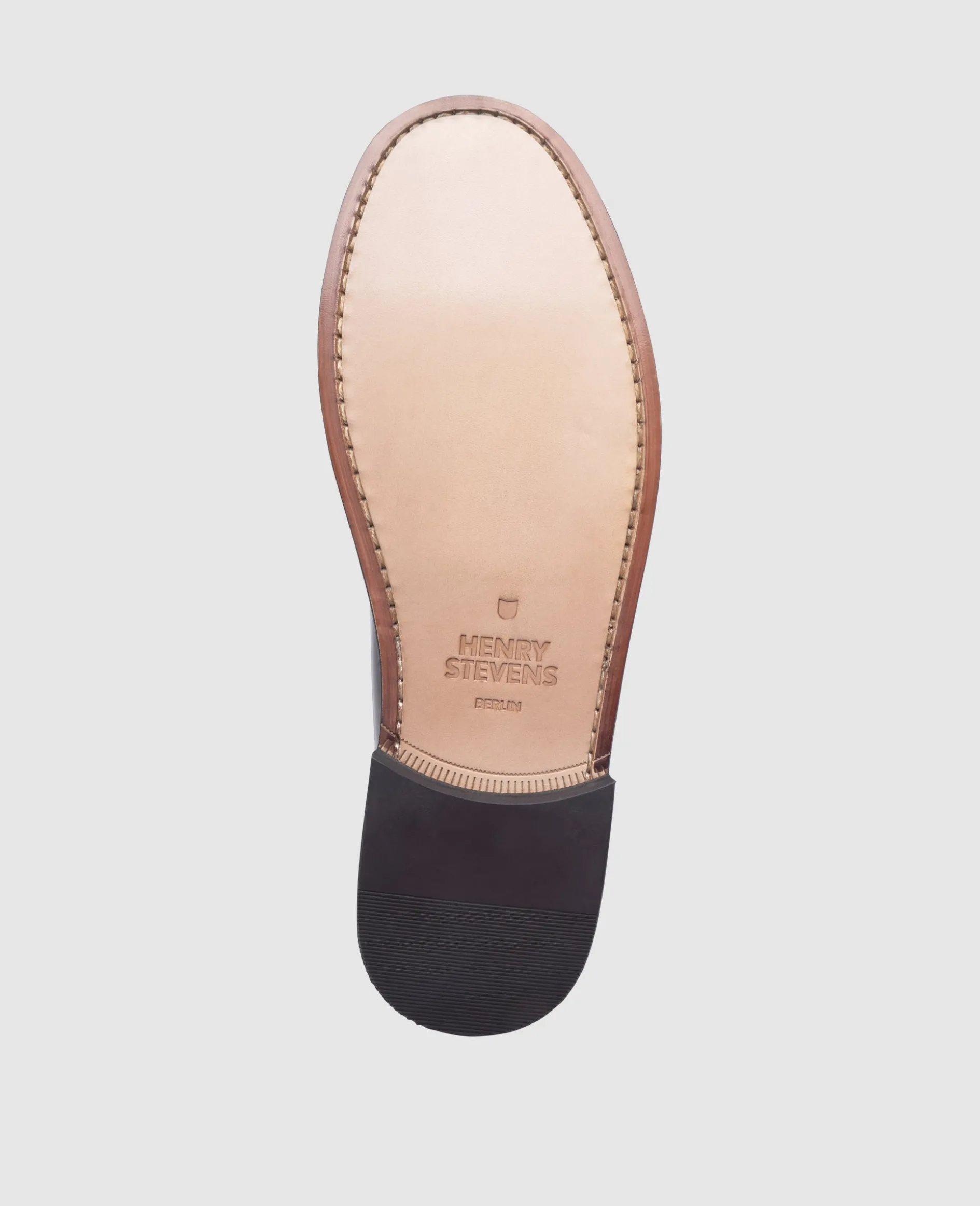 Dieser durchgenähte Penny Loafer aus hochwertigem Kalbsleder mit Handfinish steht für klassische Handwerkskunst. Sein zeitloses Design macht ihn zum idealen Begleiter für anspruchsvolle Tage und besondere Anlässe.