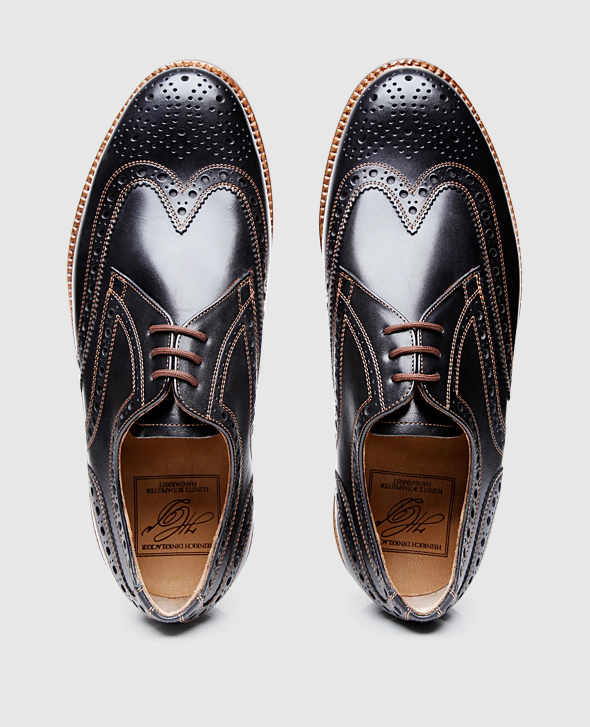 Für Herren mit breiteren Füßen ist der Janosh K Full-Brogue FC das perfekte Modell, das die K-Weite mit einem eleganten Schnitt vereinigt. Die traditionelle Lyra-Lochung unterstreicht den Charakter des handgearbeiteten Herrenschuhs, der zur Erhöhung der Stabilität zwiegenäht wurde und überdies eine harmonische Stuppung auf dem Rahmen aufweisen kann. Die Doppelsohle wurde mit einer Gummiprofil-Sohle abgeschlossen und macht dieses Modell somit zum idealen Begleiter für feuchtes Wetter.
