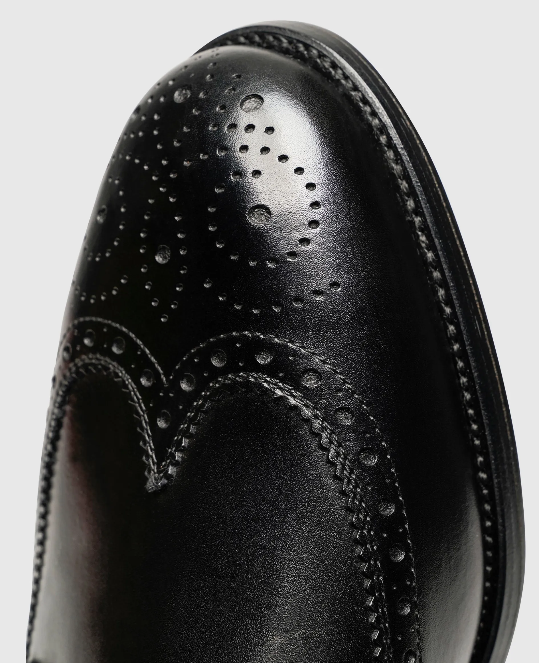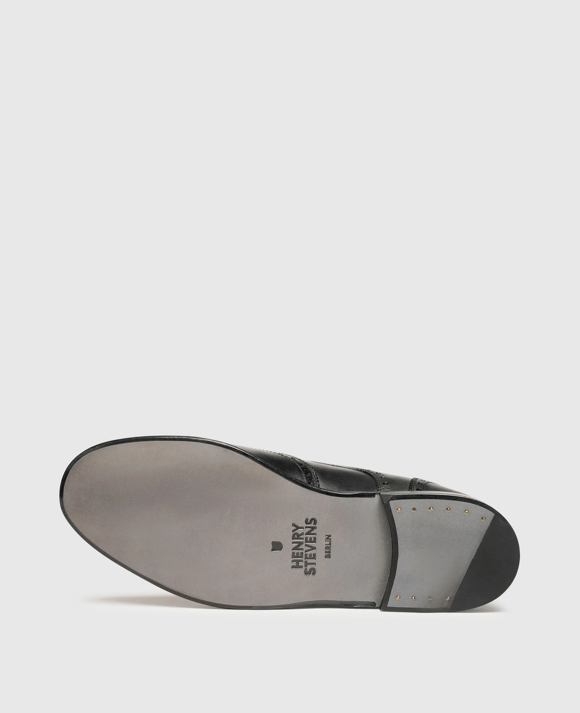 Mit dem Modell Jones präsentiert Henry Stevens einen klassisch rahmengenähten und handgefertigten Full-Brogue Derby für Herren mit einer angenehm breiten Grundform – die richtige Wahl für anspruchsvolle Business- und Freizeit-Looks. Das Mehr an Geräumigkeit wird von einem zeitlosen Design begleitet, dessen opulente Perforation dynamische Eleganz verströmt. Der Schaft begeistert mit pflanzlich gegerbtem Kalbsleder aus Frankreich, ergänzt von einem ebenso vegetabil gegerbtem Innenfutter und einer strapazierfähigen Lederlaufsohle.