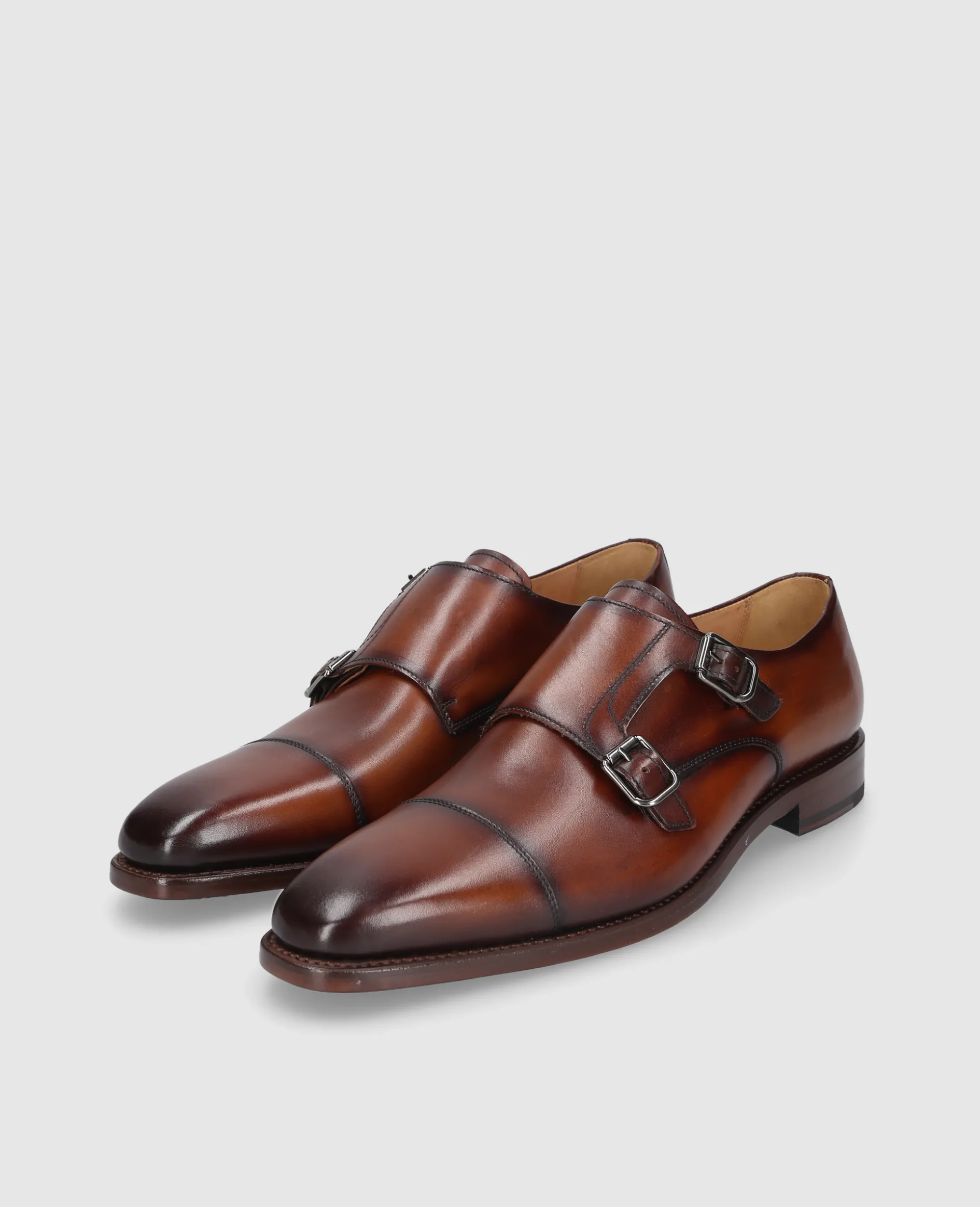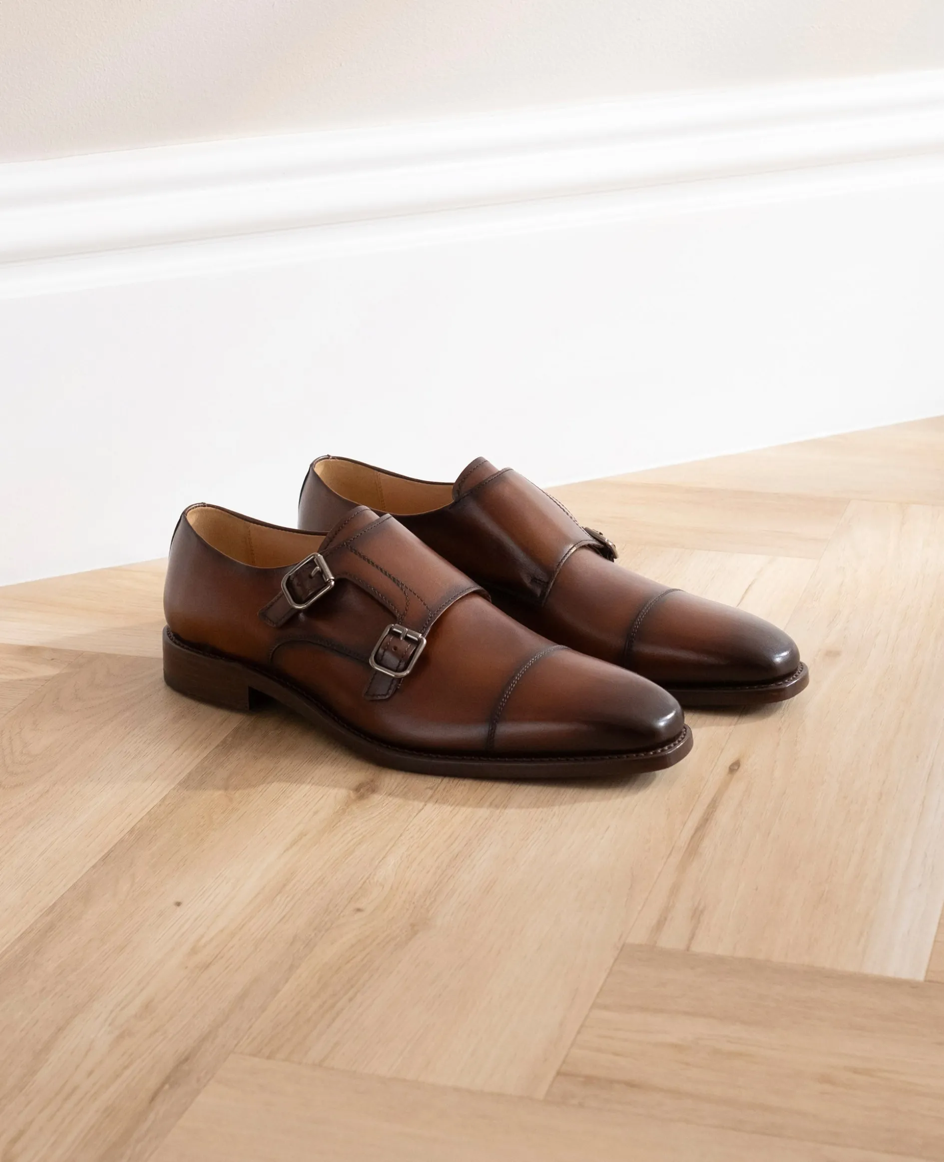 In Braun überzeugt der Liam CDM Double Monk mit feiner Patina und elegantem Finish. Das hochwertige Kalbsleder, die rahmengenähte Machart und der präzise gearbeitete Karreeleisten Liam verleihen dem Schuh Charakter und Tiefe. Die Ledersohle mit Gummieinsatz rundet das Erscheinungsbild funktional ab. Gefertigt in Spanien.