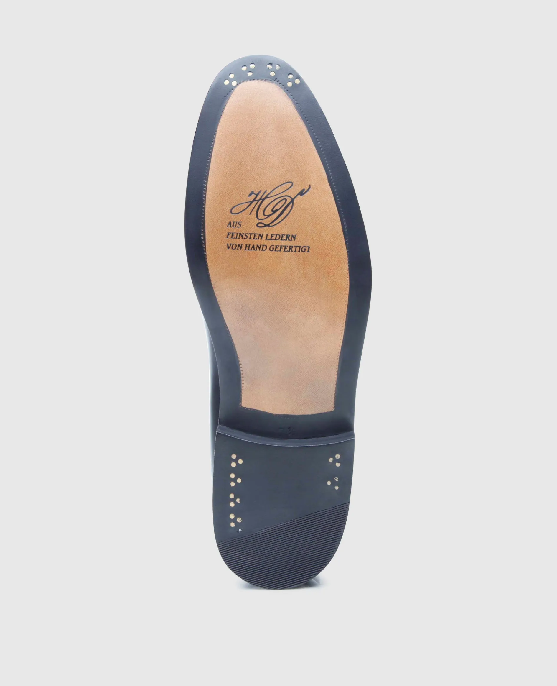 Mehr Business geht nicht: der Luzern Captoe BC ist der Klassischste unter den Herrenschuhen. Seine Struktur erhält er durch die abgesetzte Vorderkappe und seine flache Oxford-Schnürung. Das glatte Boxcalf-Leder zeichnet sich durch seine Feinporigkeit und Robustheit aus. Die Rendenbach-Sohle ist durch zahlreiche Messingstifte verstärkt, um den Abrieb zu reduzieren.