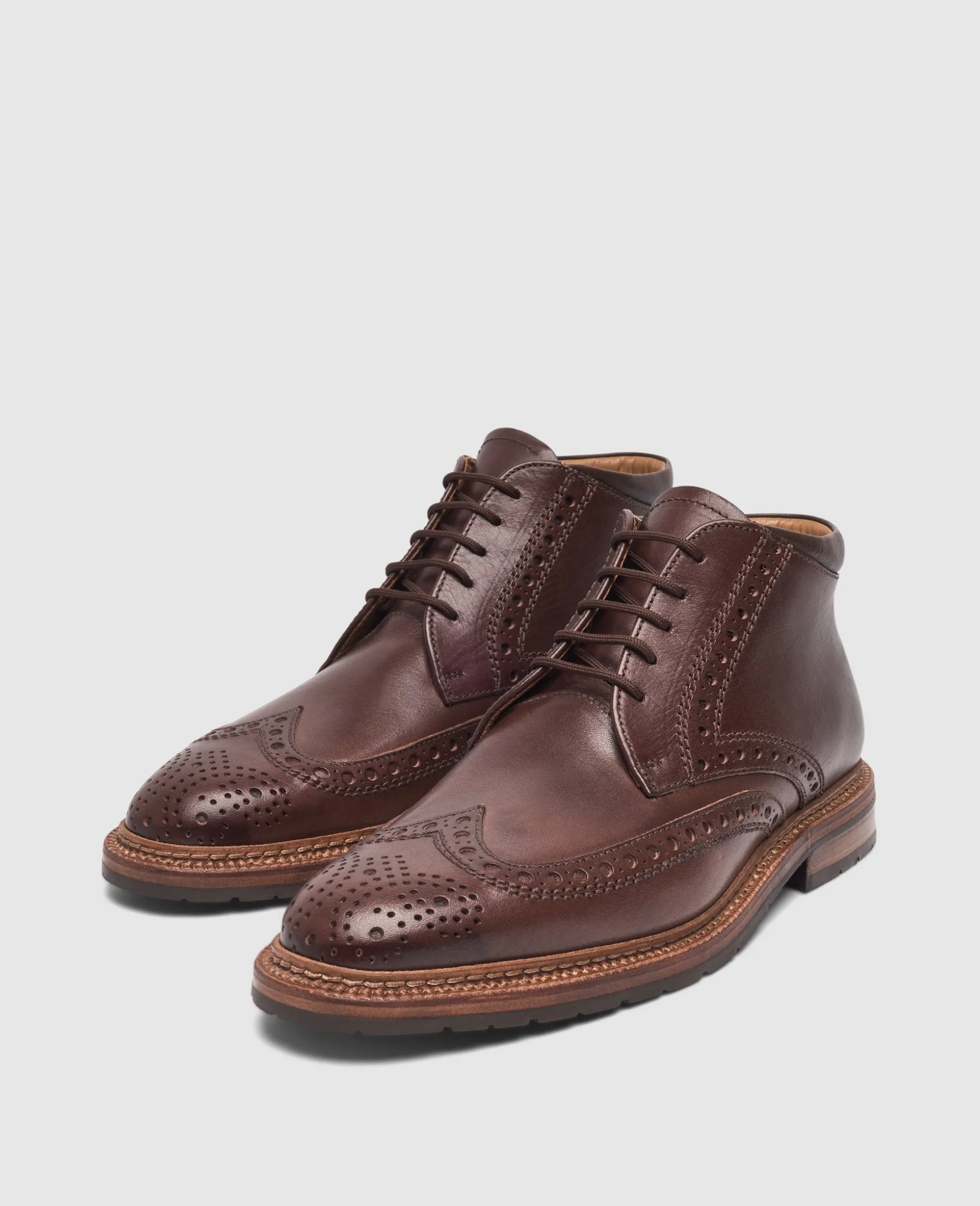 Der Luzern Full-Brogue Derby Boot in Dunkelbraun ist aus luxuriösem Boxcalf-Leder gefertigt und bietet ein Innenmaterial aus vegetabil gegerbtem Leder. Die rahmengenähte Konstruktion sowie die handgefertigte Verarbeitung in Kombination mit der robusten Gummisohle bieten Stabilität und Komfort. Hergestellt in Spanien.