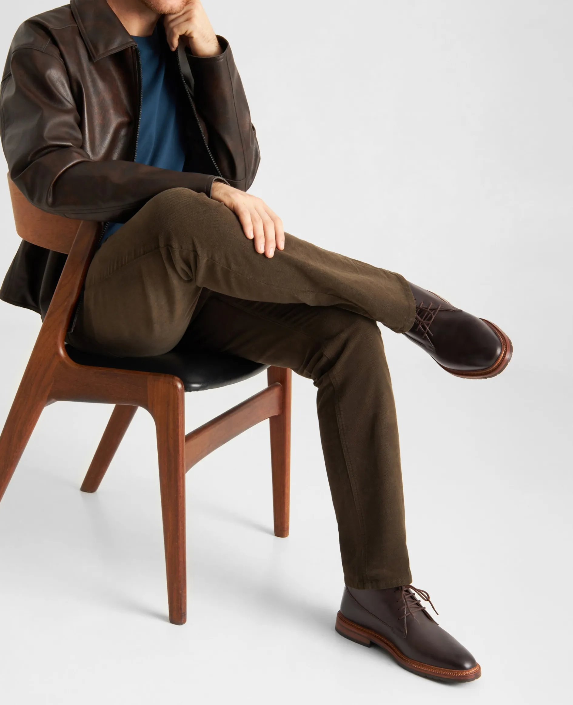 Das hydrophobierte Fettnubuk-Leder entwickelt eine starke, sportive Patina und ist dank Wachsschicht äußerst robust und wasserabweisend.