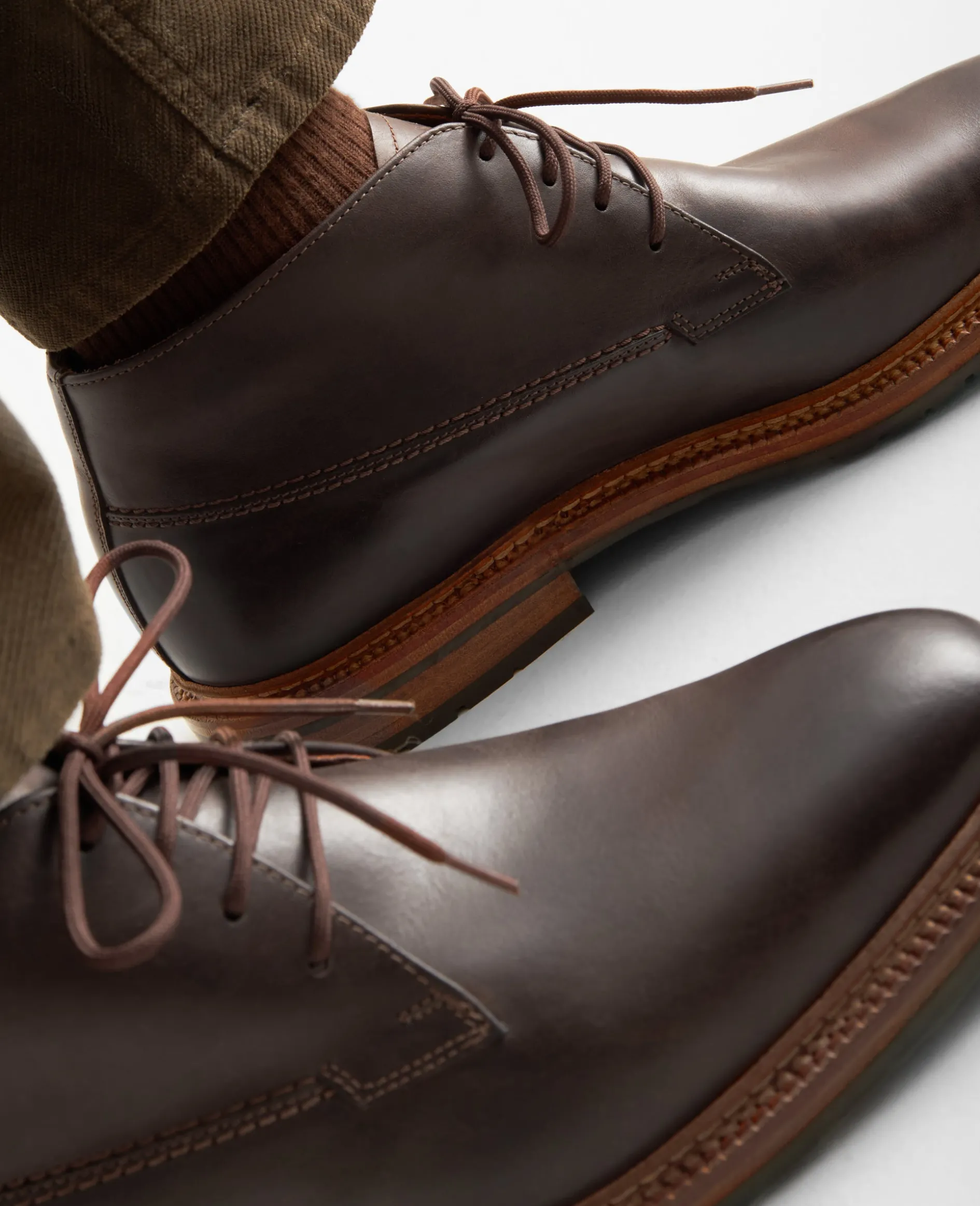 Beim George Boot handelt es sich um eine über den Knöchel reichende Herrenstiefelette, welche vom Schaftgrundschnitt dem klassischen Derby ähnelt. Er zeichnet sich durch sein glattes, einteiliges Vorderblatt aus sowie die weit zurückreichenden Seitenquartiere.