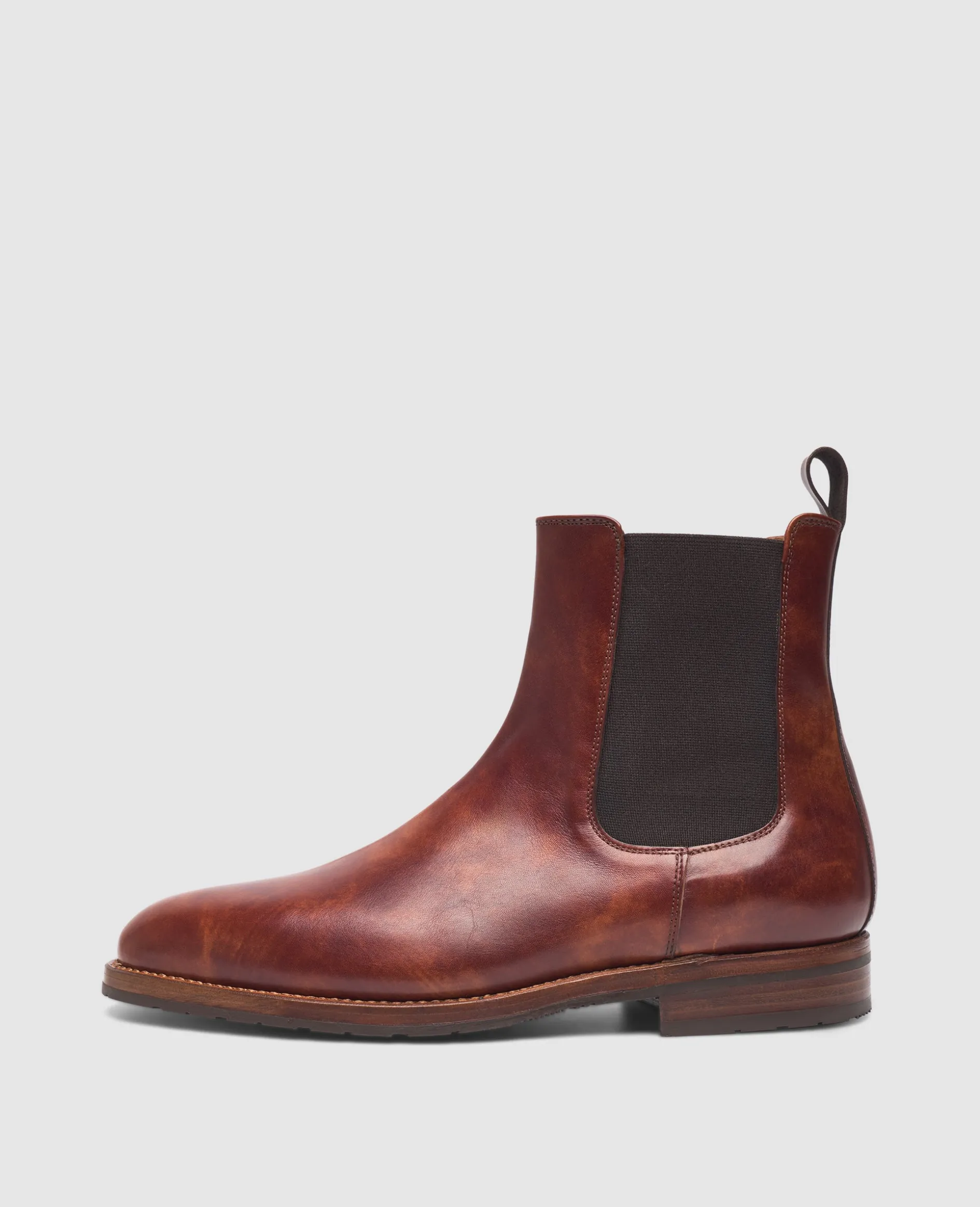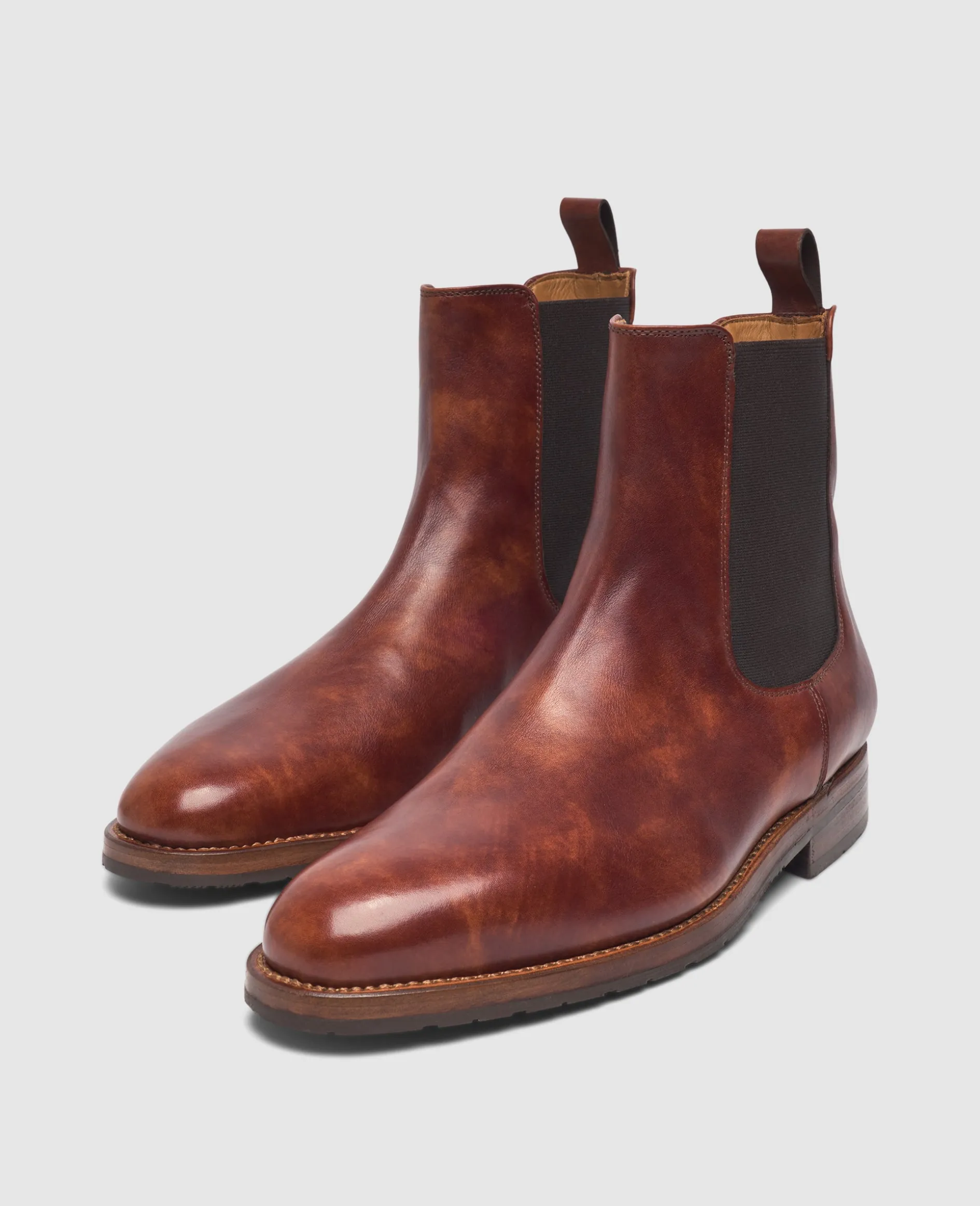 Der Luzern Chelsea Boot in Whiskey ist aus luxuriösem Toscana-Calf-Leder handgefertigt mit einem vegetabil gegerbten Innenleder, welches für hohen Tragekomfort sorgt. Die rahmengenähte Konstruktion und die Gummisohle bieten dem Modell Stabilität und Langlebigkeit. Hergestellt in Spanien.
