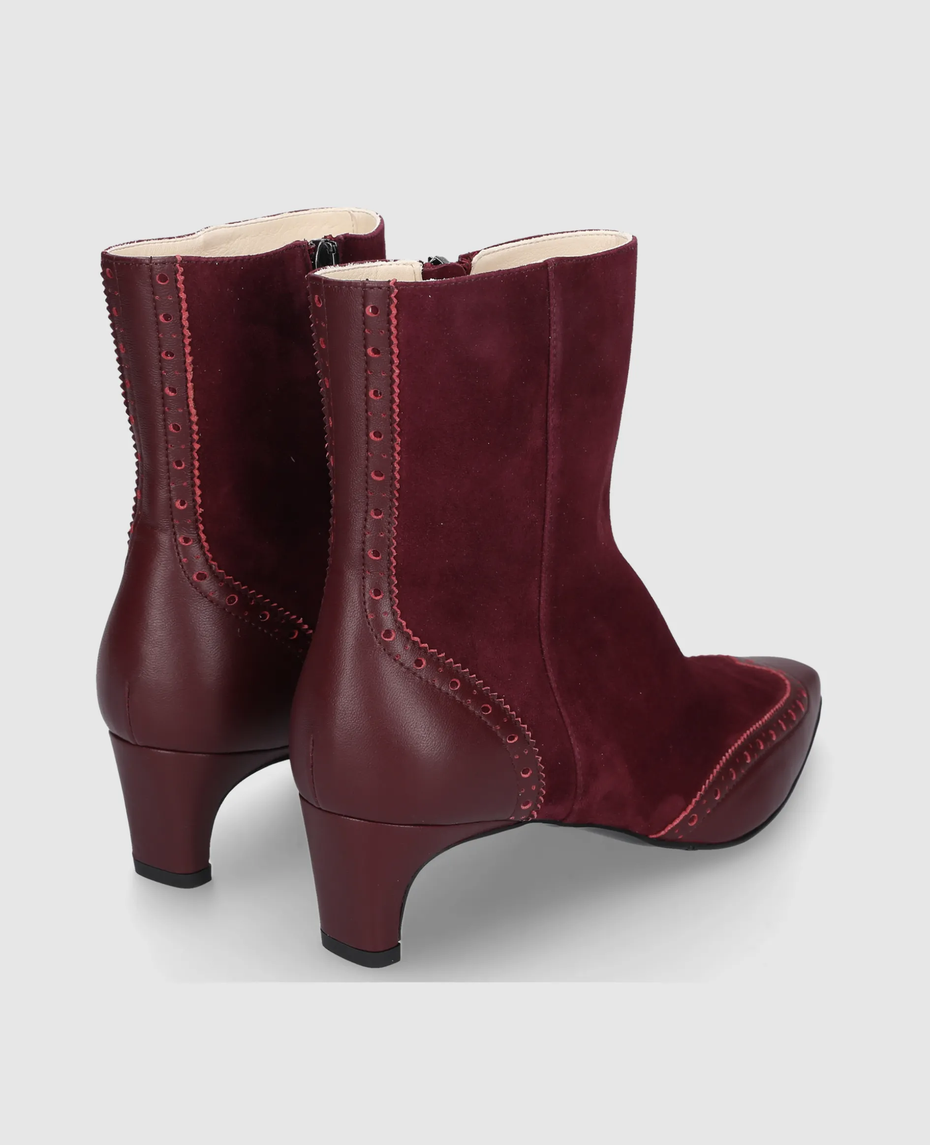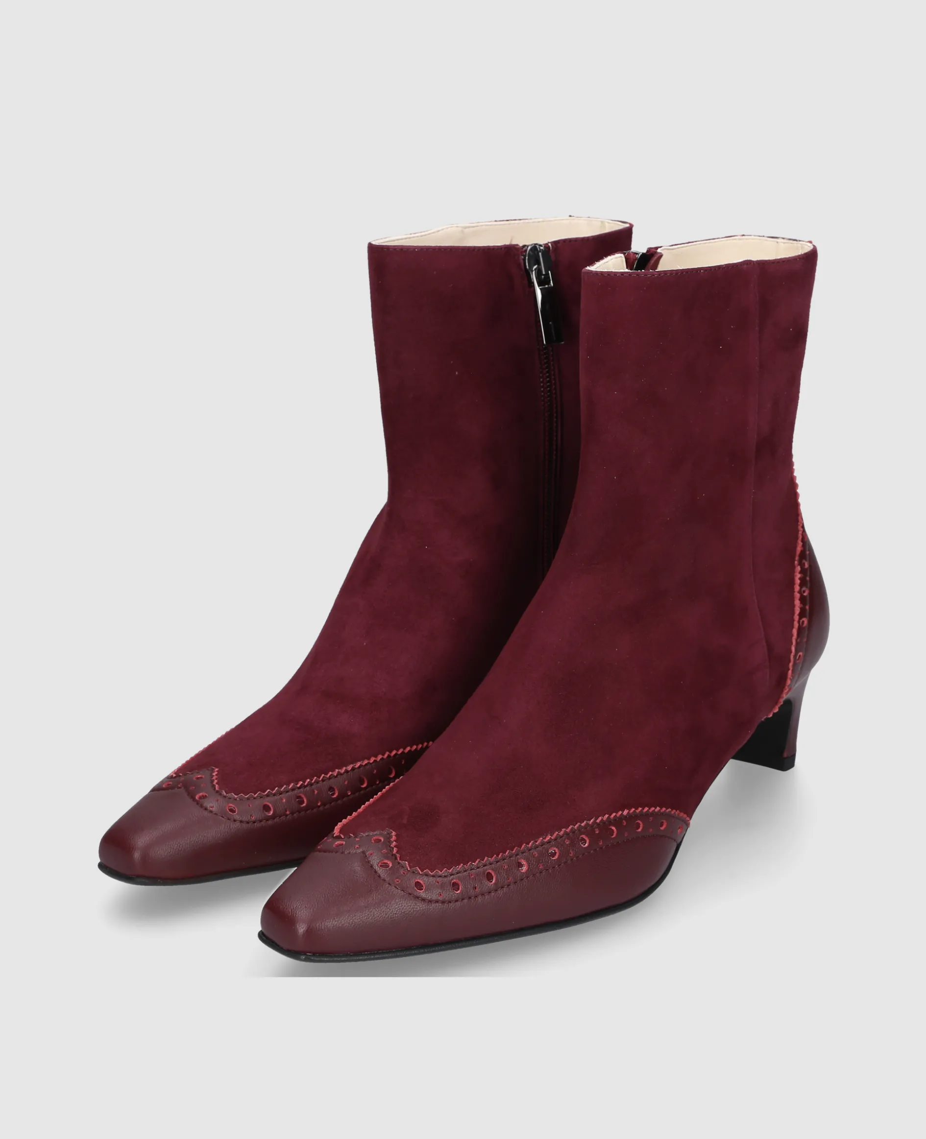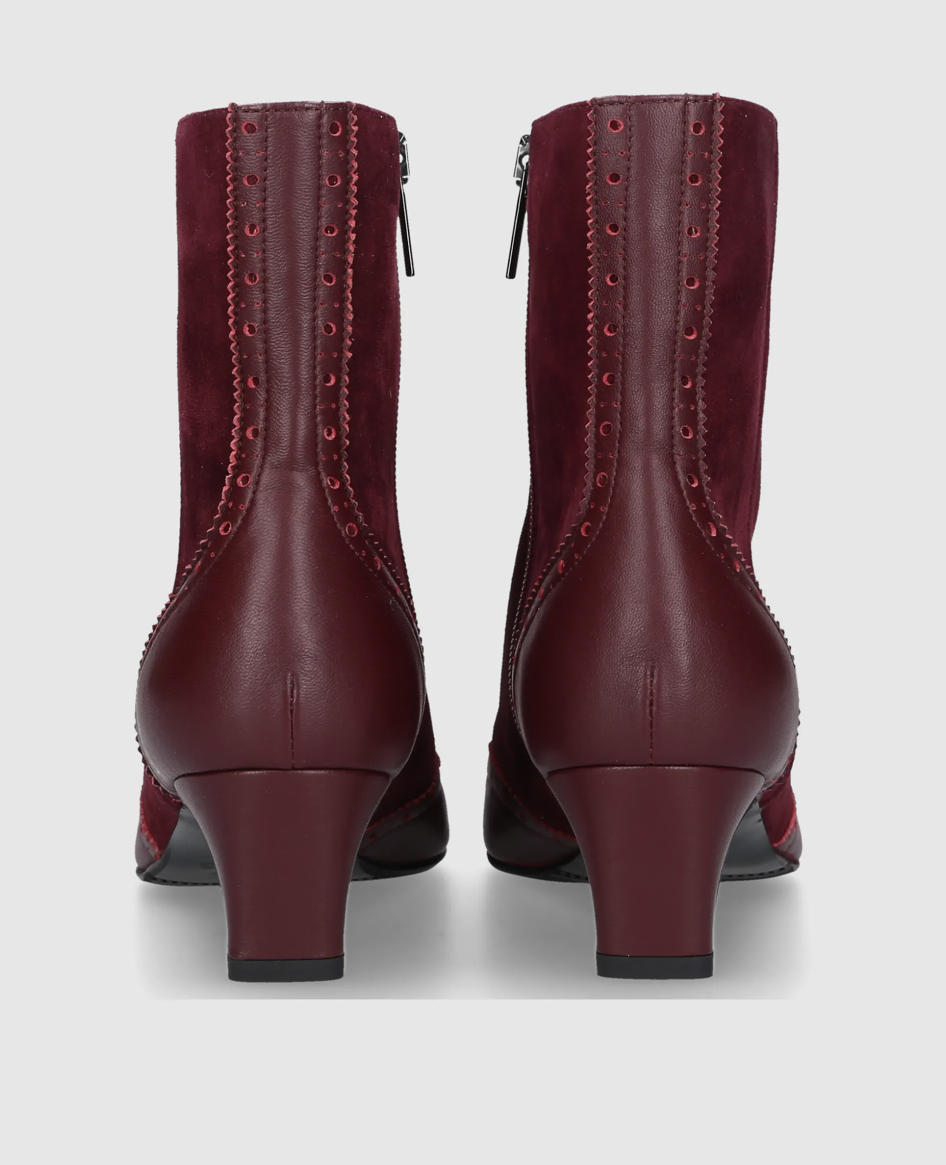 Der Madison ZB40 in Bordeaux kombiniert glattes Ziegennappa mit weichem Veloursleder und überzeugt mit einer markanten Optik. Der 4 cm hohe Absatz verleiht der Stiefelette eine moderne Silhouette und ein seitlicher Reißverschluss erleichtert den Einstieg. Innen sorgen Bioleder und ein gepolstertes Memoryfoam-Fußbett für angenehmen Tragekomfort. Gefertigt in Italien.