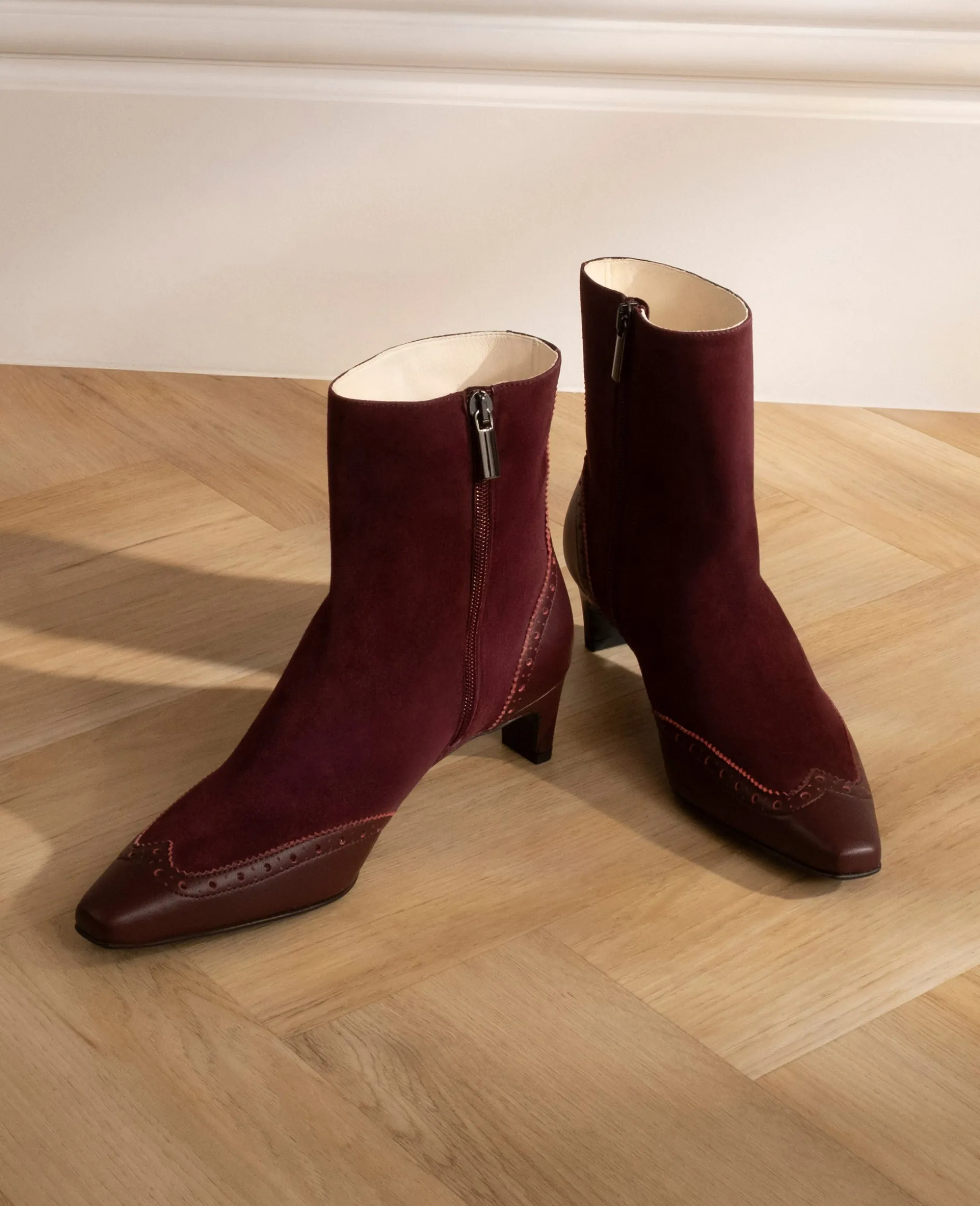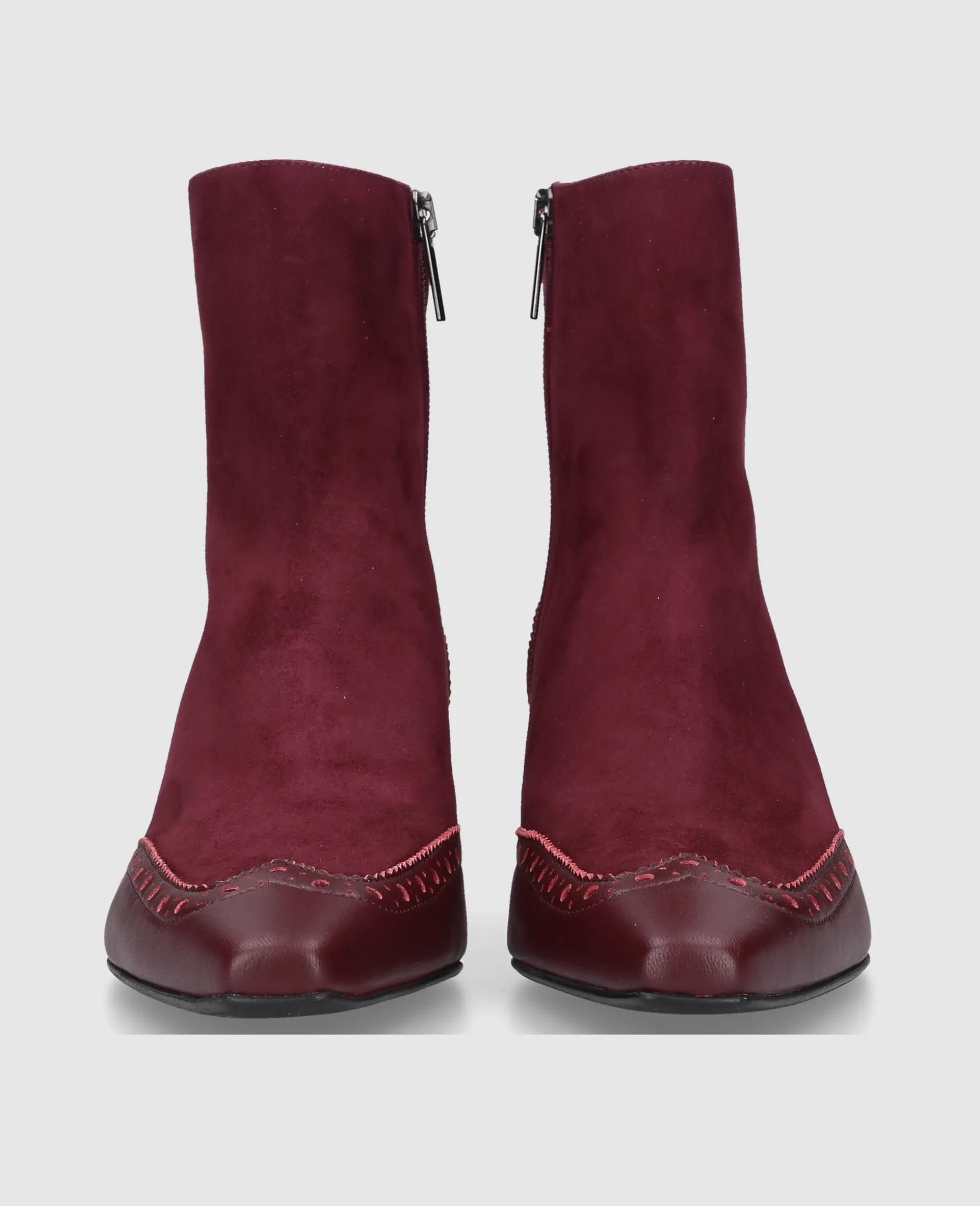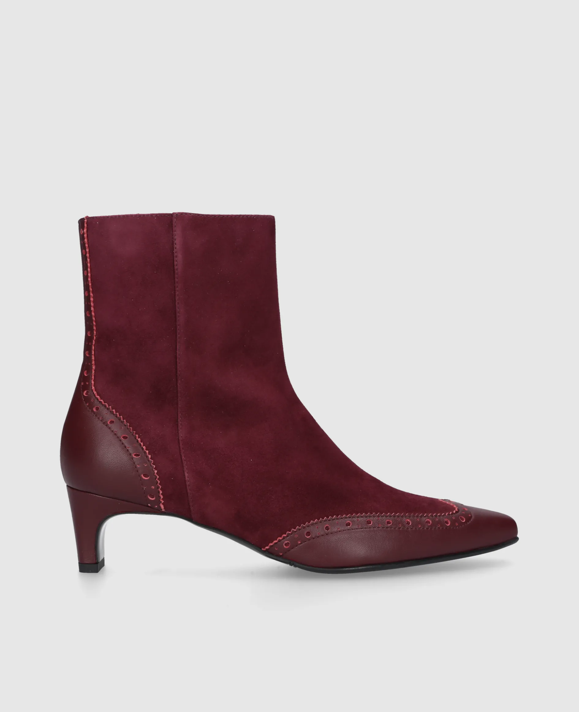 Der Madison ZB40 in Bordeaux kombiniert glattes Ziegennappa mit weichem Veloursleder und überzeugt mit einer markanten Optik. Der 4 cm hohe Absatz verleiht der Stiefelette eine moderne Silhouette und ein seitlicher Reißverschluss erleichtert den Einstieg. Innen sorgen Bioleder und ein gepolstertes Memoryfoam-Fußbett für angenehmen Tragekomfort. Gefertigt in Italien.