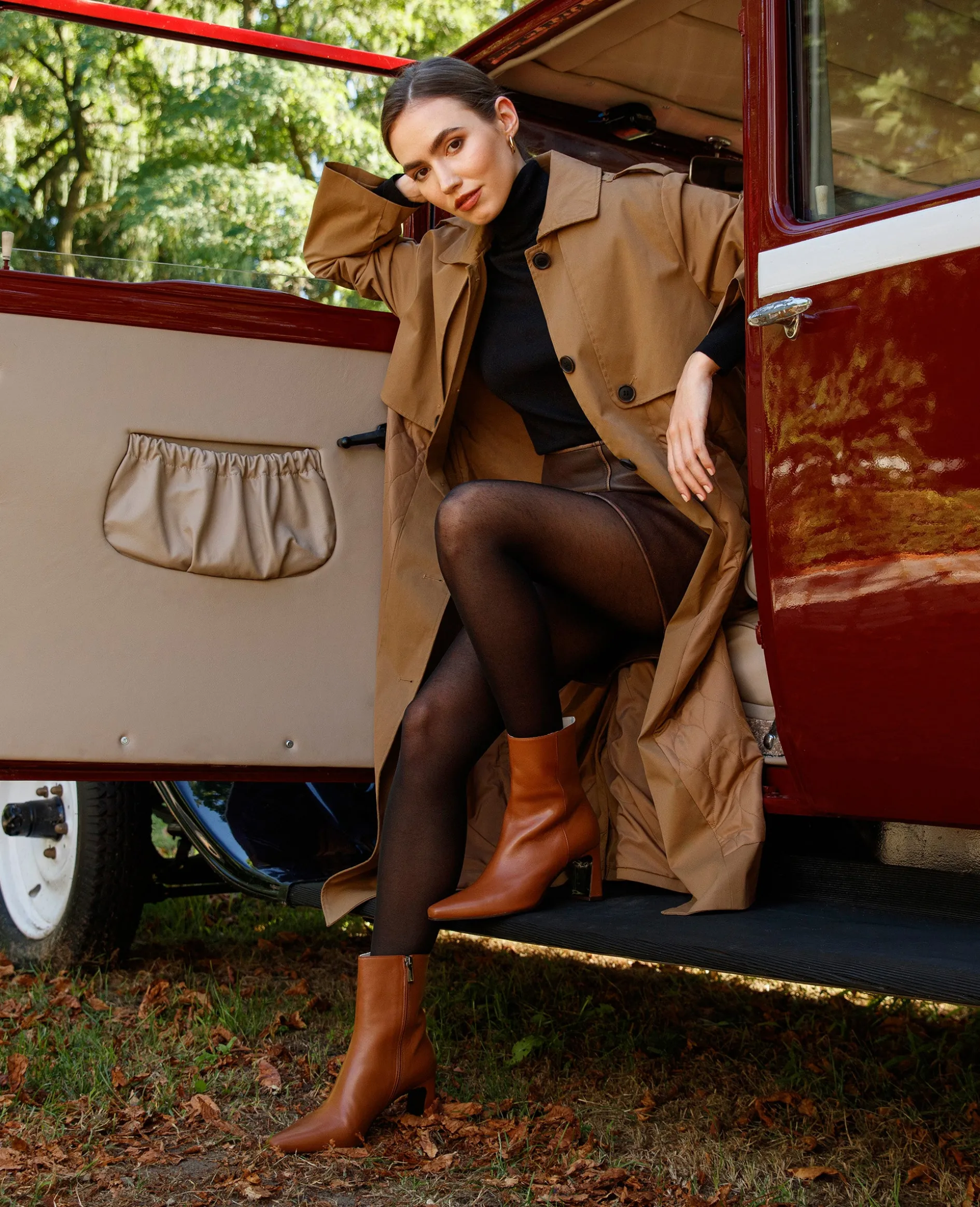 Die Balance zwischen klassischem Design und modernem Look gelingt den Zip Boots von Henry Stevens in Braun mit Bravour. Gemeinsam mit dem vollständig kompostierbaren und hautfreundlichen Innenfutter aus Bio-Leder sowie einem bequemen Fußbett mit Memoryfoam bietet der in Italien gefertigte Schuh moderne Leichtigkeit. Dieses braune Schuhmodell für Damen überzeugt durch seinen Reißverschluss sowie dem glatten und weichen Ziegennappa. Durch die trittsichere Laufsohle aus Gummi und dem 4 Zentimeter hohen Blockabsatz wird das angenehme Laufgefühl unterstützt und die Optik des Schuhs unterstrichen. Ihre faszinierende Optik prädestiniert die Schlupfschuhe für anspruchsvolle Freizeit-Looks.