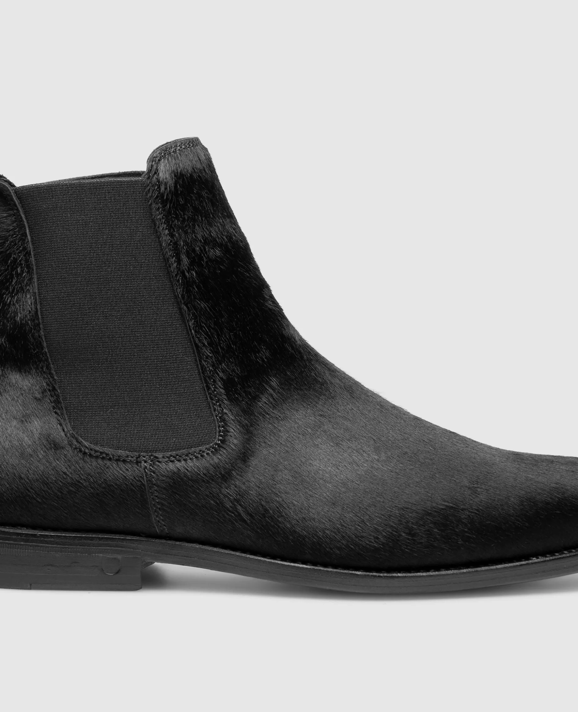 Diese Winterversion der überaus beliebten rahmengenähten Chelsea Boots von Henry Stevens garantiert dem Träger äußerste Standfestigkeit und wohlig-warmen Komfort. Gemeinsam mit einem gemütlichen Lederfußbett und einem vegetabil gegerbten Innenfutter aus Leder versprechen die in Spanien handgefertigten Schuhe moderne Leichtigkeit und Komfort. Das schwarze Herrenmodell begeistert mit rauem und weichem Ziegenfell. Ausgestattet mit einer edlen Laufsohle aus Leder gehören müde Füße selbst nach einem langen und laufintensiven Tag der Vergangenheit an. Der Schlupfschuh ist bestens geeignet zur Abrundung Ihrer Looks an den kalten Tagen des Jahres, an denen Ihnen anerkennende Blicke mit diesem Modell am Fuß garantiert sind.