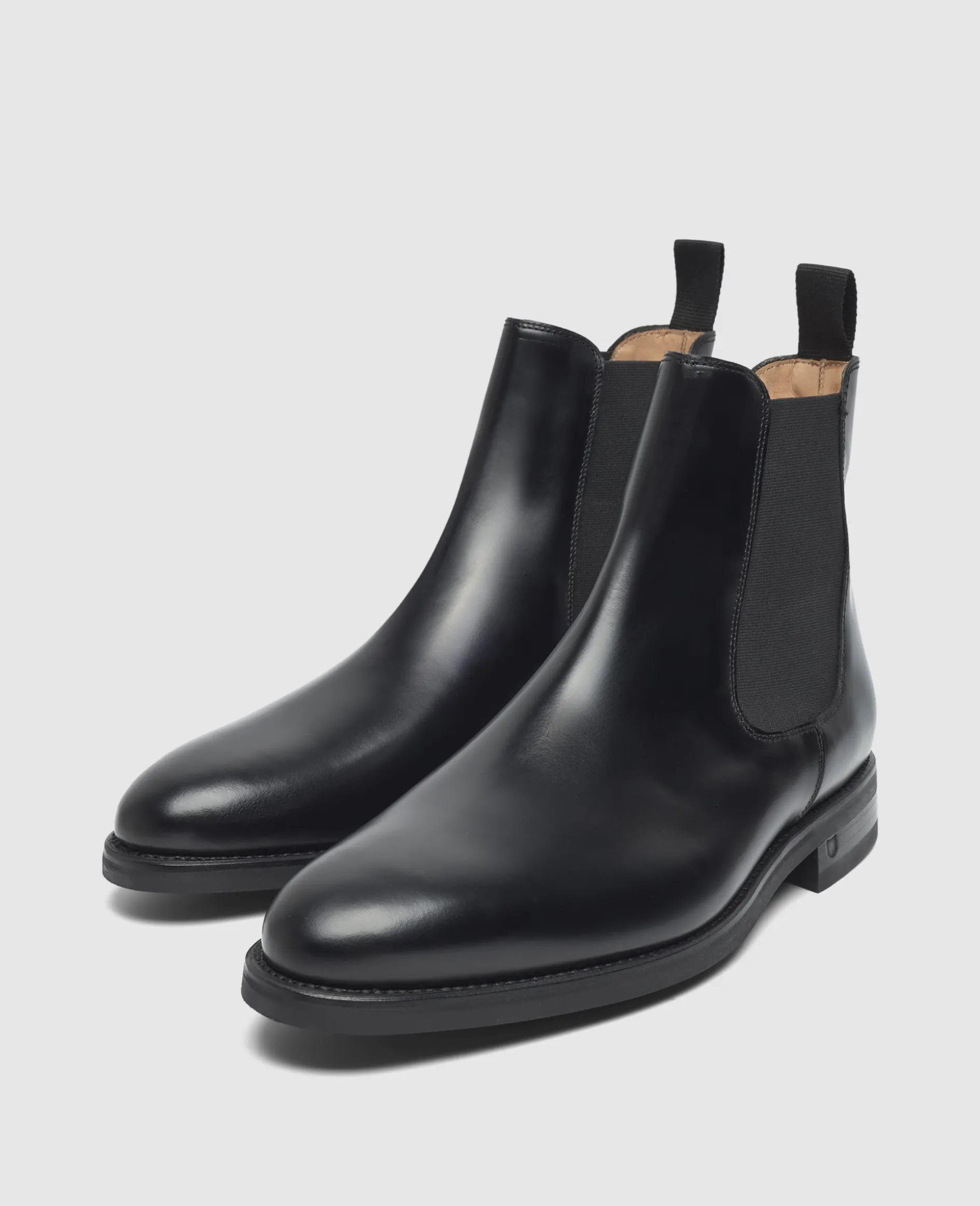 Der Marshall Chelsea Boot in Schwarz aus weichem Kalbsleder verfügt über ein Innenmaterial aus vegetabil gegerbtem Leder und eine wasserabweisende Gummisohle. Durch seine handgefertigte und rahmengenähte Machart vereint er Handwerkskunst und zeitloses Design. Hergestellt in Spanien.