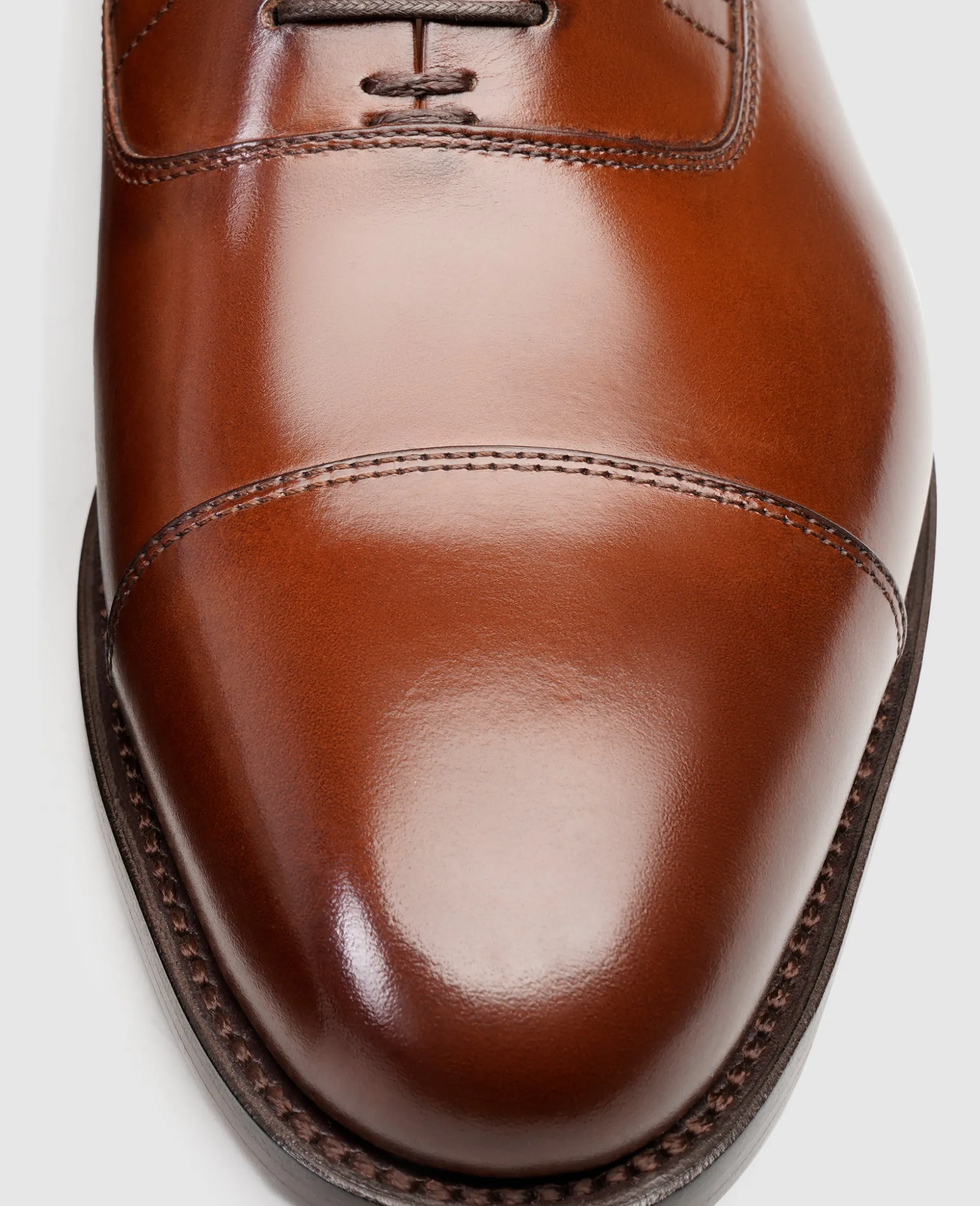 Bereits auf den ersten Blick versprüht das Modell Marshall Captoe Oxford von Henry Stevens einen dynamischen Esprit dank der nach vorn sanft zusammenlaufenden Leistenform. Der rahmengenähte und handgefertigte Volllederschuh für Herren erfüllt mit seinem geschlossenen Blattschnitt und dem französischen Kalbsleder die höchsten Ansprüche an einen zeitlos-eleganten Businessschuh. Selbstverständlich überzeugt der berühmte Allrounder auch zu feierlichen Anlässen und im gehobenen Freizeitbereich. Ein vielseitig einsetzbarer Schnürschuh für alle Herren, die Wert auf Qualität, Komfort und Stil legen.