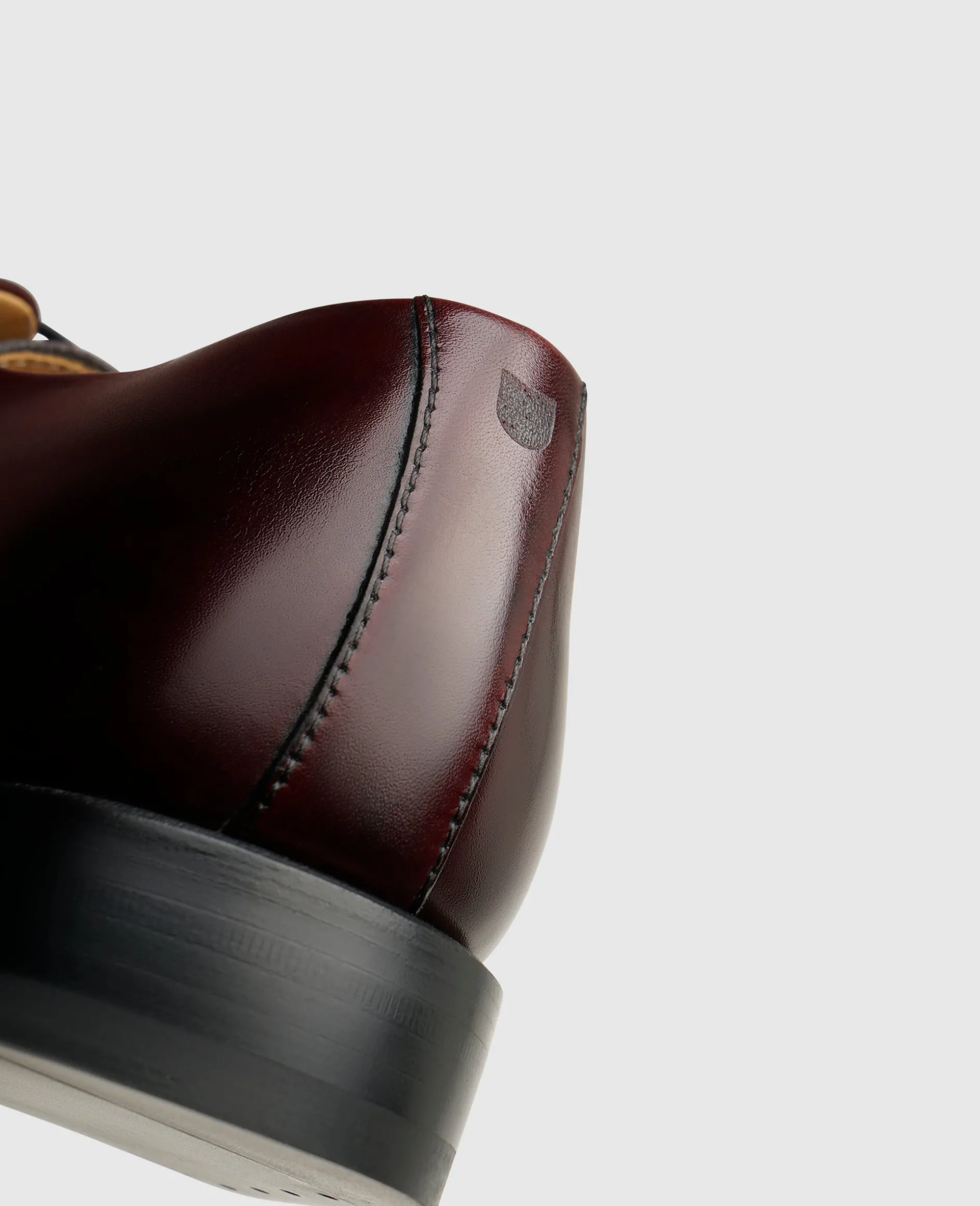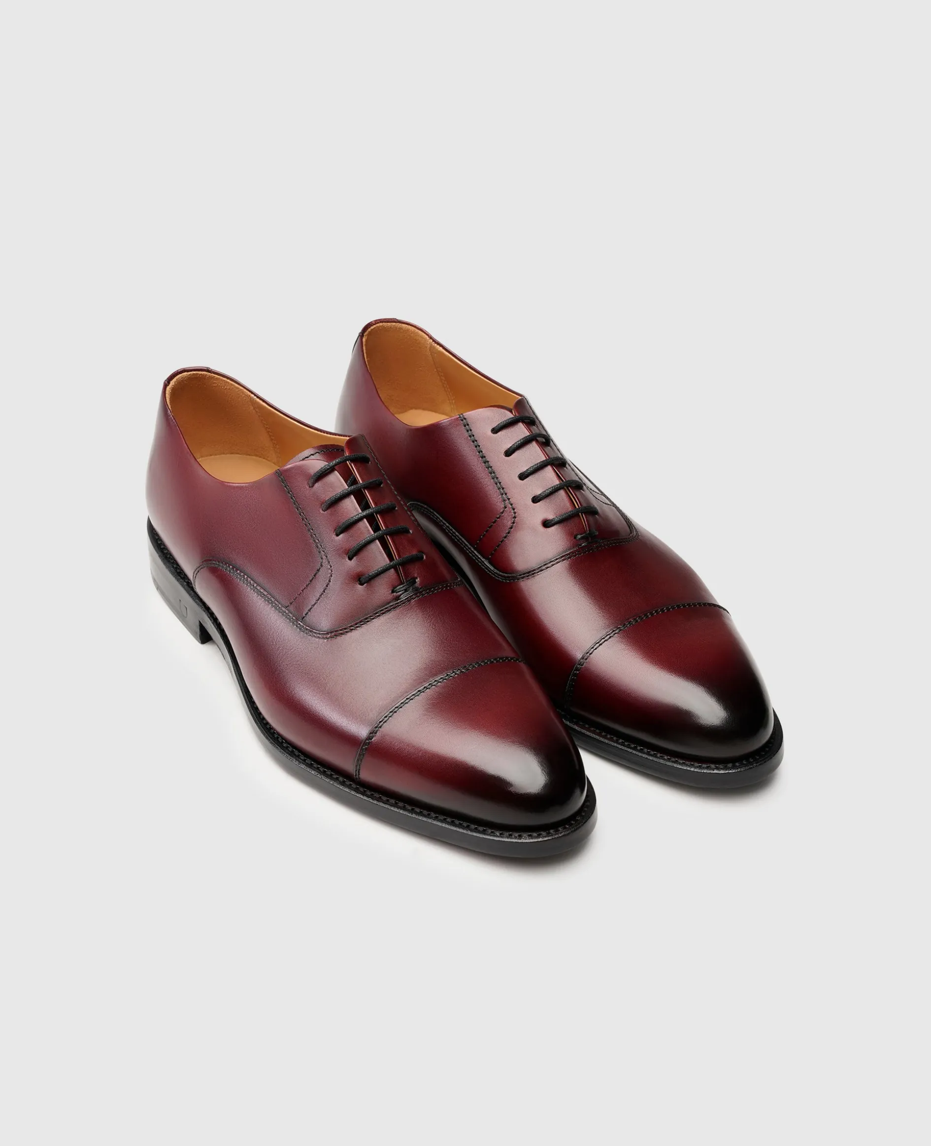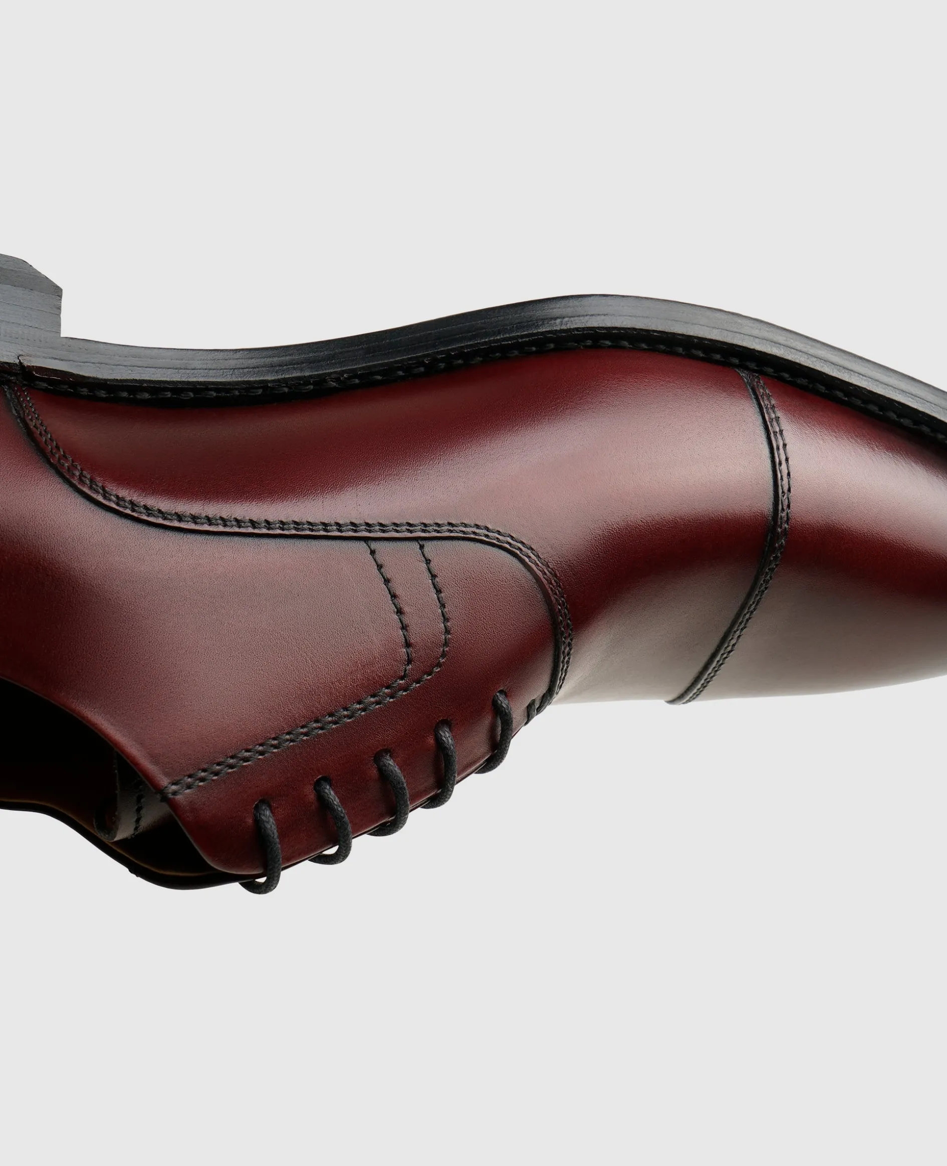 Das Modell Marshall Captoe Oxford der Marke Henry Stevens hat einfach alles. Ein klassischer Look trifft auf geschmeidig glänzendes Kalbsleder mit faszinierenden Hell-Dunkel-Schattierungen. Jene sind das Ergebnis von einem aufwendigen Finish, welches der elegante Schnürschuh von Hand erhält. Als einer der beliebtesten Herrenschuhmodelle der Welt weiß der rahmengenähte Captoe Oxford in dieser Form nahezu auf jedem Parkett zu überzeugen, egal ob in konservativen Branchen oder zum Smart Casual Outfit. Zum Blickfang avanciert nicht zuletzt die elegante Leistenform dieses edlen Volllederschuhs für Herren, die sich im Vorderfußbereich sanft verjüngt.