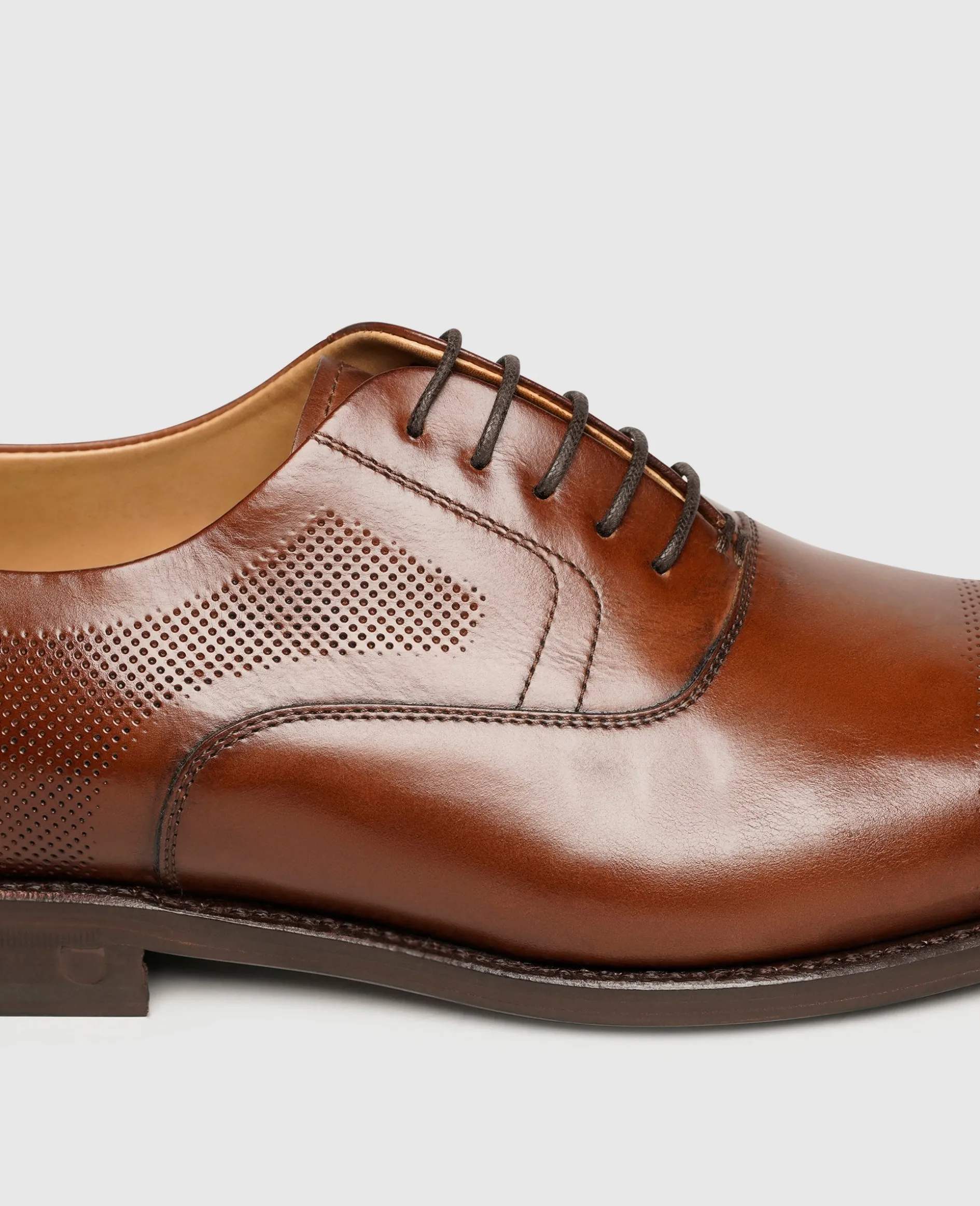 Als luftig-leichte Wahl für sommerliche Alltags-Outfits präsentieren sich diese rahmengenähten Klassiker von Henry Stevens. Dieses mittelbraune Schuhmodell für Herren überzeugt durch seine Schnürung sowie das glatte und strapazierfähige Newcastle-Leder. Das Innenfutter ist atmungsaktiv und besonders hautfreundlich, da es aus vegetabil gegerbtem Leder gefertigt ist. Besonderen Halt gibt Ihnen das komfortable Fußbett aus Leder, welches durch eine natürliche Lederlaufsohle Vollendung findet. Das Modell wurde in Spanien handgefertigt und besticht auf Anhieb durch seine dekorativen Micro-Perforationen. Der schicke Schnürer ist der perfekte Begleiter für Business-Looks und die gehobene Freizeitgarderobe.