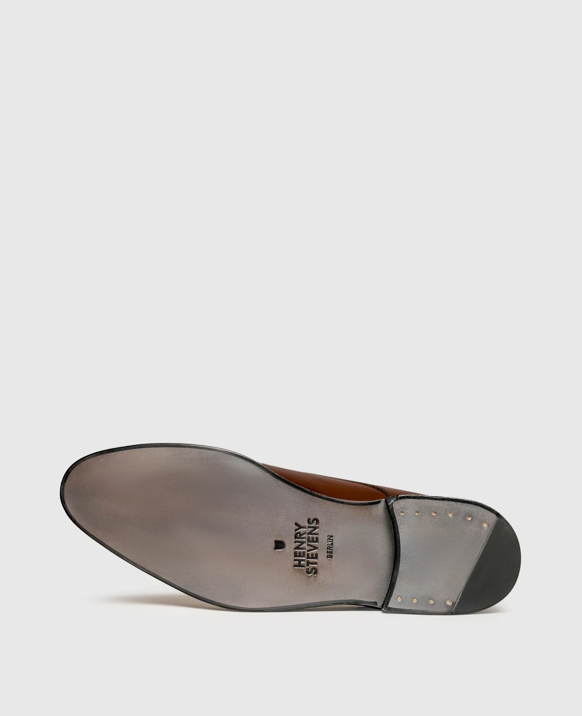 Markante Eleganz definiert den rahmengenähten und handgefertigten Norweger Herrenschuh von Henry Stevens. Der berühmte Schnürschuh zeichnet sich durch einen U-förmigen Schafteinsatz auf dem Schuhoberteil aus, begleitet von einer dynamischen Schaftteilungsnaht. Jenes dominante Design-Element trifft bei dem Modell Marshall auf ein geschmeidiges Glattleder aus Frankreich und eine elegante Ledersohle. Dank der erlesenen Materialien und der aufwendigen Machart avanciert der Norweger Herrenschuh zum Grenzgänger zwischen Klassik und Nonchalance.