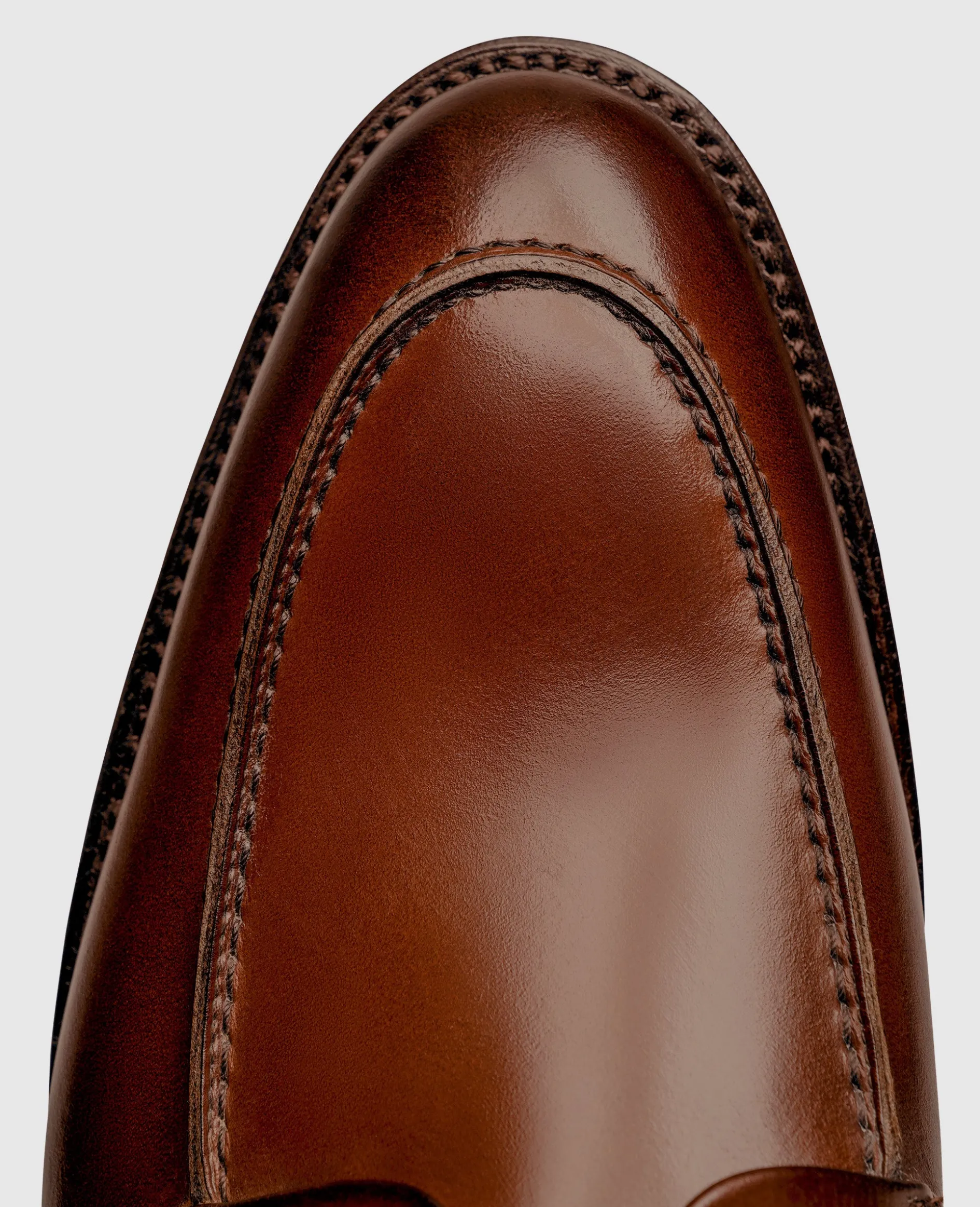 Das erlesene Kalbsleder aus Frankreich ist für gehobenes Schuhwerk prädestiniert. Trotz seines weichen Griffs ist es besonders strapazierfähig und gleichmäßig fest. Das kleinporige Leder überzeugt durch eine erstaunliche Feinnarbigkeit, die für einen seidenmatten Glanz sorgt. Der vegetabile Anteil im Gerbprozess ist bei diesem Leder besonders hoch.
