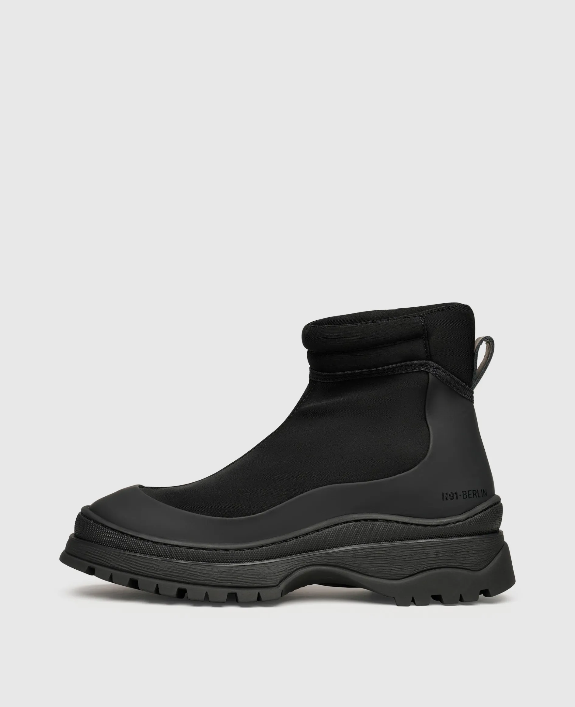 Als ziemliches It-Piece und Hingucker all Ihrer Looks kann garantiert diese Stiefelette von N91 dienen. Der Schaft erscheint wie ein Strumpf, während eine Zuglasche über der Ferse den Einstieg in das enganliegende Modell erleichtert. Die textile Damen-Stiefelette verfügt zudem über eine Ummantelung aus gummiertem und wasserabweisendem Leder, welche bis zum Fersenbereich reicht. Auf der matten Lederpartie findet sich ein dezent schimmernder Logo-Print von N91.