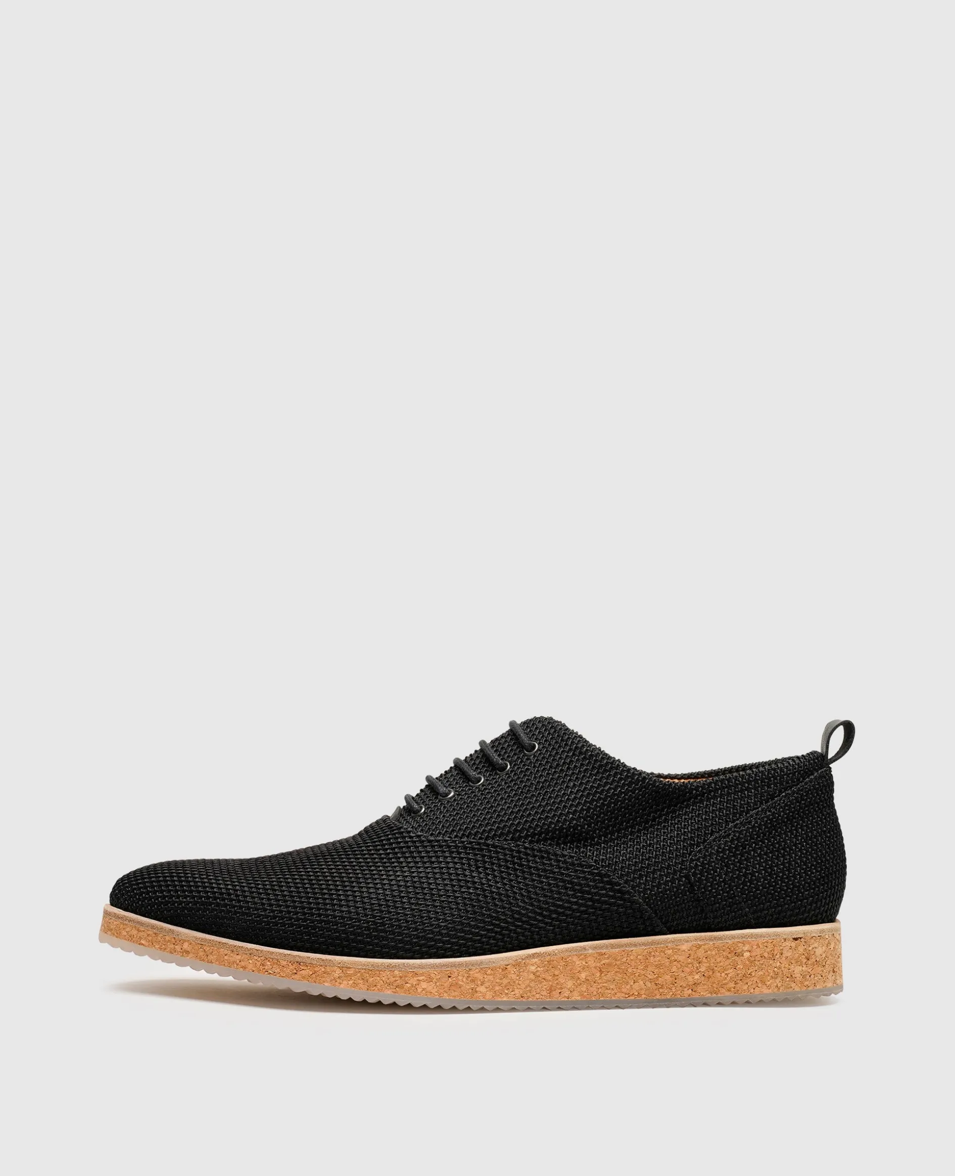 Moderne Leichtigkeit umgibt dieses Herrenschuhmodell im berühmten Oxford-Design aus der Kollektion von Henry Stevens. Das Schuhoberteil begeistert mit recycelten Textilfasern in raffinierter Web-Optik. Lässig und bequem präsentiert sich der markante Schuhboden aus weichem Naturkork mit abschließendem Gummiprofil. Im Schuhinneren befindet sich pflanzlich gegerbtes und vollständig kompostierbares Bio-Leder sowie ein praktisches Wechselfußbett.