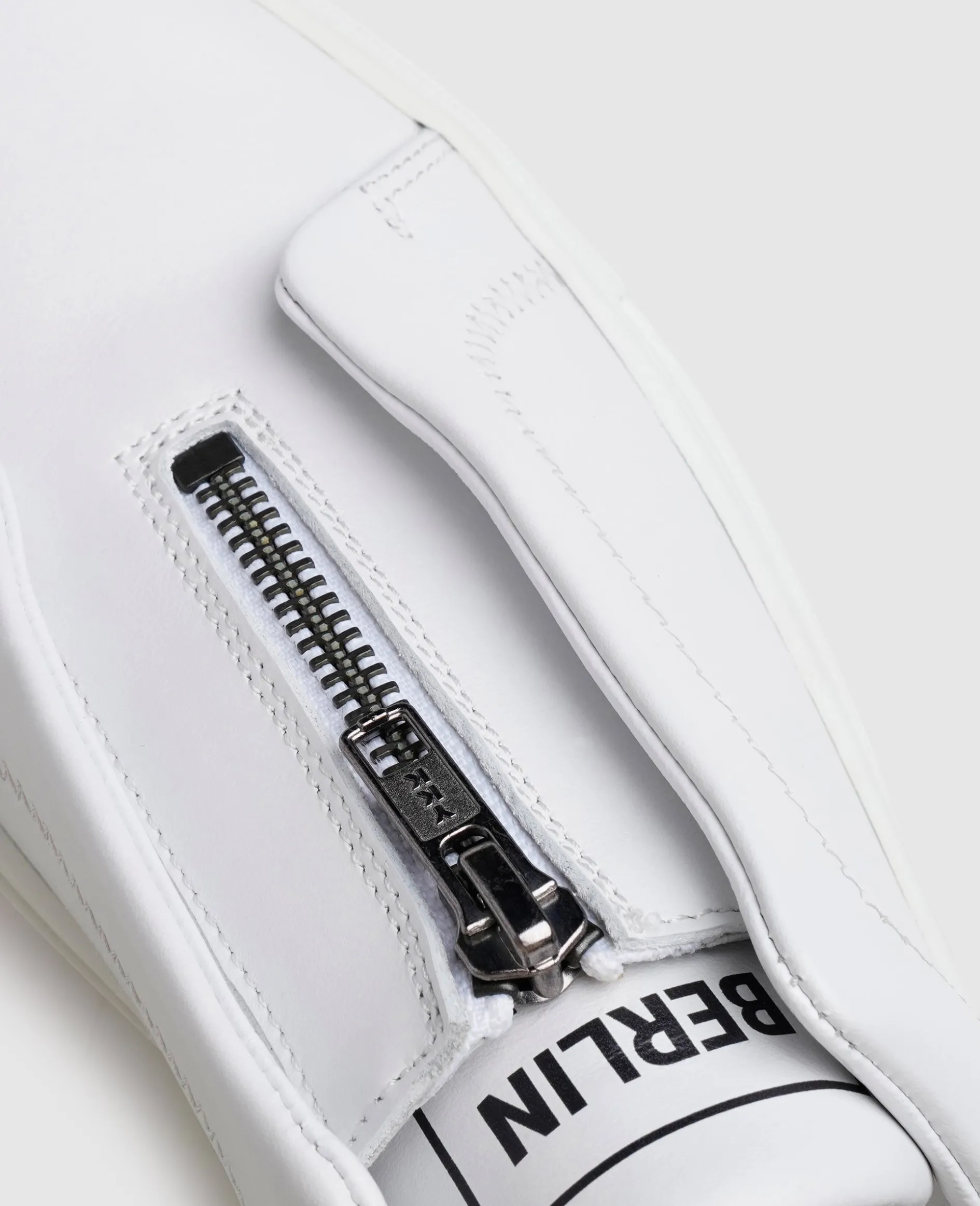 Ein dekorativer Reißverschluss setzt diesen handgefertigten Sneaker für Damen unserer Kollektion »Berlin N91« gekonnt in Szene. Seine besondere Optik wird auch durch das feine Kalbsleder von seidigem Glanz unterstützt sowie das markante Marken-Emblem, das sich an mehreren Stellen auf dem Schuhoberteil findet. Die flexible Gummi-Schalensohle rundet den Komfort ab.