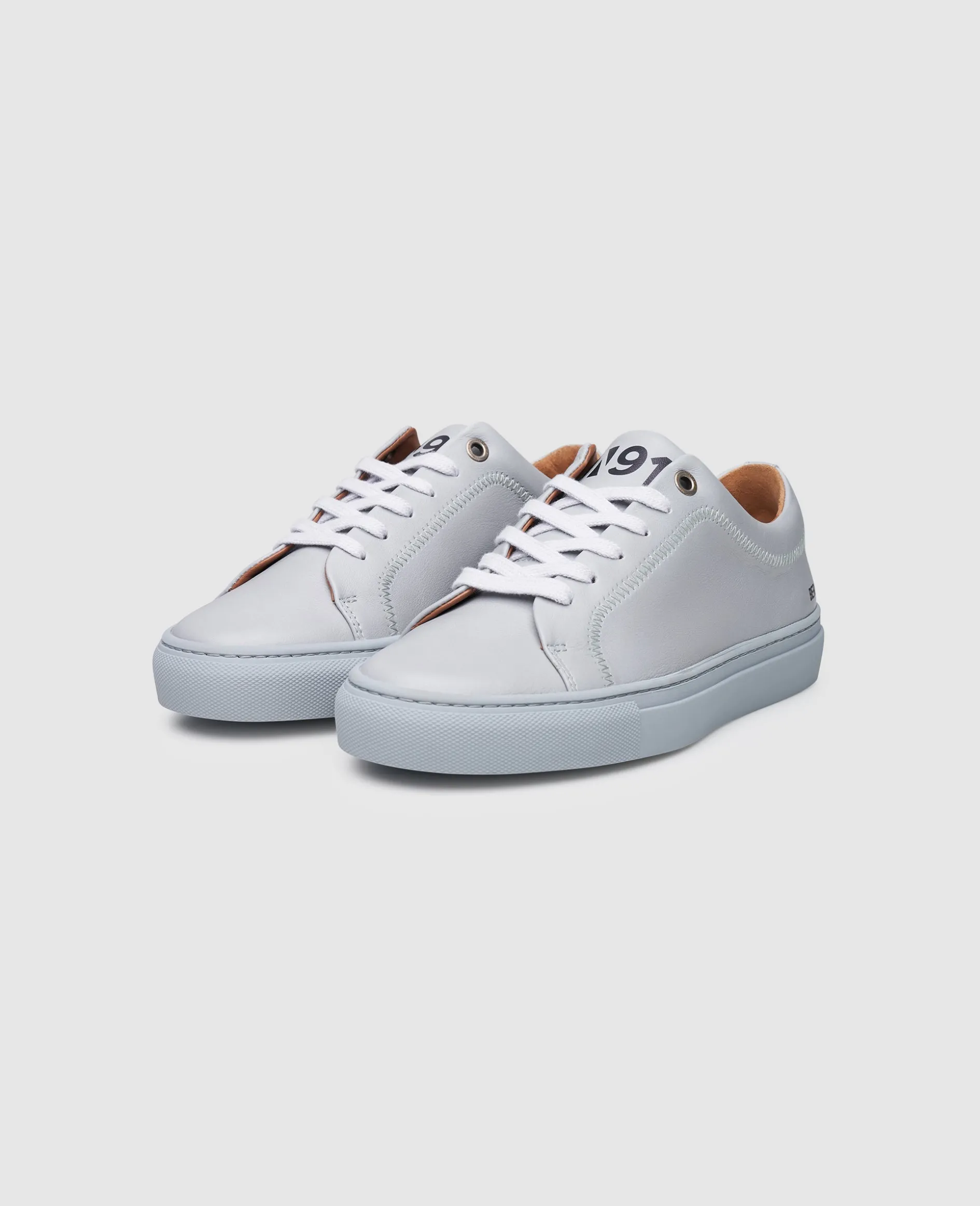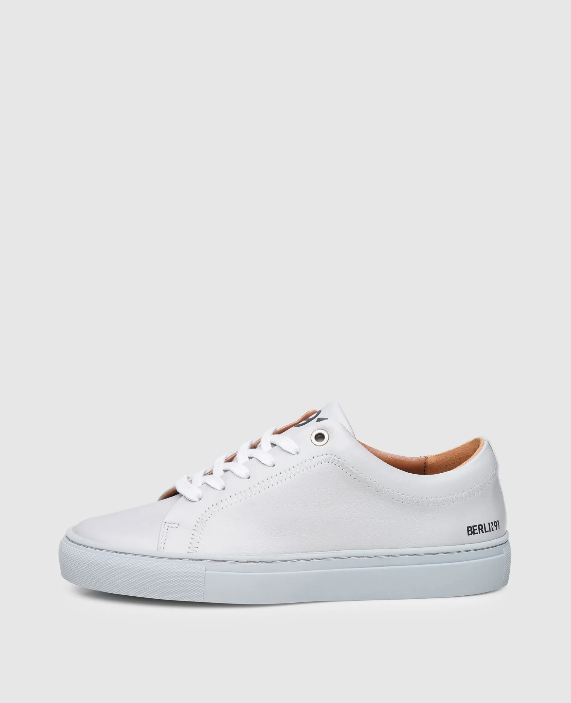 Ton in Ton treffen bei diesem Sneaker-Modell der Kollektion »Berlin N91« Sohle und Schaft aufeinander. Das Ergebnis: ein monochromes Modell, das an den Schnitt eines klassischen Tennisschuhs angelehnt ist. Sein glattes Oberleder vom Kalb verfügt über ein mehrfach verwendetes Branding, das dem sportiven Begleiter einen hohen Wiedererkennungswert verleiht.