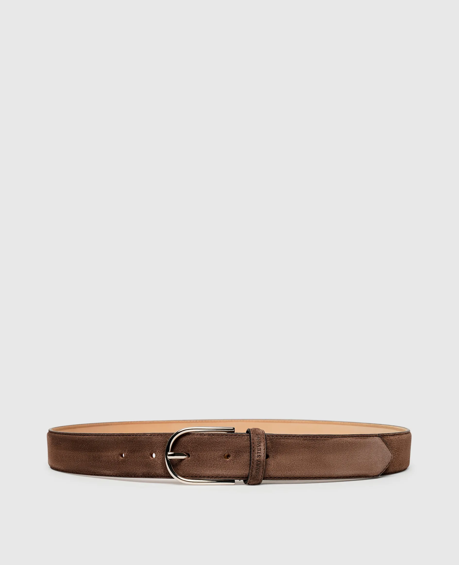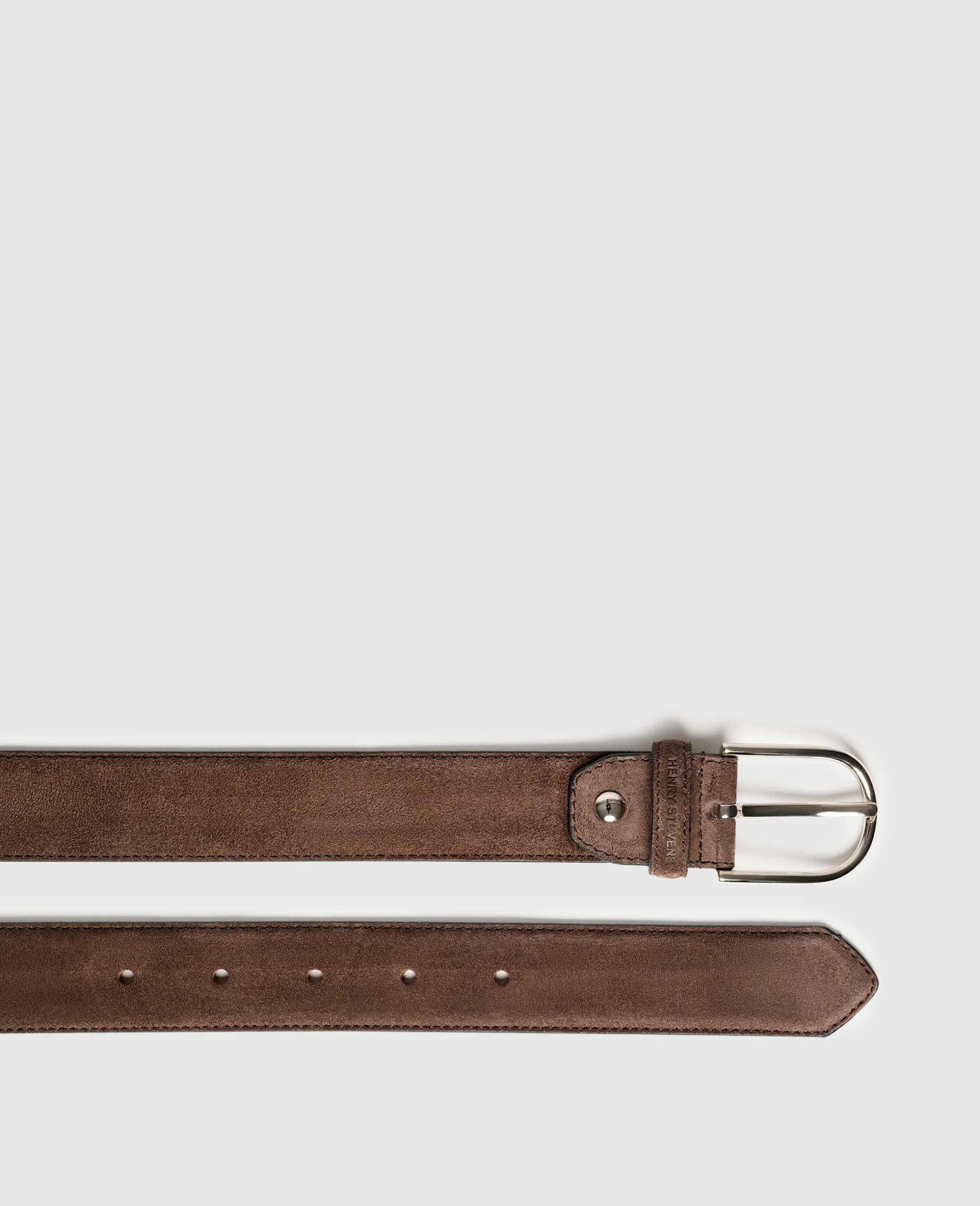 Einen idealen Abschluss zu einem modischen Ensemble mit Raulederschuhen garantiert der handgefertigte Damengürtel aus samtigem Velours von Henry Stevens mit einer Breite von 30 mm. Das erlesene Rauleder sorgt auf der Außenseite für unwiderstehliche Dynamik, geschmackvoll akzentuiert von einer formschönen Dornschließe in Silber. Bestehend aus zwei engstichig vernähten Lederschichten, findet sich auf der Innenseite naturbelassenes Kalbsleder.