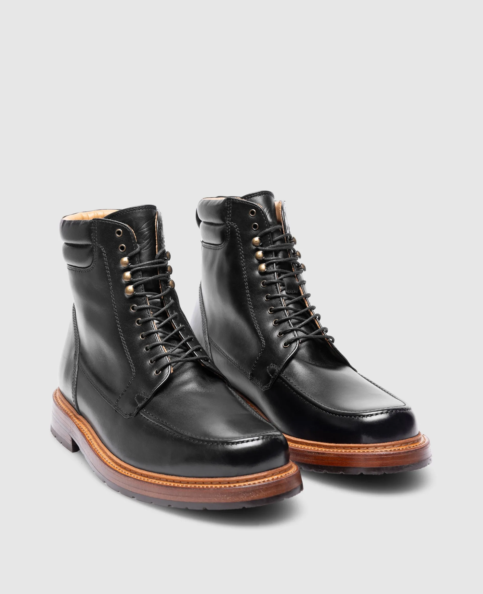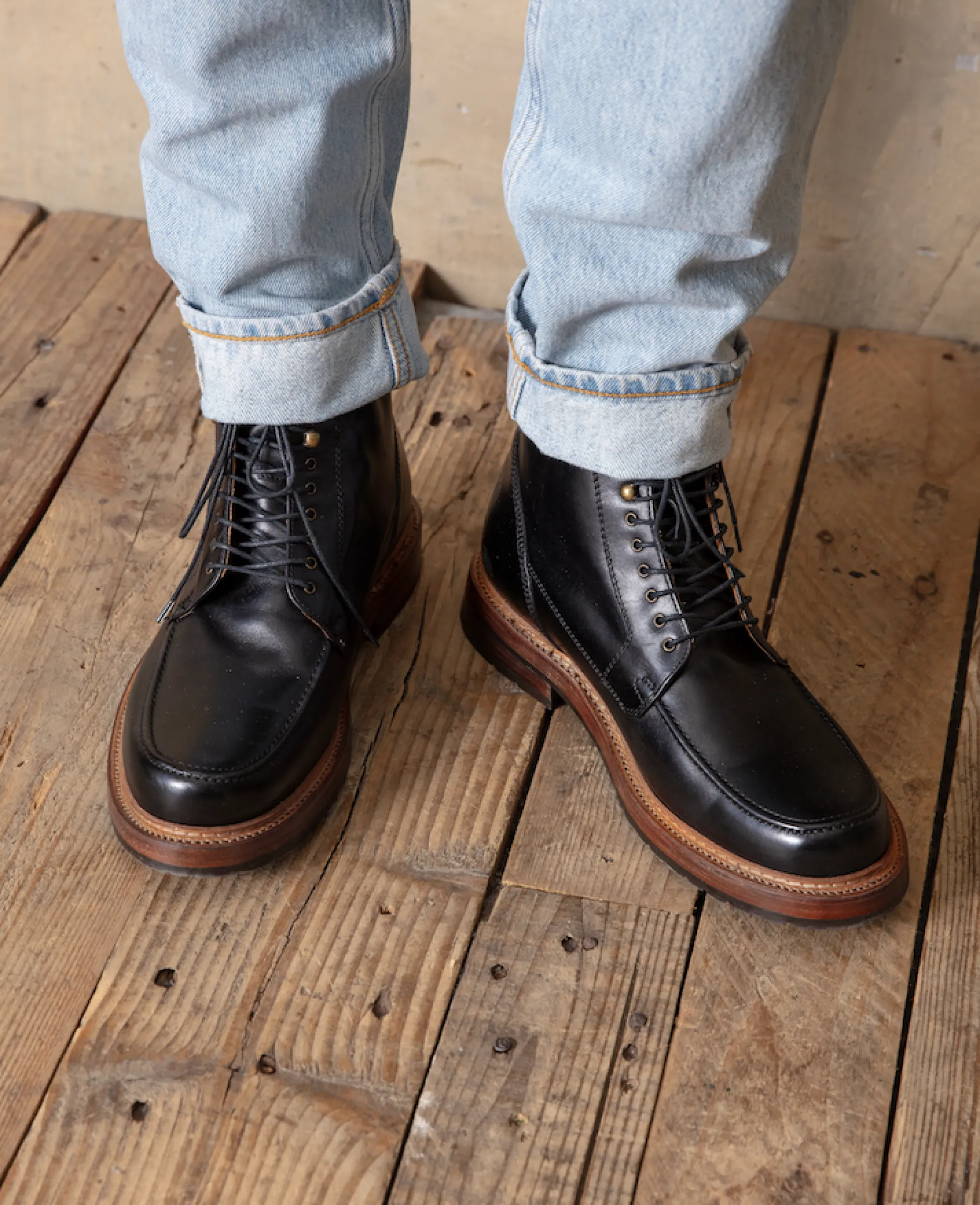 Ein Modell, das in seinem Design an die Arbeitsschuhe von norwegischen Fischern erinnert. Charakteristisch ist seine auf dem Vorderblatt parallel zum Sohlenrand verlaufende Naht nebst Teilung an der Spitze. Für den hohen Spann geeignet