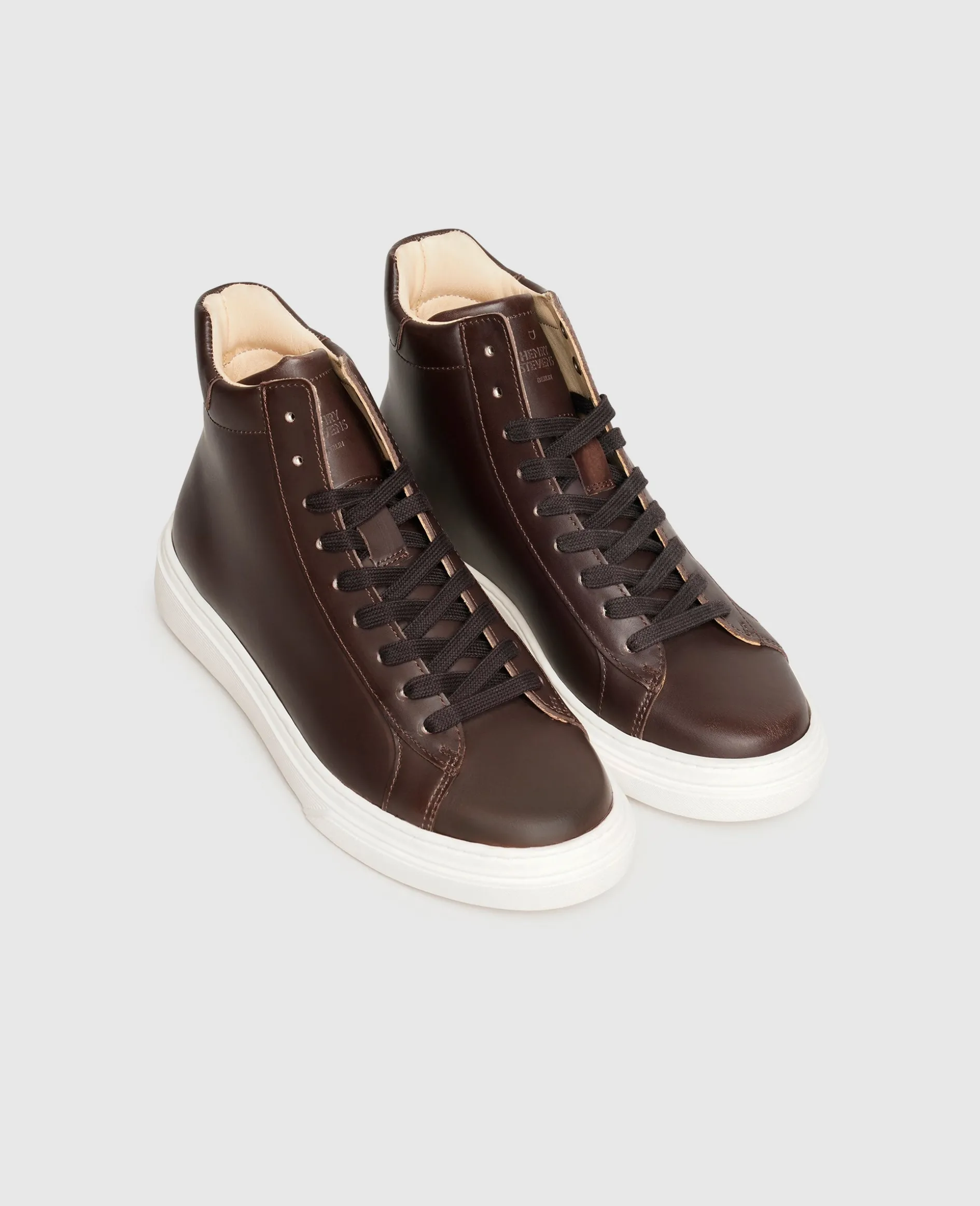 Feinste Materialien, eine verantwortungsbewusste Fertigung in Europa sowie ein minimalistisches Design verwandeln die handgefertigten High-Top Sneakers für Damen von Henry Stevens in vielseitig einsetzbare Begleiter. Im Laufe der Zeit beeindruckt das geschmeidig-glänzende Oberleder mit einer faszinierenden Patina. Sportlichen Komfort verspricht die lässige Gummilaufsohle, unterstützt von einer zusätzlichen Fersenpolsterung mit Memory-Foam sowie einem praktischen Wechselfußbett. Hautfreundlich und atmungsaktiv zeigt sich das Innenfutter aus vegetabil gegerbtem Bio-Leder.