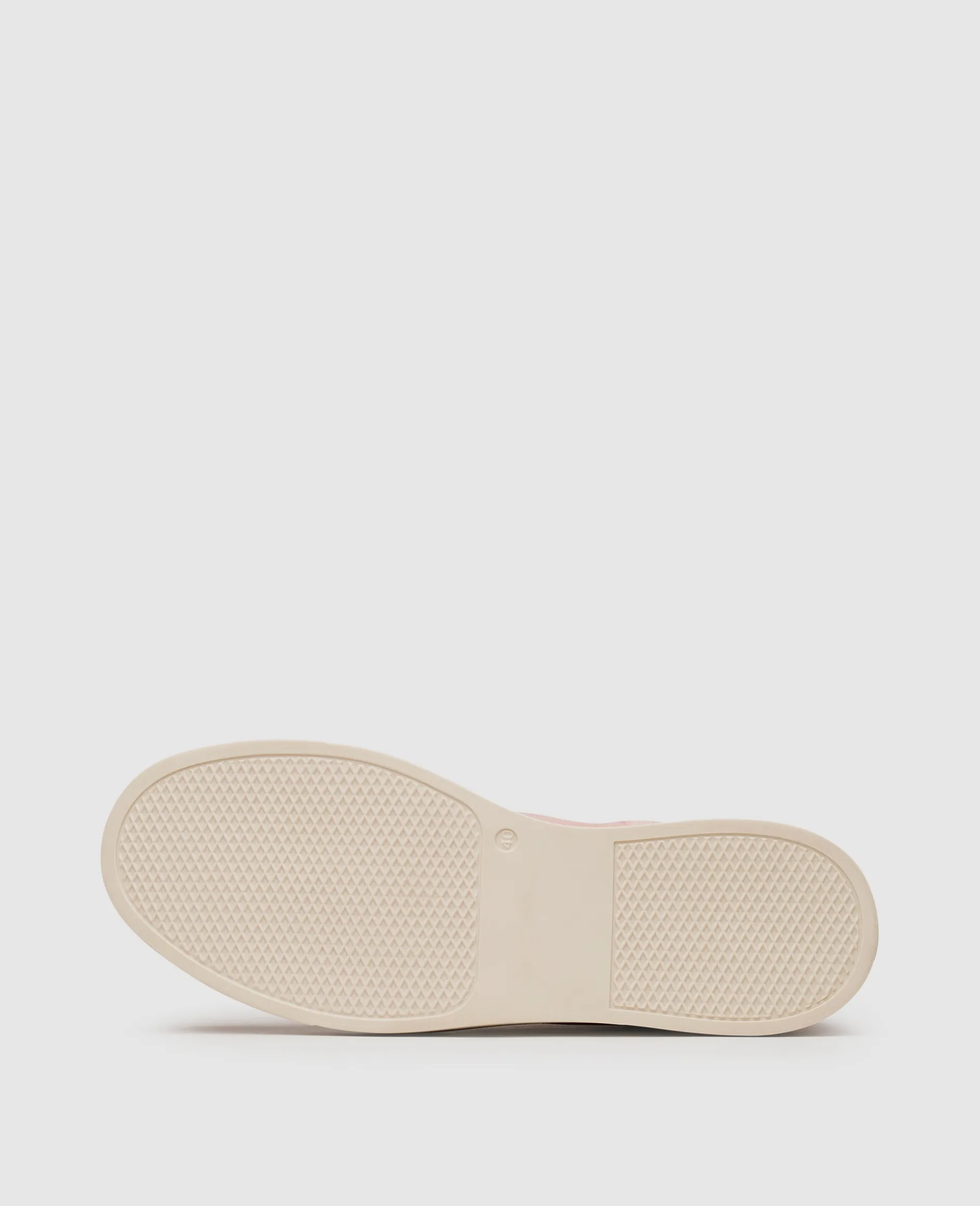 Damen, die es sportiv mögen aber auf eine feminine Anmutung nicht verzichten möchten, kommen mit diesem handgefertigten Sneaker von Henry Stevens auf ihre Kosten. Pflegeleichtes Velours-Leder schmückt den Großteil des Schafts. Bei der gepolsterten Fersenpartie fiel die Wahl auf feines Glattleder vom Kalb, welches auch farblich einen Akzent setzt. Dieser Materialmix verleiht dem Damenschuh seine unverwechselbare Dynamik, während kleine Design-Elemente auf der Lasche und Ferse in Kombination mit der leichten Gummilaufsohle das Ensemble vollenden.
