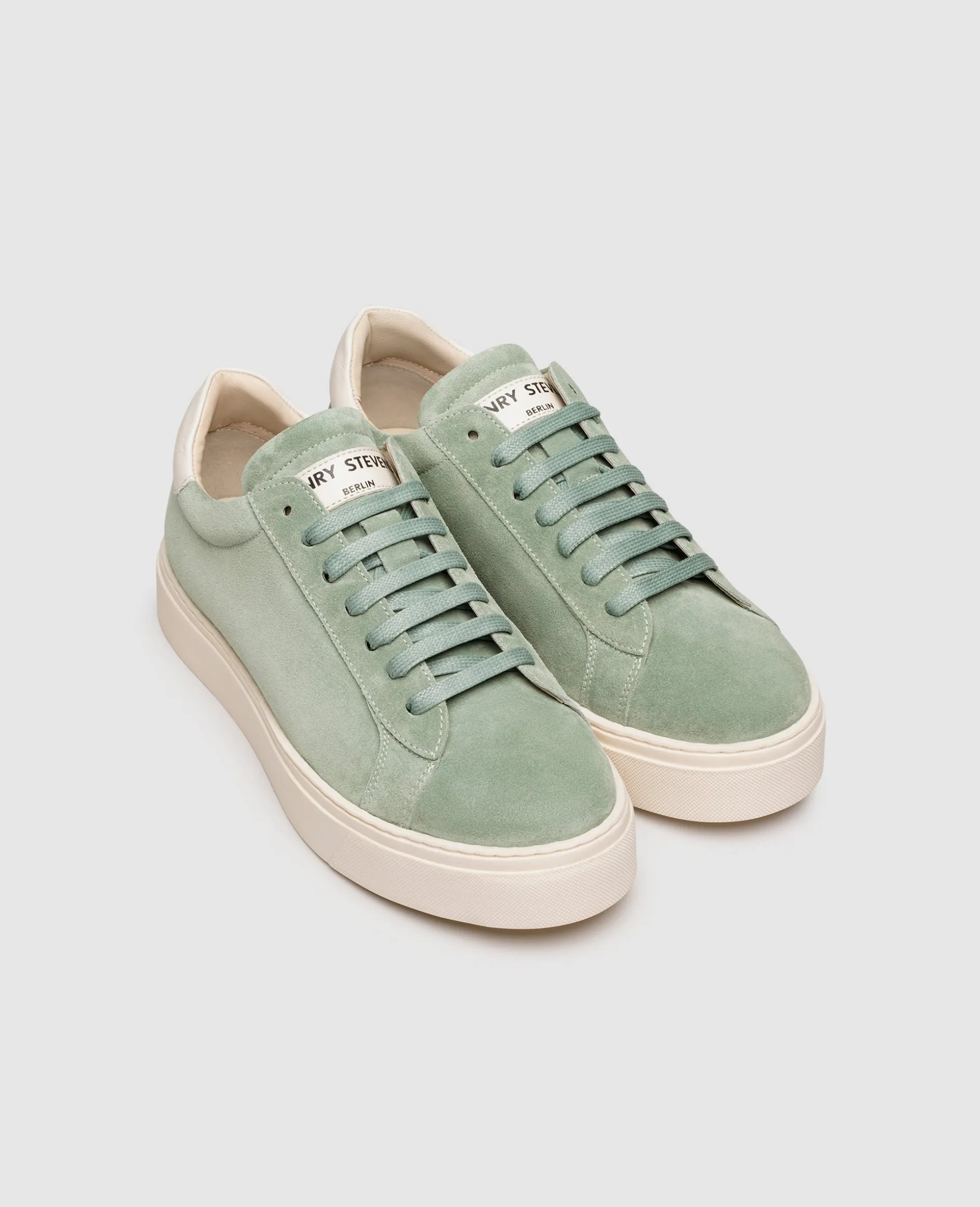 Damen, die es sportiv mögen aber auf eine feminine Anmutung nicht verzichten möchten, kommen mit diesem handgefertigten Sneaker von Henry Stevens auf ihre Kosten. Pflegeleichtes Velours-Leder schmückt den Großteil des Schafts. Bei der gepolsterten Fersenpartie fiel die Wahl auf feines Glattleder vom Kalb, welches auch farblich einen Akzent setzt. Dieser Materialmix verleiht dem Damenschuh seine unverwechselbare Dynamik, während kleine Design-Elemente auf der Lasche und Ferse in Kombination mit der leichten Gummilaufsohle das Ensemble vollenden.