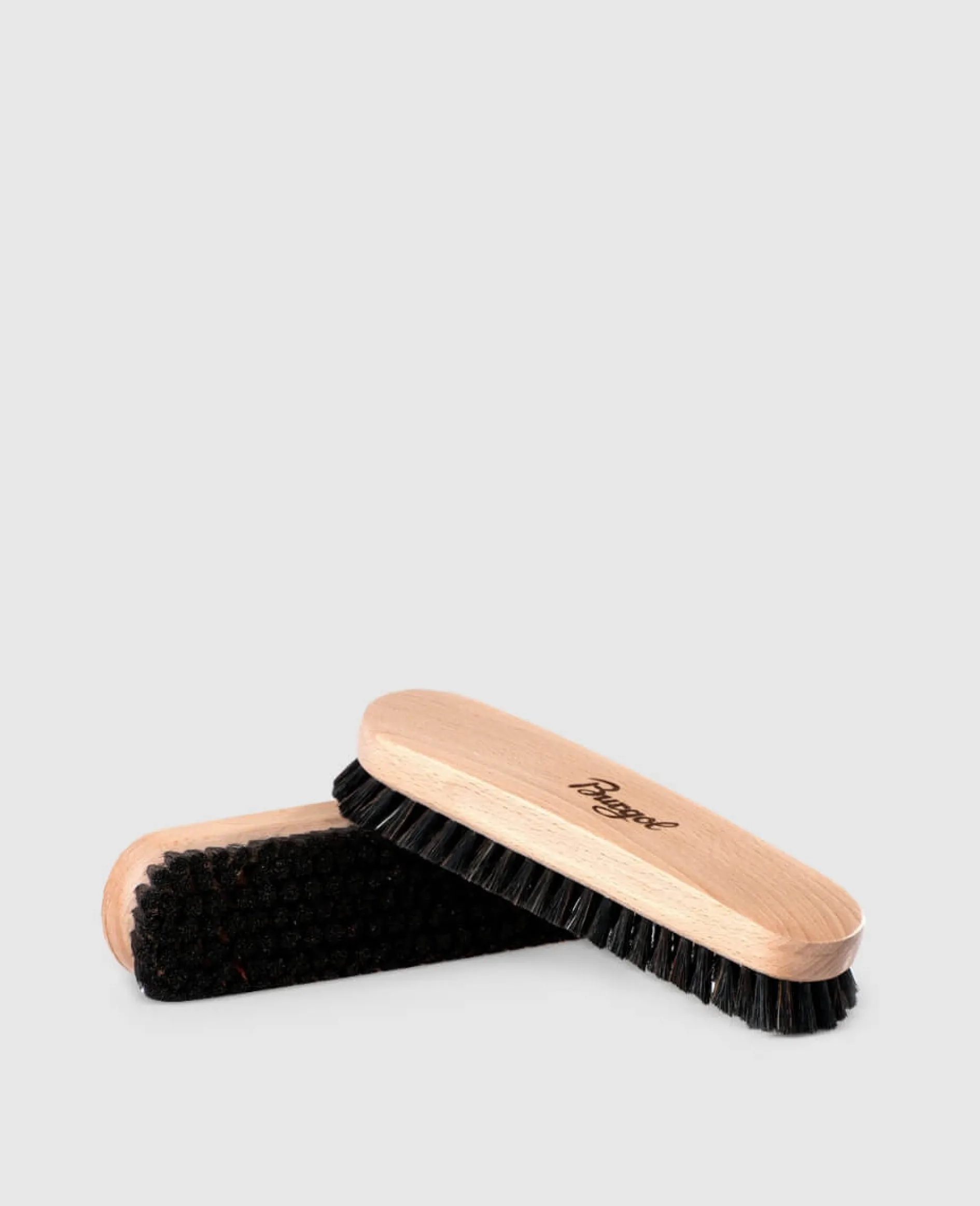 Gerade für die Vorreinigung von hochwertigen Schuhoberledern eignet sich die Staubbürste mit kräftigen Pferdehaaren von Burgol. Sie befreit das Oberleder auf schonende Art und Weise von Verschmutzungen. Gefertigt aus heimischen Hölzern, besticht sie durch Qualität und Langlebigkeit.