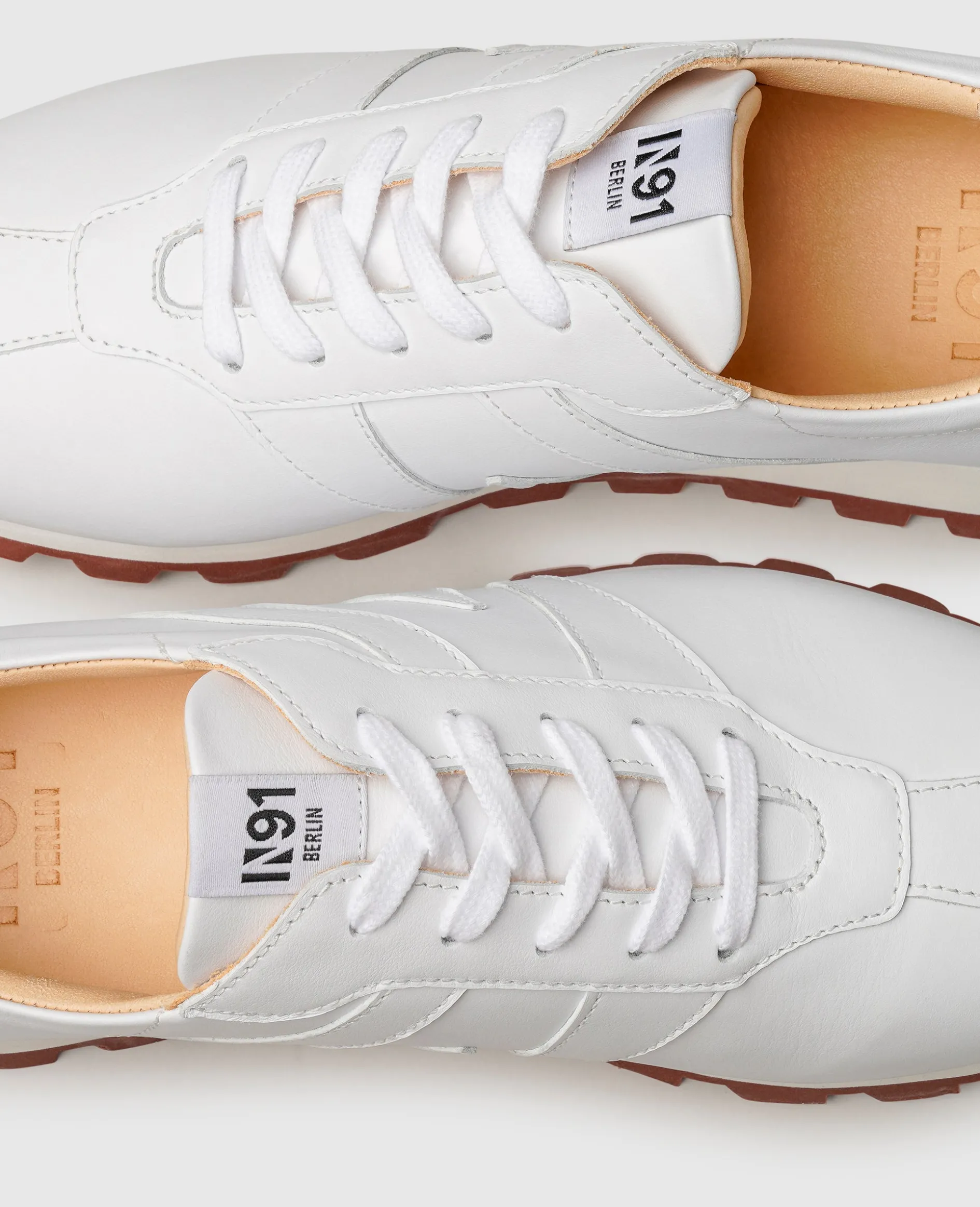 Längst ein fester Bestandteil in modernen Street-Styles sind sportliche Sneaker für Damen. In der Kollektion der Berliner Schuh-Marke N91 setzen die handgefertigten Damen-Sneaker mit ihrer bequemen Gummisohle auf einen dynamischen Material-Mix aus Glatt- und Rauleder-Elementen. Einzelne Farb-Details unterstützen das zeitgemäße Design und sorgen für feminine Lässigkeit. Die ideale Wahl für sportliche Kombinationen oder raffinierte Stilbrüche.