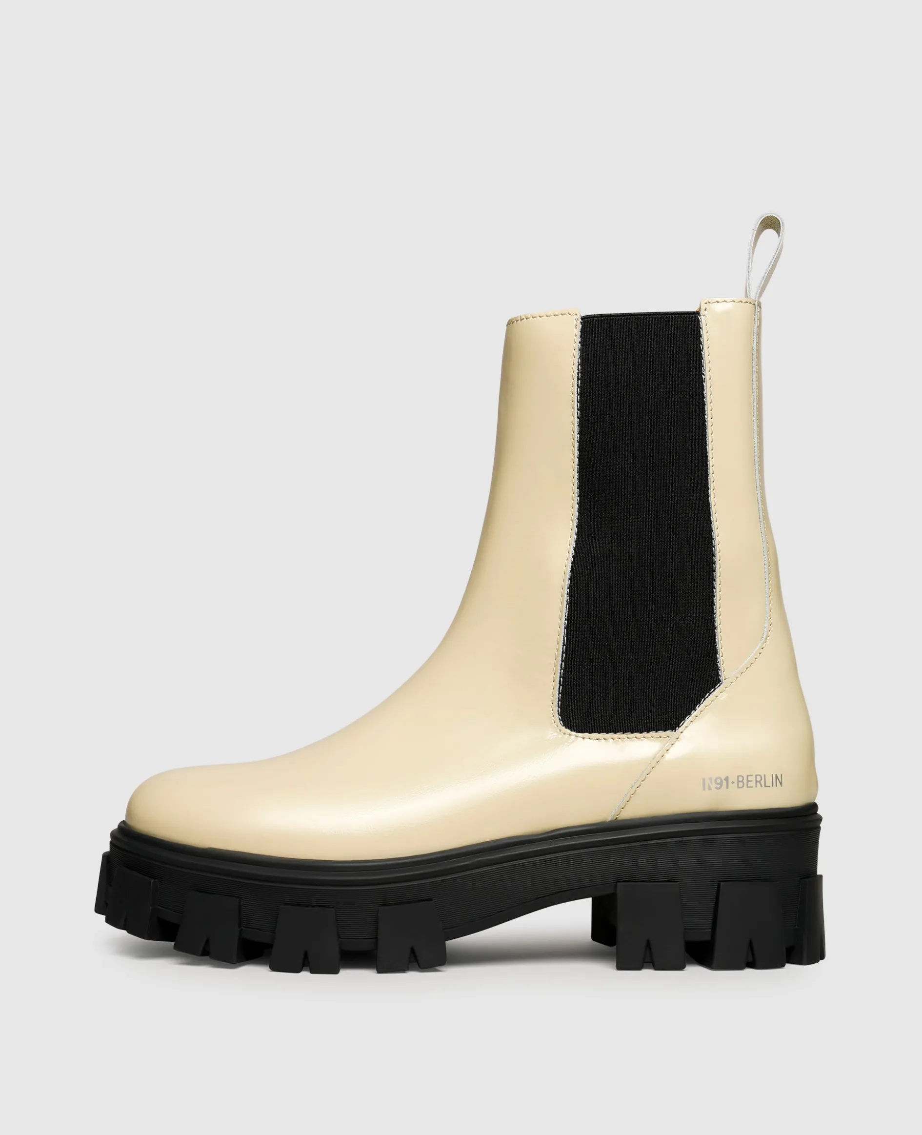 Super bequem und besonders stylish sind diese Chelsea Boots für Damen von N91. Besonders im Fokus stehen zweifelsfrei die markante Sohle mit ihrer technischen Anmutung und das Oberleder, das mit einem tollen Glanz überzeugt. Getreu dem klassischen Chelsea Boot verfügt das Damenmodell über Elastikeinsätze an der Innen- und Außenseite sowie eine Zuglasche, die den Einstieg in die mittelhohen Stiefel ziemlich einfach macht.