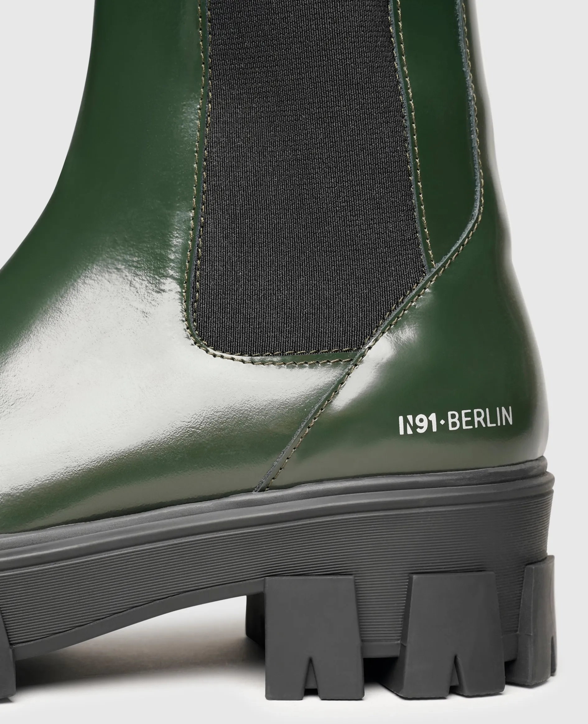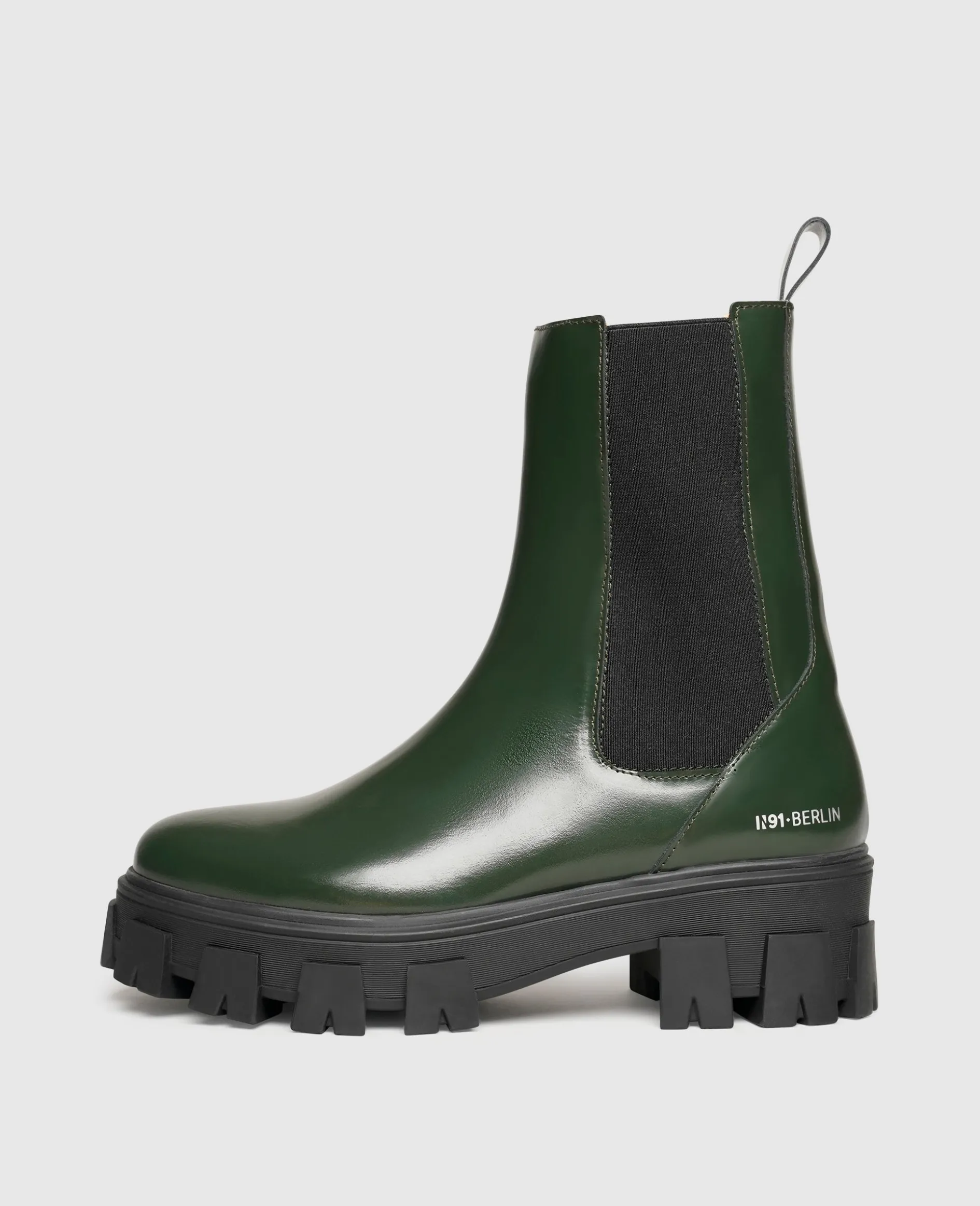 Super bequem und besonders stylish sind diese Chelsea Boots für Damen von N91. Besonders im Fokus stehen zweifelsfrei die markante Sohle mit ihrer technischen Anmutung und das Oberleder, das mit einem tollen Glanz überzeugt. Getreu dem klassischen Chelsea Boot verfügt das Damenmodell über Elastikeinsätze an der Innen- und Außenseite sowie eine Zuglasche, die den Einstieg in die mittelhohen Stiefel ziemlich einfach macht.