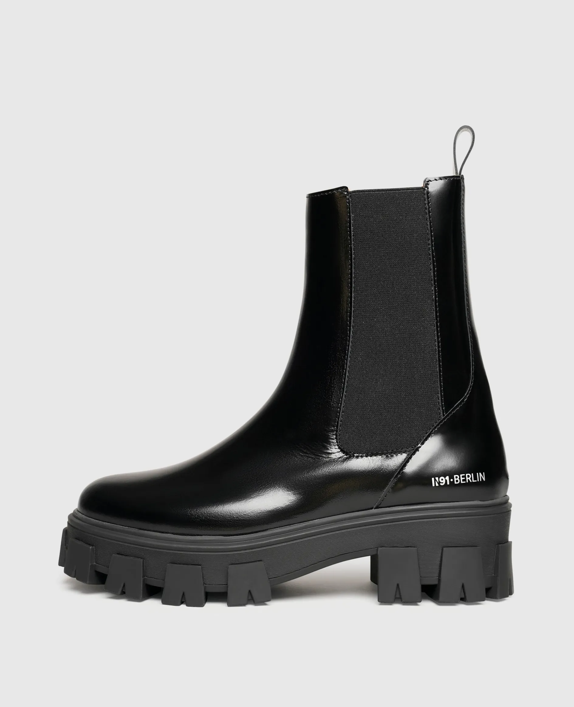 Super bequem und besonders stylish sind diese Chelsea Boots für Damen von N91. Besonders im Fokus stehen zweifelsfrei die markante Sohle mit ihrer technischen Anmutung und das Oberleder, das mit einem tollen Glanz überzeugt. Getreu dem klassischen Chelsea Boot verfügt das Damenmodell über Elastikeinsätze an der Innen- und Außenseite sowie eine Zuglasche, die den Einstieg in die mittelhohen Stiefel ziemlich einfach macht.