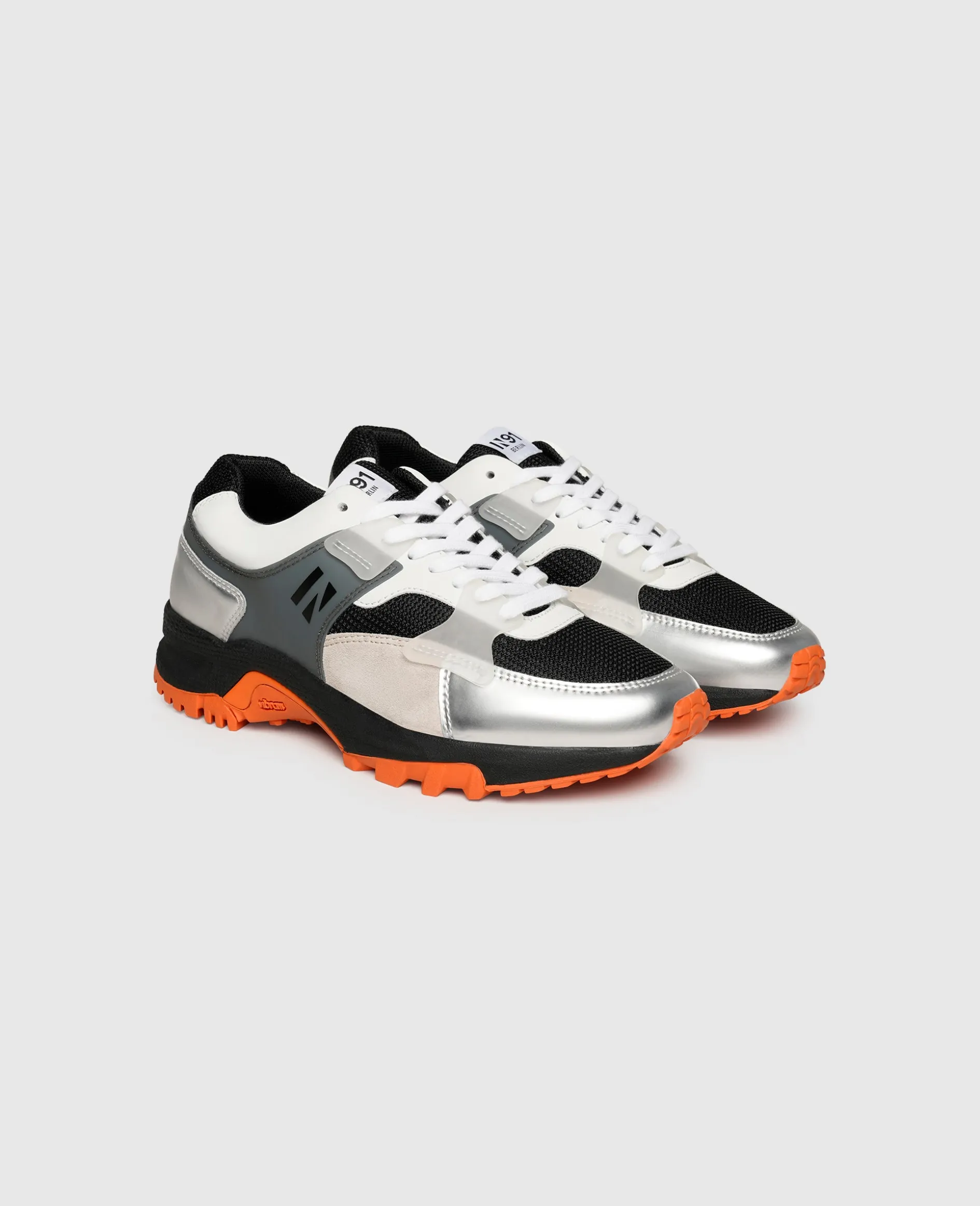 Dieser Runner des Berliner Labels N91 ist ein echter Allrounder, der Ihnen bei sportlichen Aktivitäten ebenso gute Dienste erweist wie als stylischer Freizeitbegleiter. Mit seiner stark profilierten Vibram-Sohle schenkt der Schuh Ihnen bei jedem Schritt ausreichend Halt und das sogar beim Joggen oder Wandern. Die Materialkombination vom Schaft aus Glatt- und Rauleder, Metallic-Partien an der Vorder- und Hinterkappe sowie funktionalem Mesh verleiht eine unverwechselbare Dynamik, während die Innensohle mit Memoryfoam-Effekt jeden Schritt zu einem echten Komforterlebnis werden lässt.