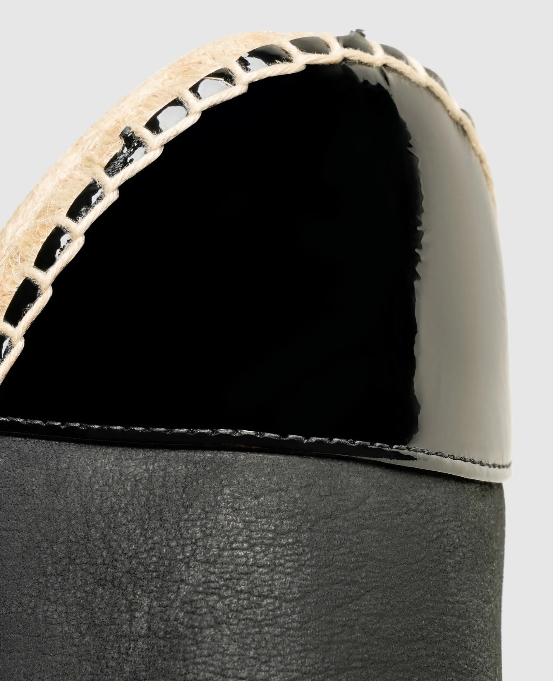 Für eine gelungene Mischung aus femininer Eleganz und sommerlicher Leichtigkeit sorgen diese Espadrilles für Damen. Die charakteristische Sohle mit Naturfaser-Besatz garantiert der Trägerin ein komfortables Geherlebnis, während der Schaft mit seiner Materialkombination Blicke auf sich zieht. Das geschmeidige Nubuk wird durch eine abgenähte Vorderkappe aus schwarzem Lackleder ergänzt, welche den Sommerschuhen einen glanzvollen Akzent verleiht.