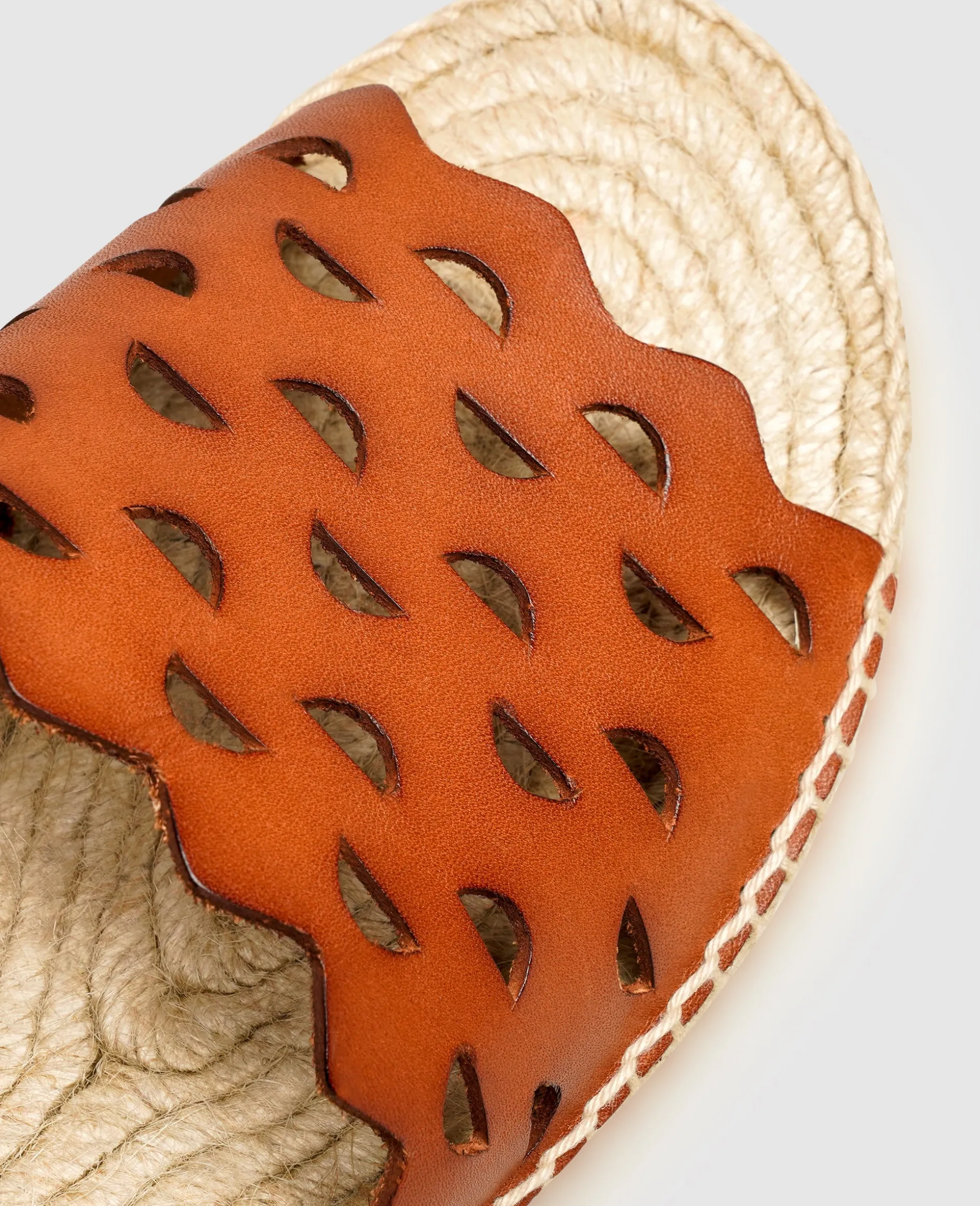 Diese besondere Fusion aus luftigen Sandalen und sommerlichen Espadrilles verleiht jedem Outfit das besondere Etwas an den warmen Tagen des Jahres. Der breite Riemen aus geschmeidigem Kalbsleder erhält durch eine aufwendige Stanzung sein ornamentales Muster und sorgt garantiert für anerkennende Blicke. Die Sohle der Pantoletten folgt ganz dem traditionellen Espadrille-Vorbild und versprüht durch die Naturfasern echte Urlaubsgefühle.
