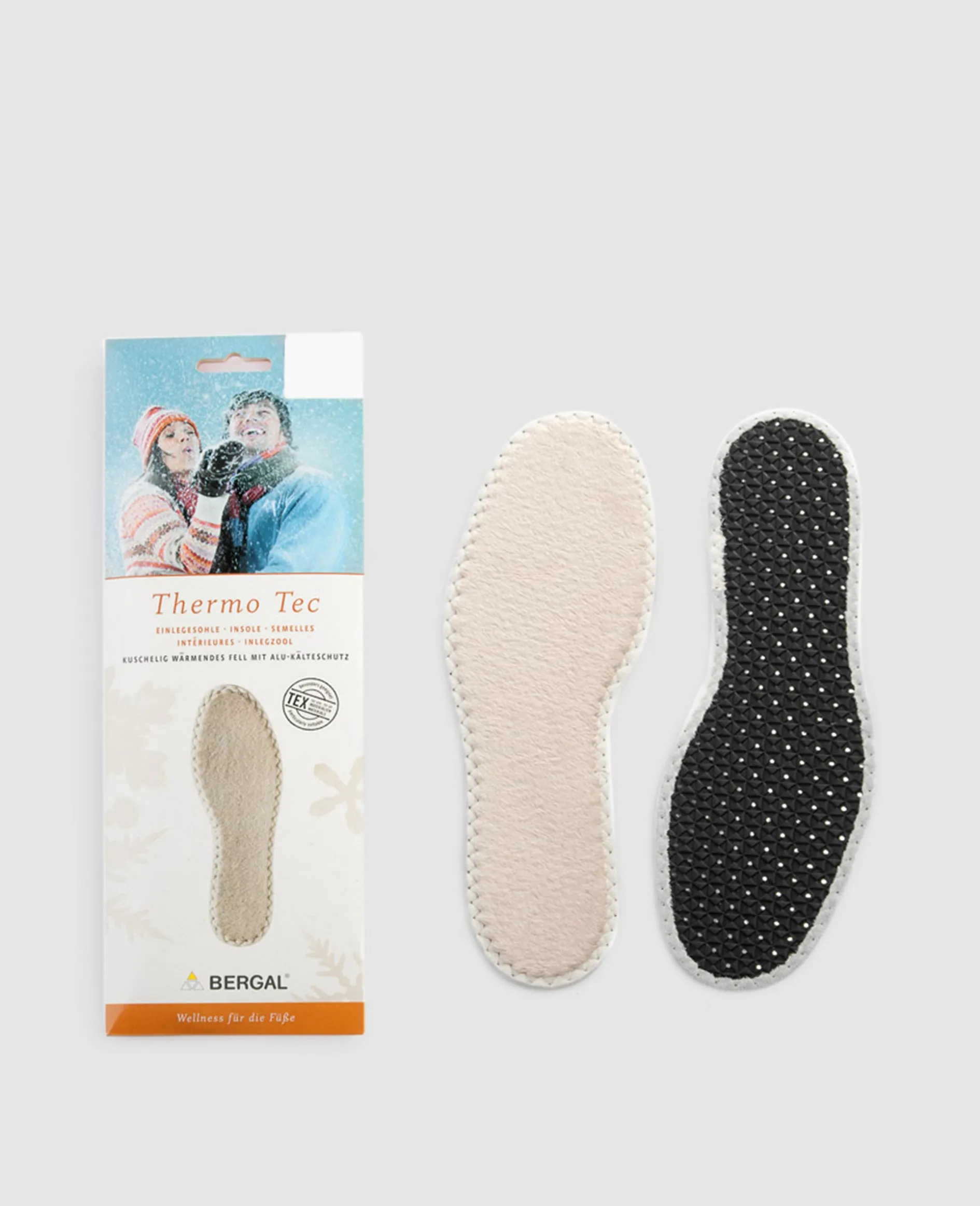 Die wärmenden Thermosohlen bestehen aus einem kuscheligen, weichen und wärmenden Fell aus 100% Feinfaser-Polyester. Aktivkohle mindert Fußgeruch und die Aluschicht isoliert gegen Kälte von unten.
