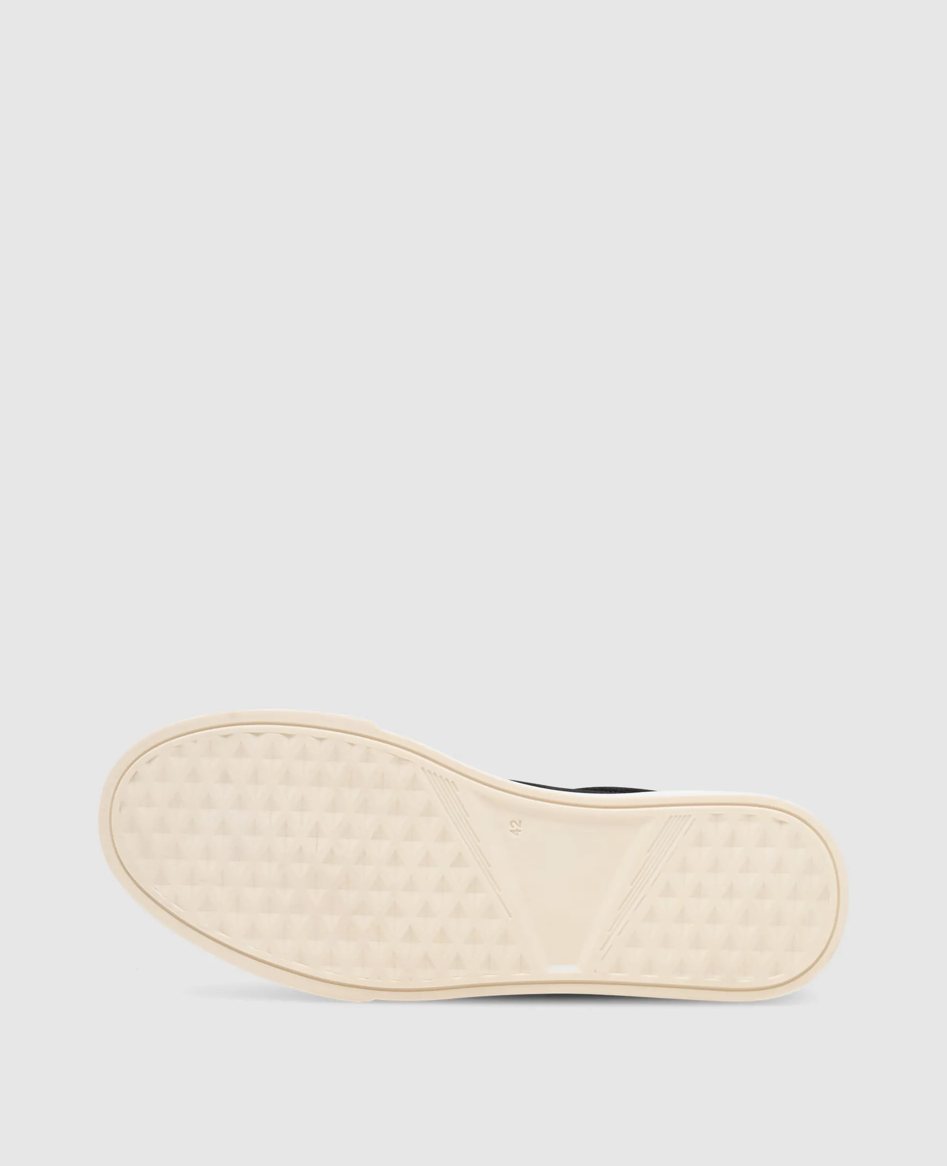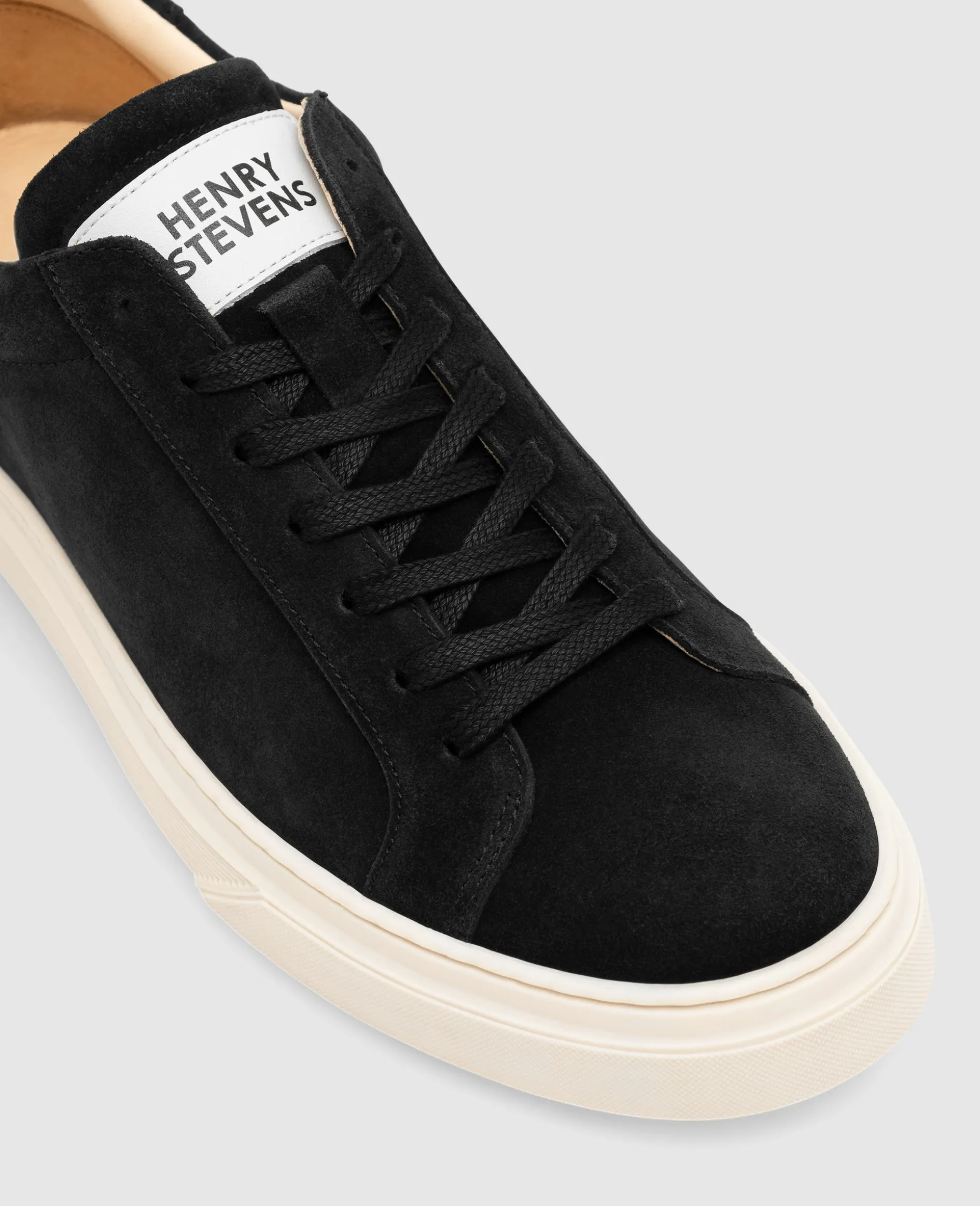 Der Travis Sneaker in Schwarz aus Kalbsvelours überzeugt mit einem Innenfutter aus hochwertigem Bio Leder und einer bequemen Sneakersohle. Dank seines zeitlosen Designs ist er das ganze Jahr über ein stilvoller Begleiter.